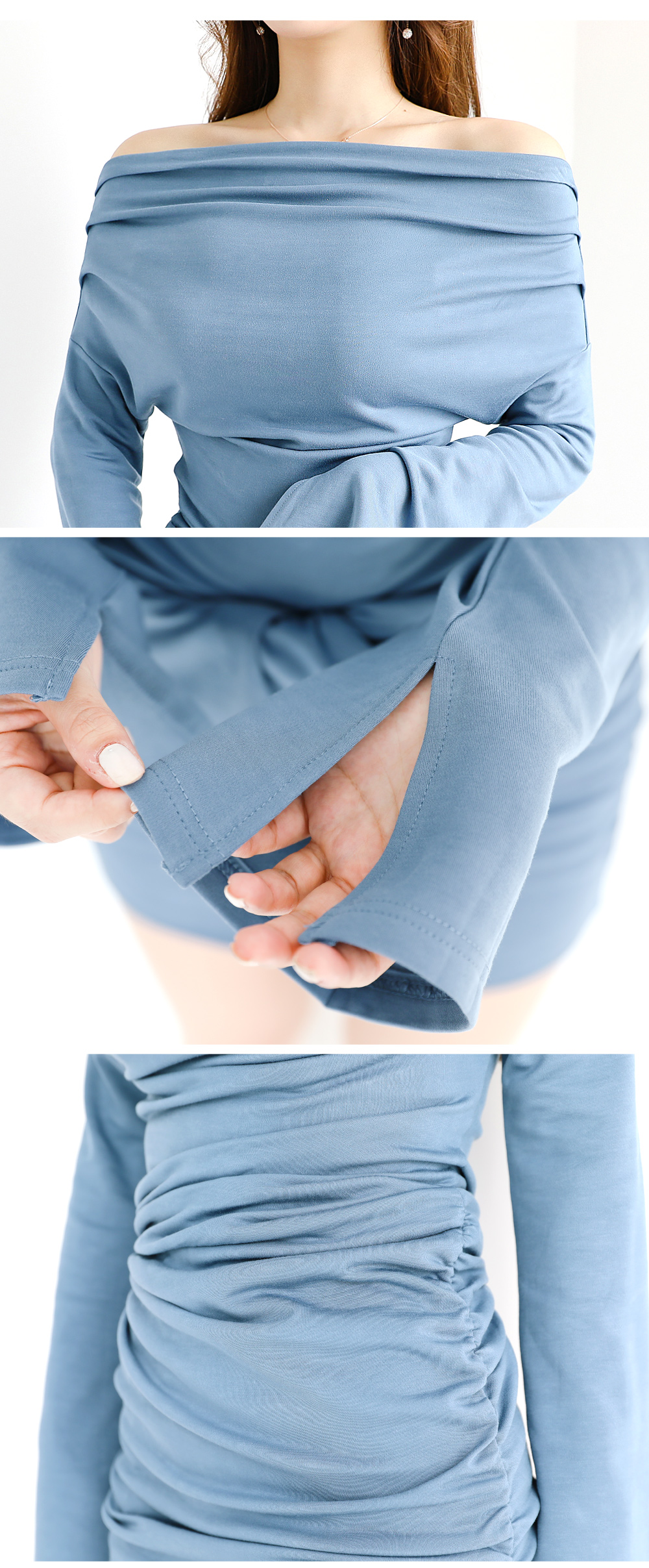 어깨 쪽 오프숄더를 자유롭게 조절하고
