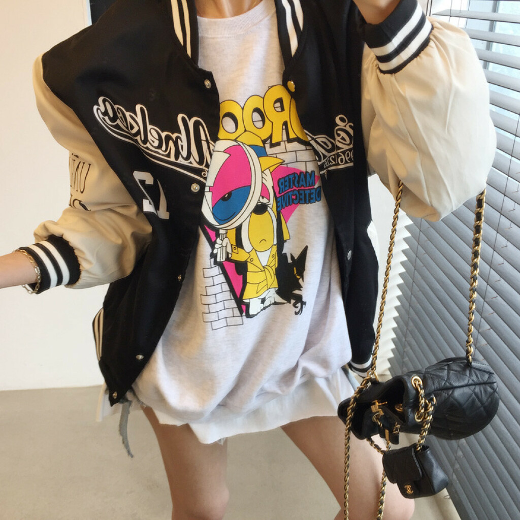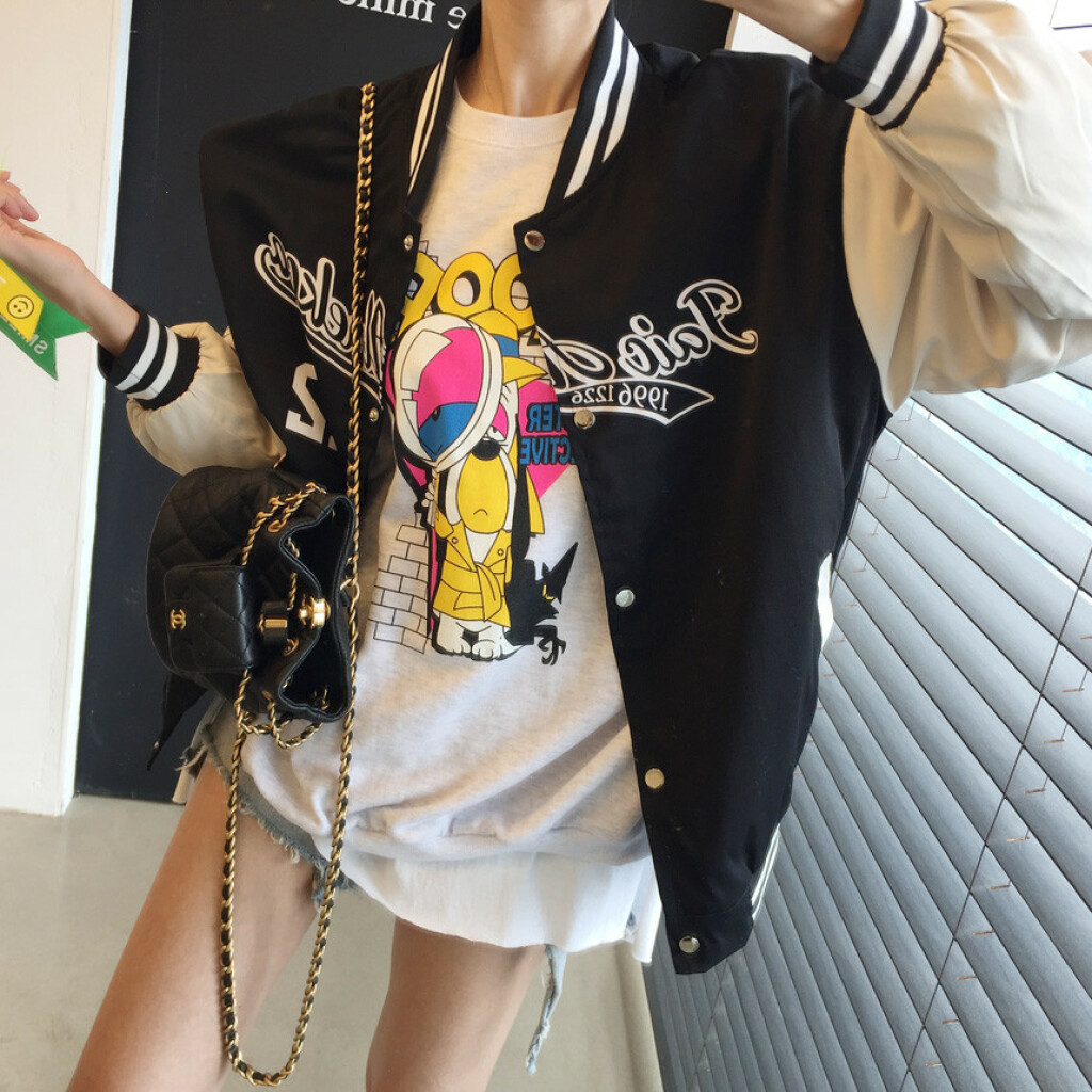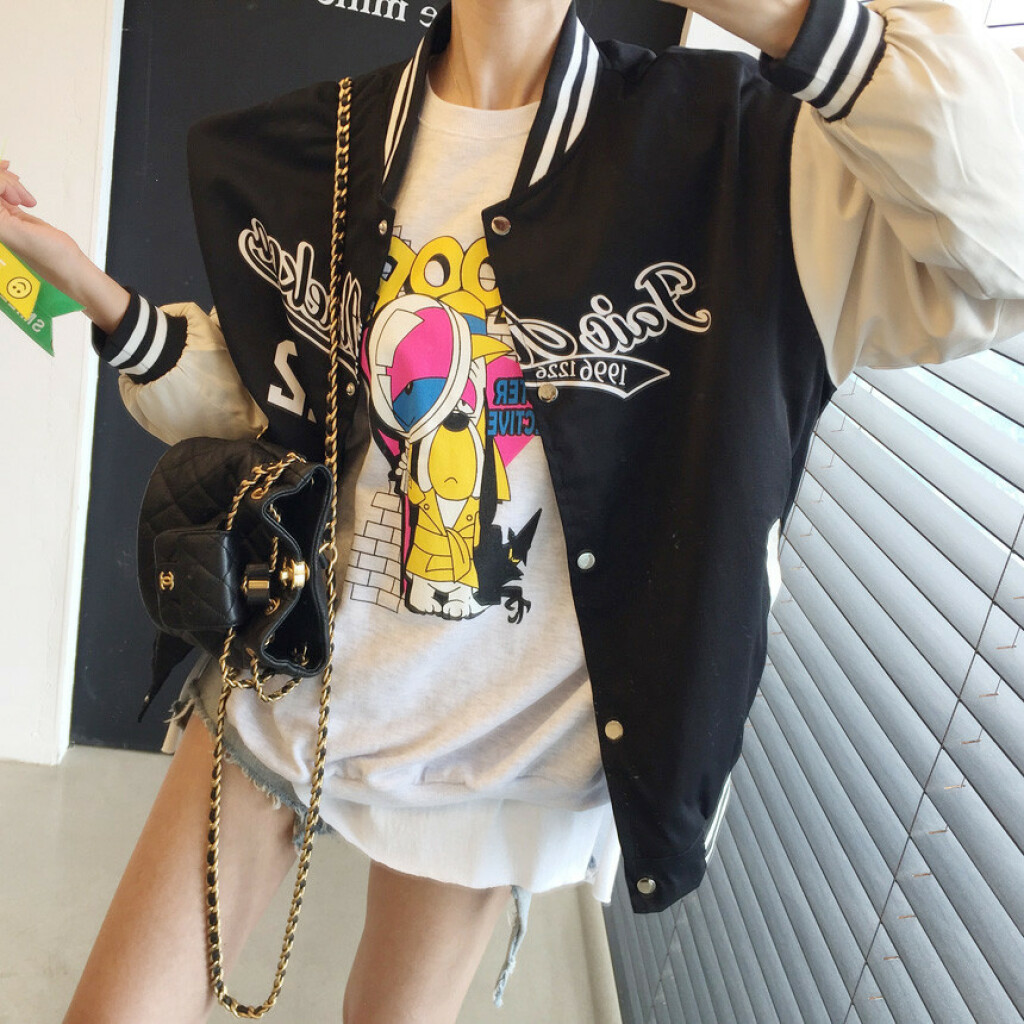오버핏 배색 똑딱이 야구 점퍼 상품을 소개해드릴게용~^^