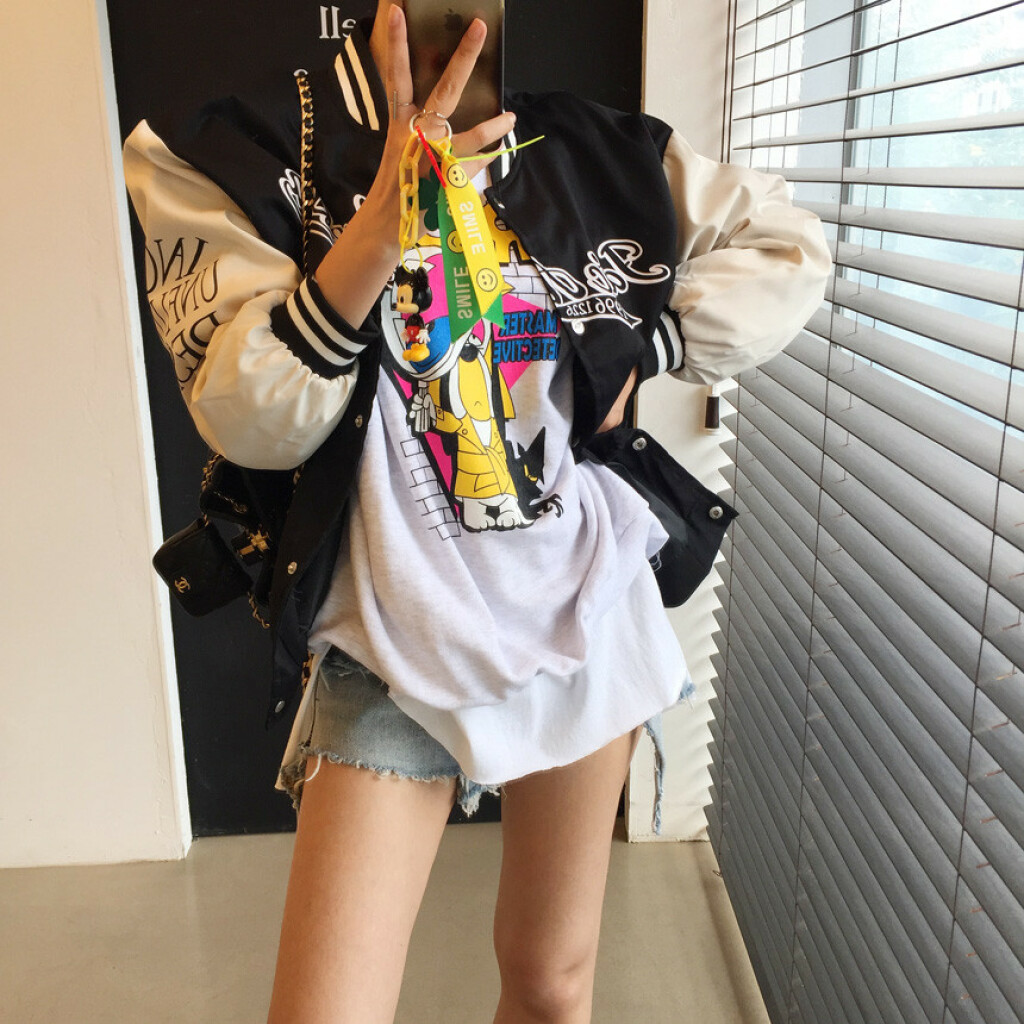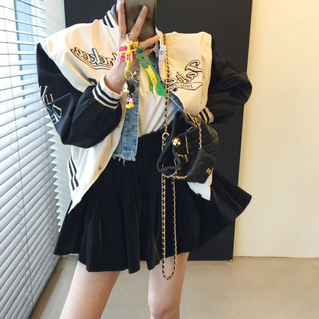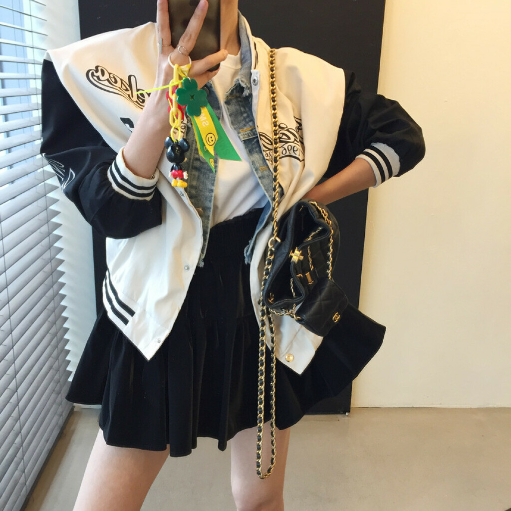 오버핏 배색 똑딱이 야구 점퍼 상품을 소개해드릴게용~^^