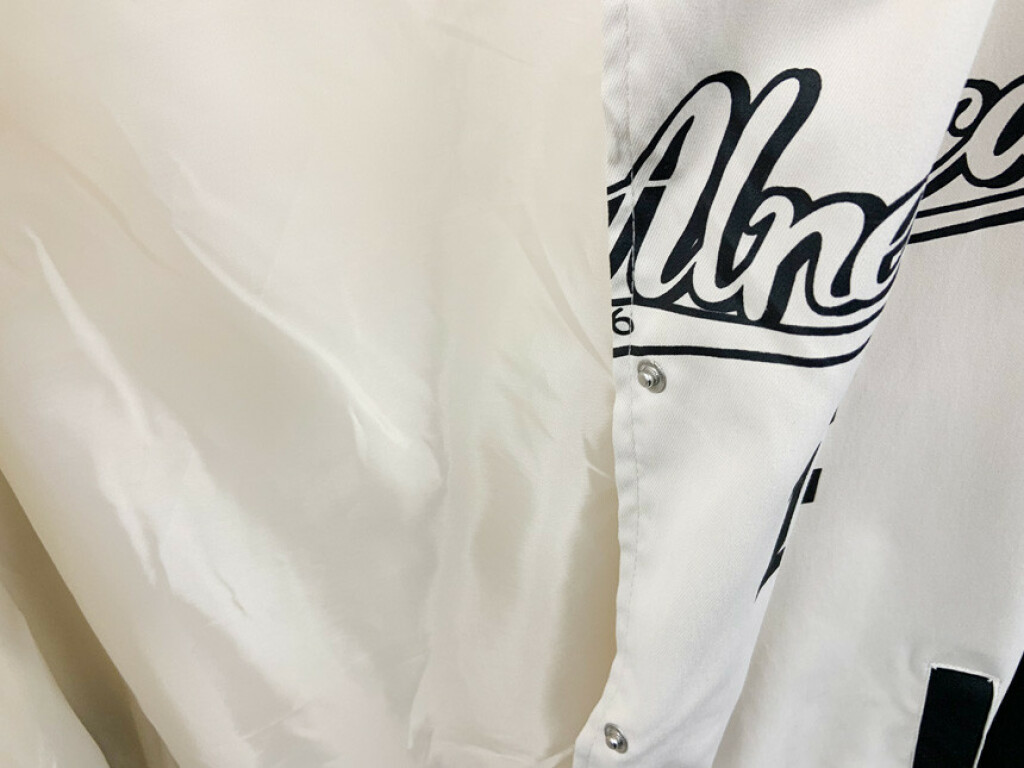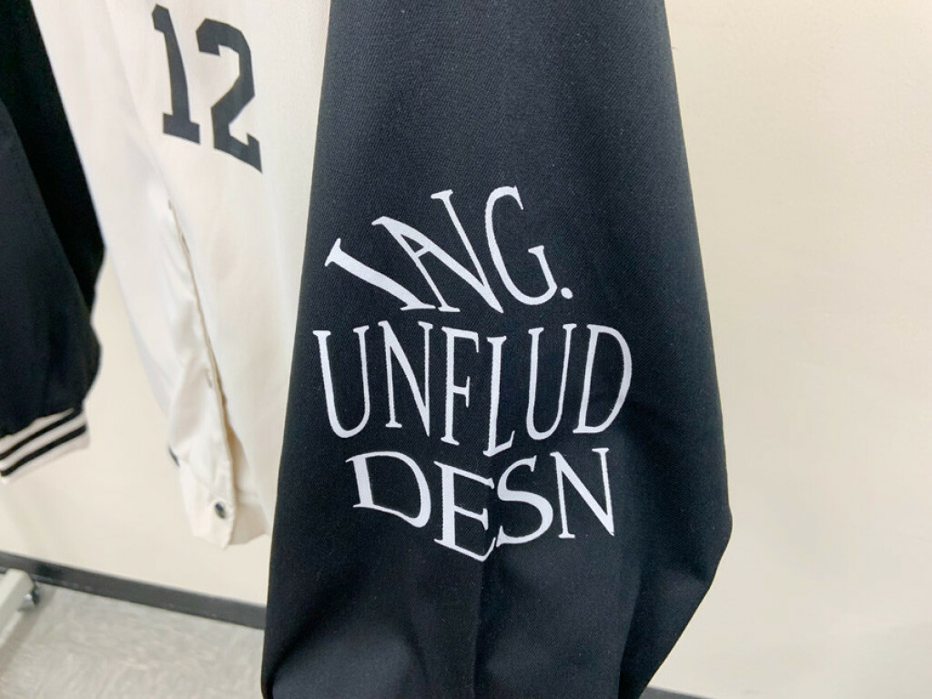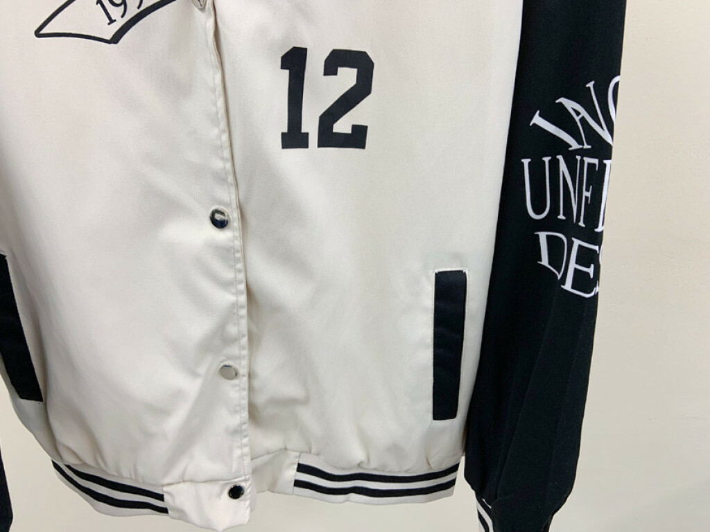 프론트 레터링 자수와 왼쪽 소매 패치 장식으로
