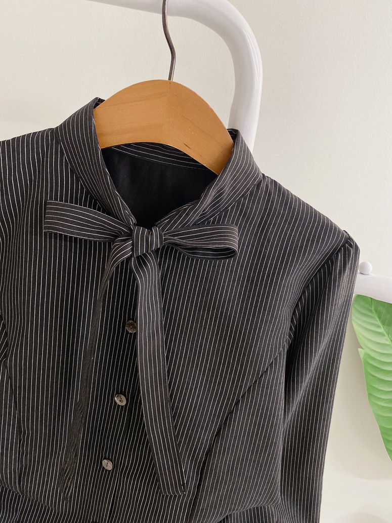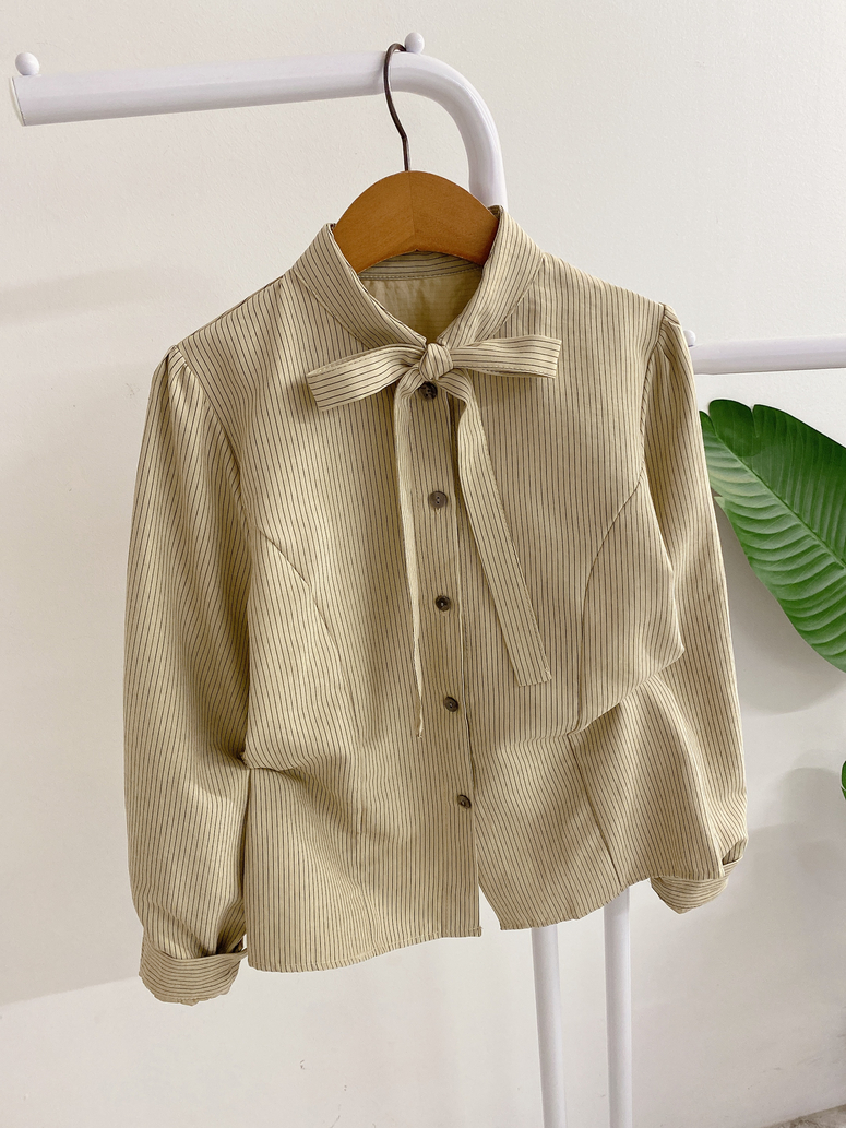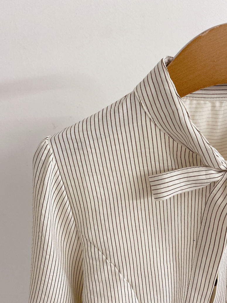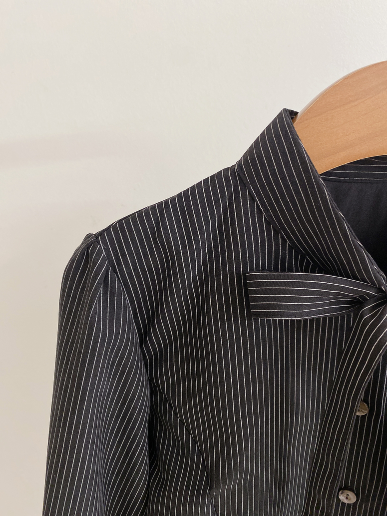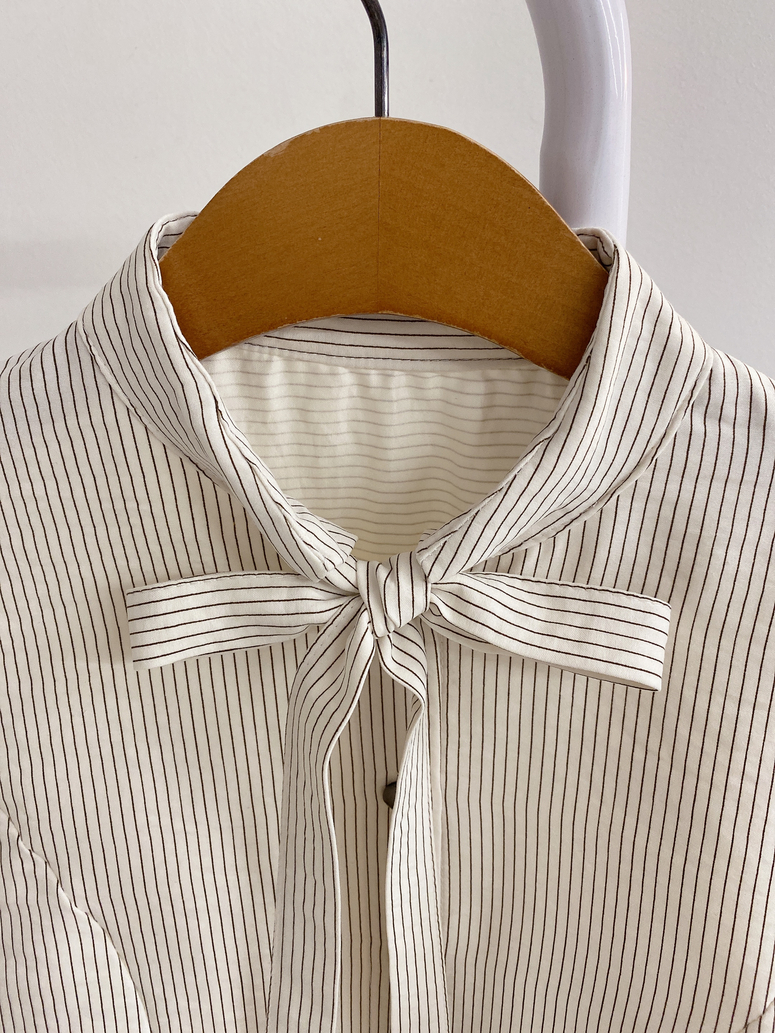 리본 타이넥과 봉봉한 퍼프소매 디자인으로 러블리한 무드를 더해주었어요