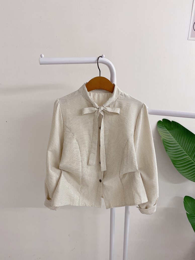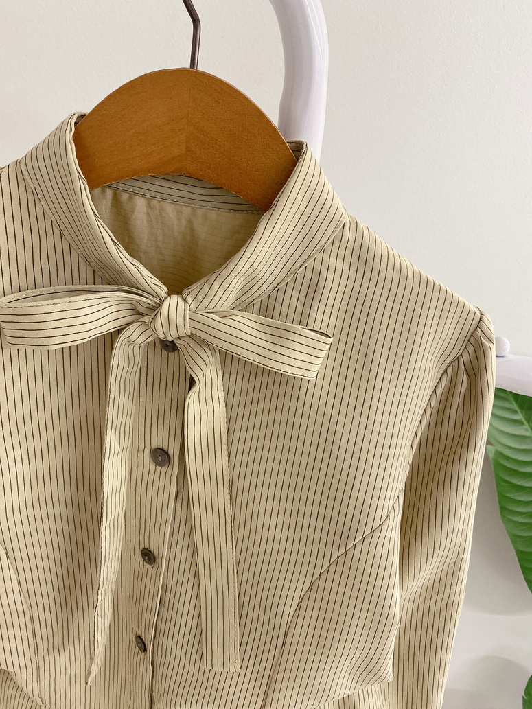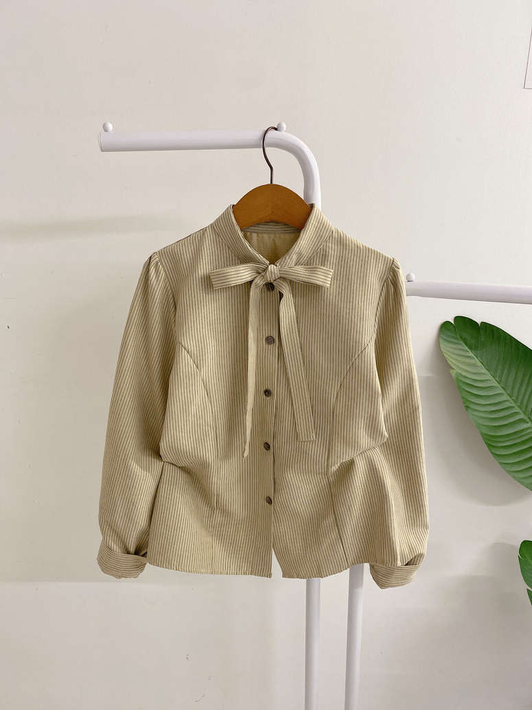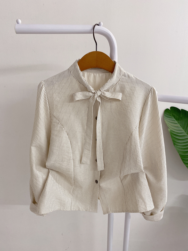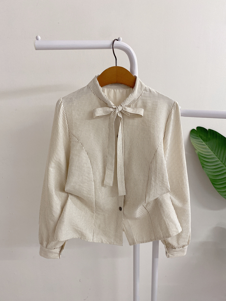 리본 타이넥과 봉봉한 퍼프소매 디자인으로 러블리한 무드를 더해주었어요
