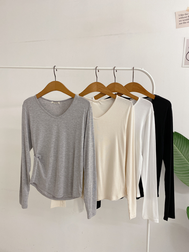 [헤아트 스판 무지 브이넥 긴팔 티셔츠] 소개해드려요~