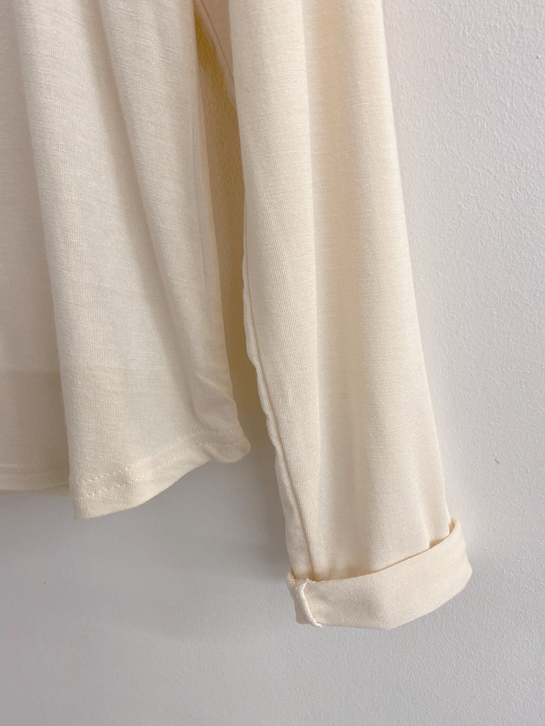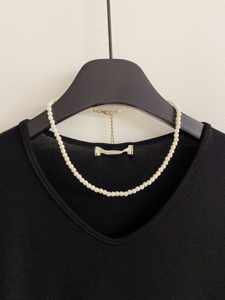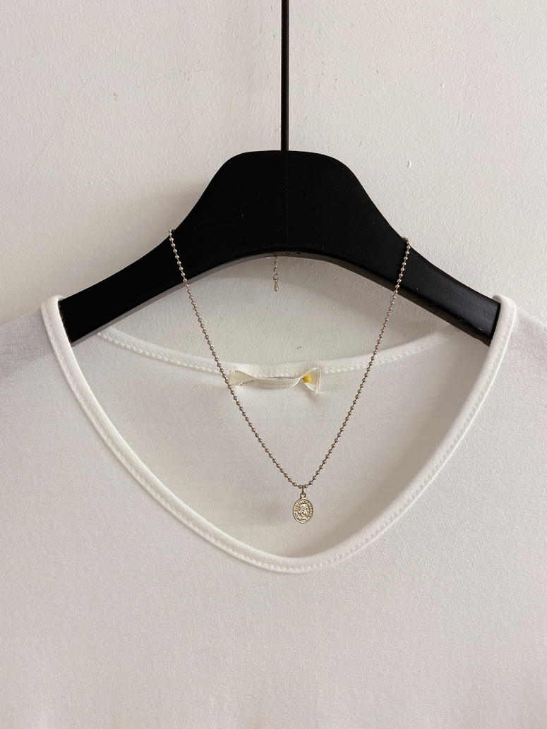브이넥 디자인으로 쇄골과 목선이 드러나 여성스러운 무드를 보여주며