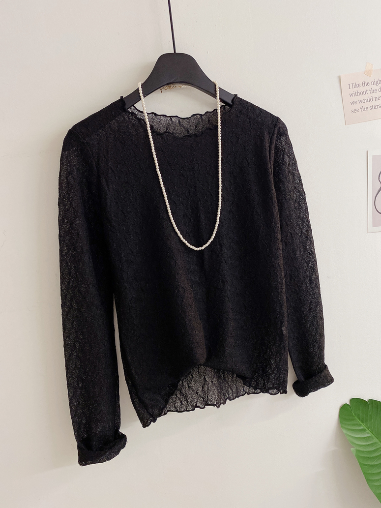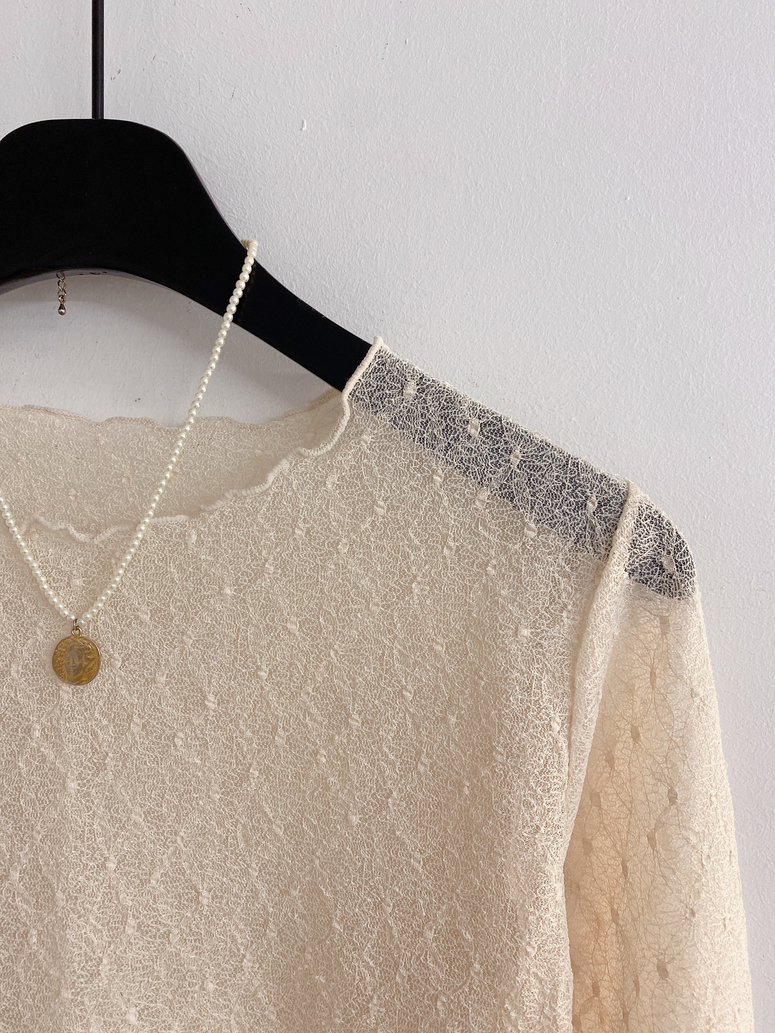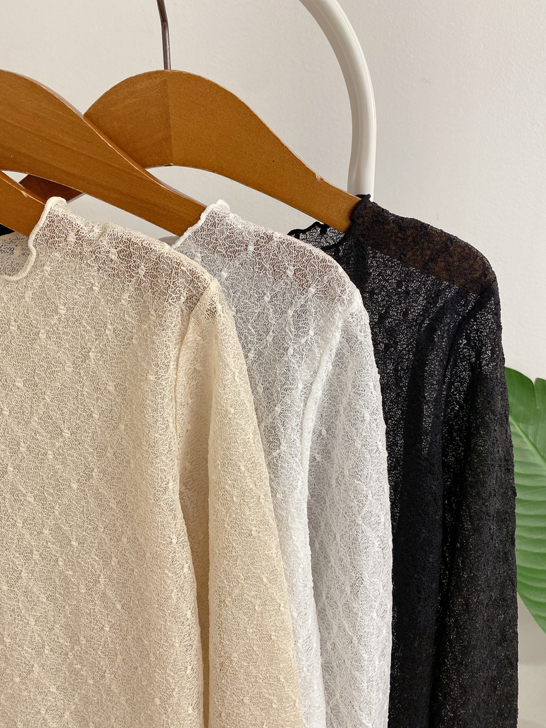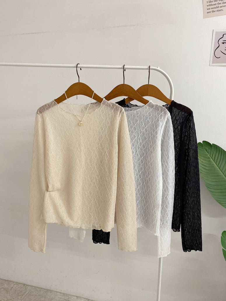[랩셀비 레이스 시스루 물결 긴팔 티셔츠] 보여드려요~