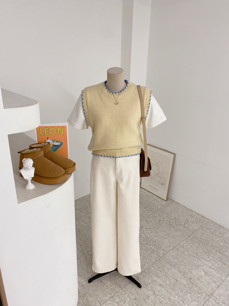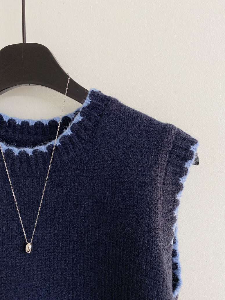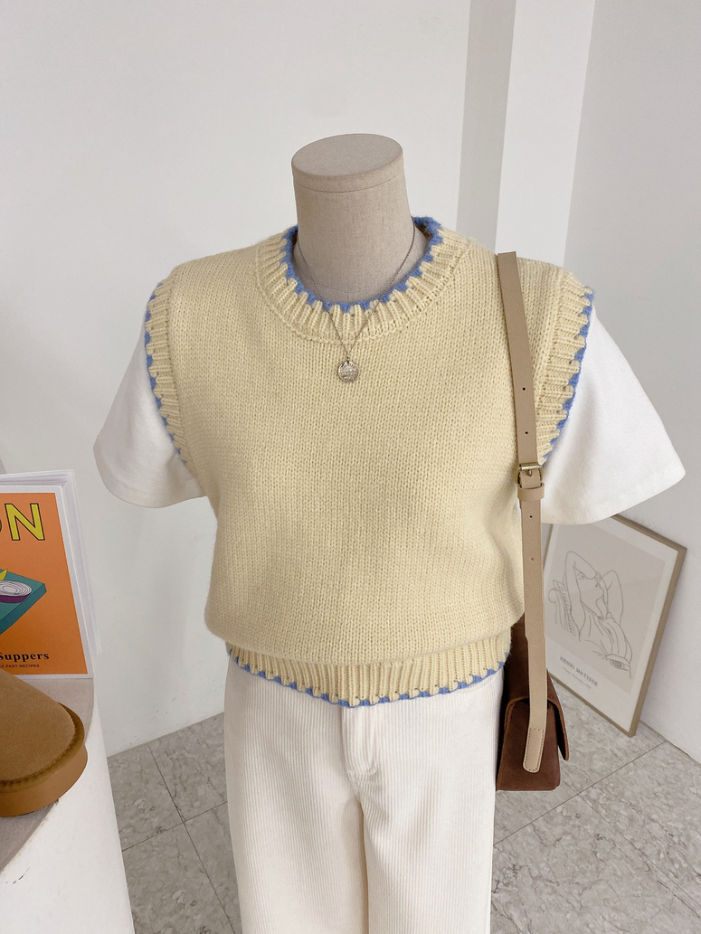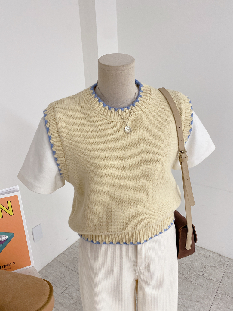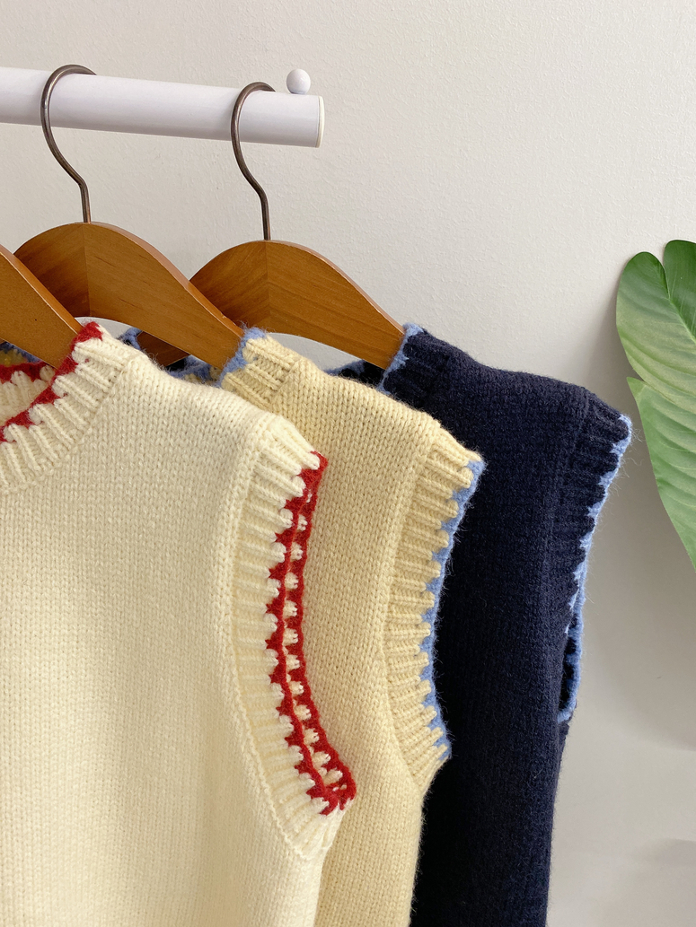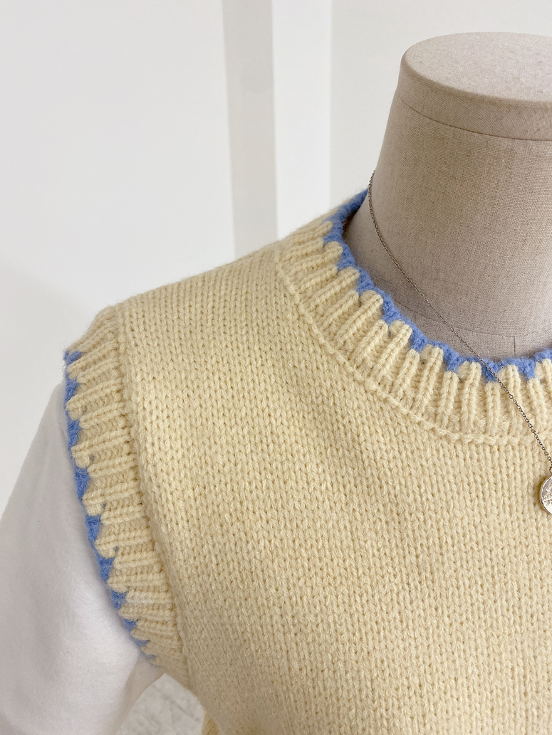 배색 라인 자체가 포인트가 되어주는 니트 조끼 보여드려요