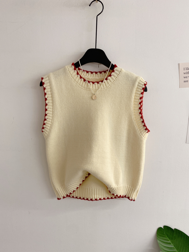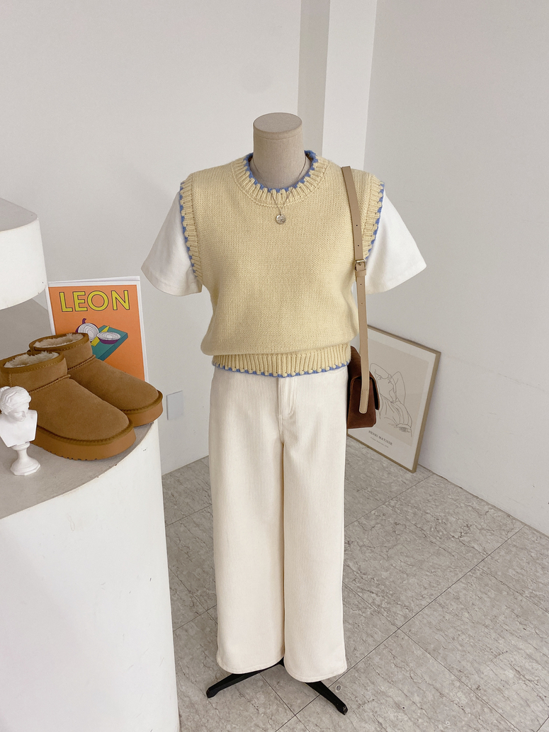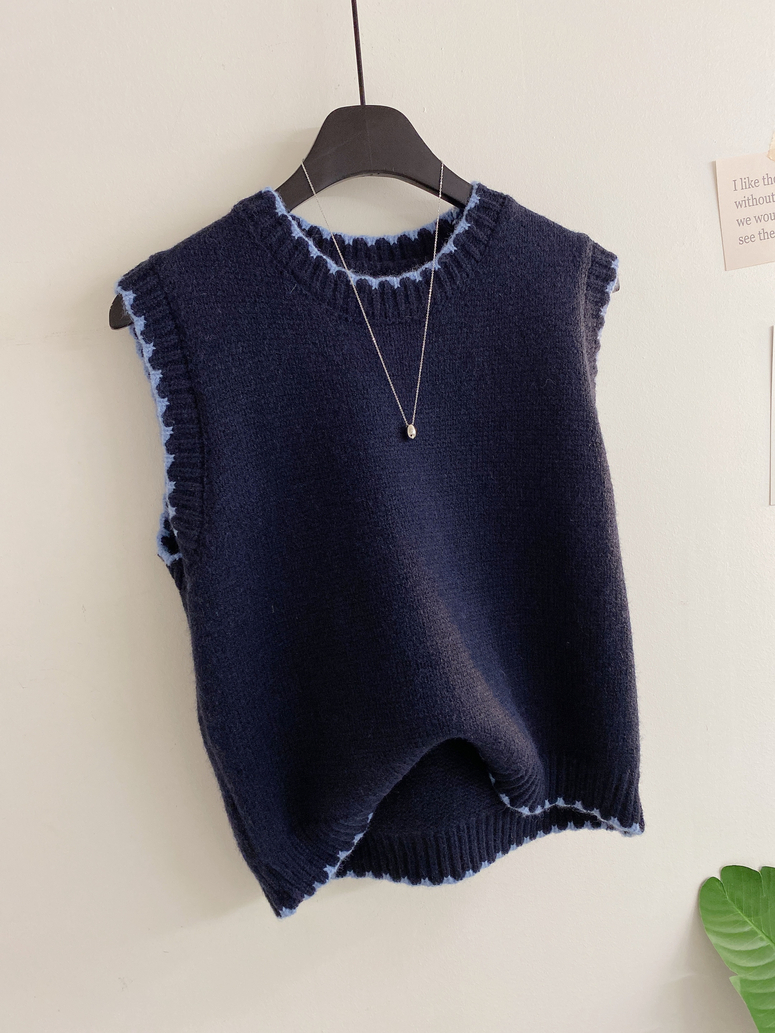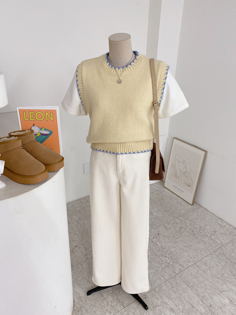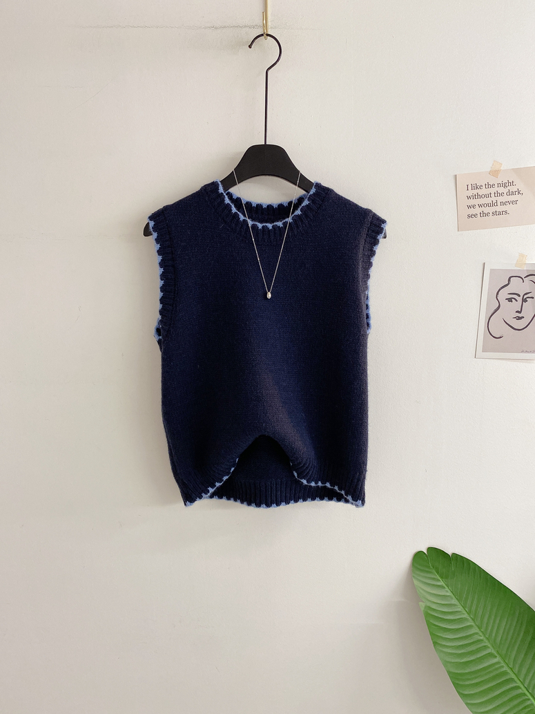 배색 라인 자체가 포인트가 되어주는 니트 조끼 보여드려요