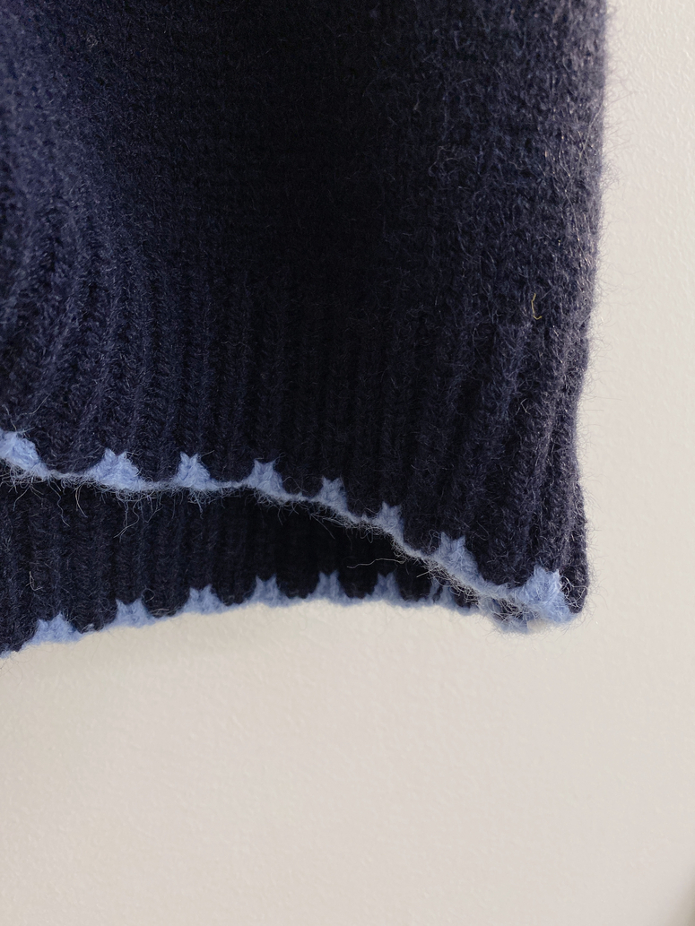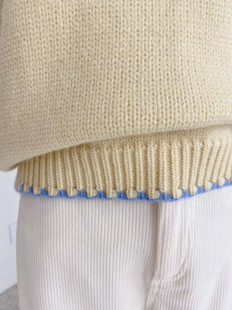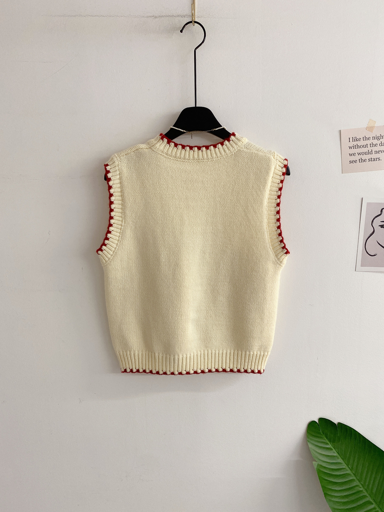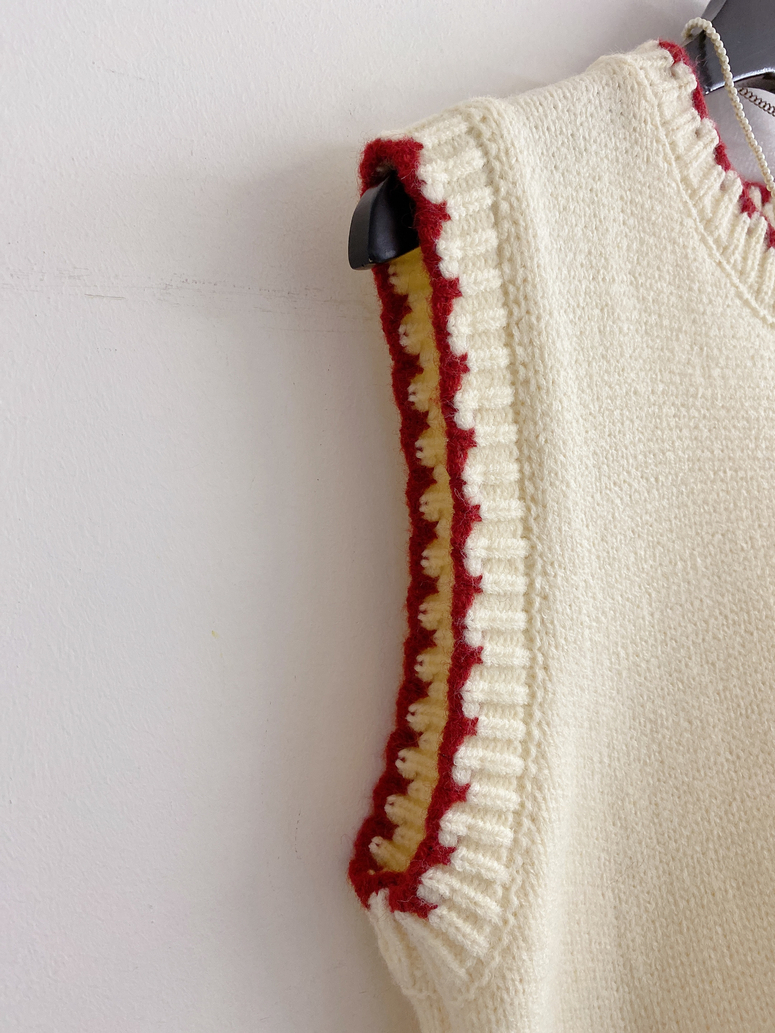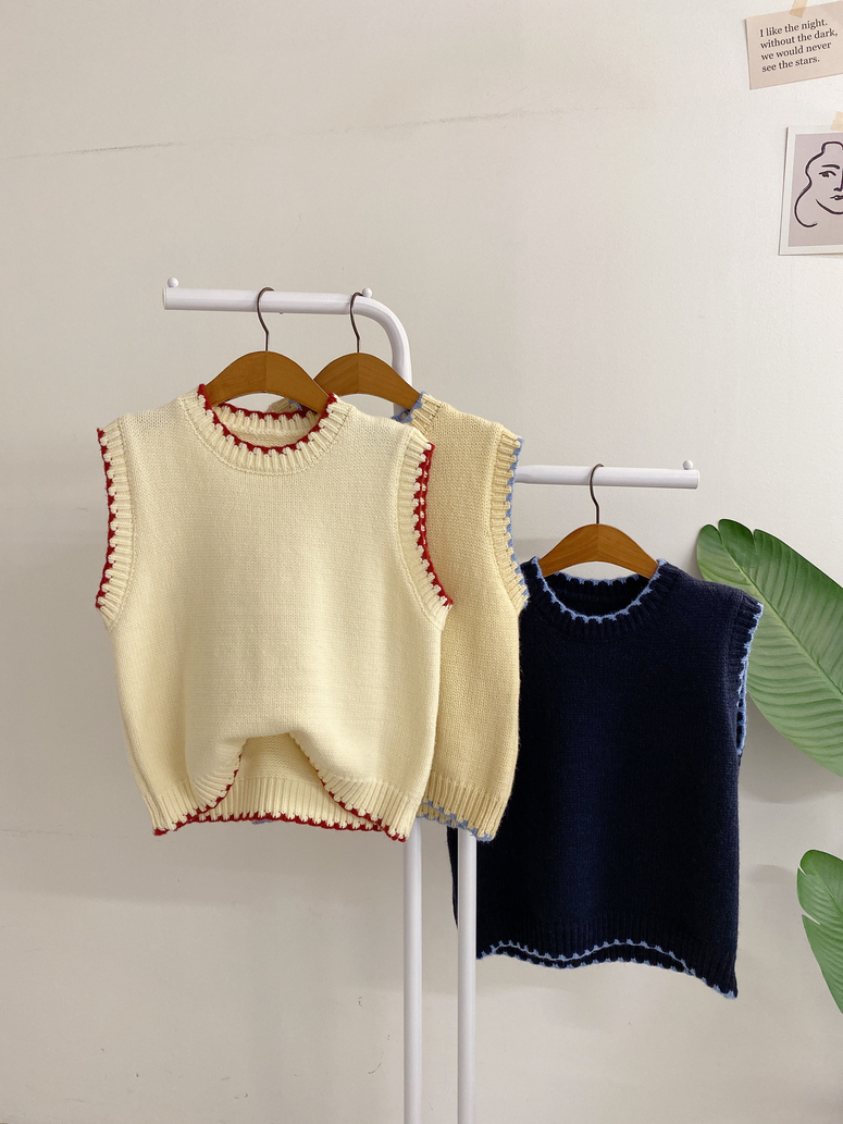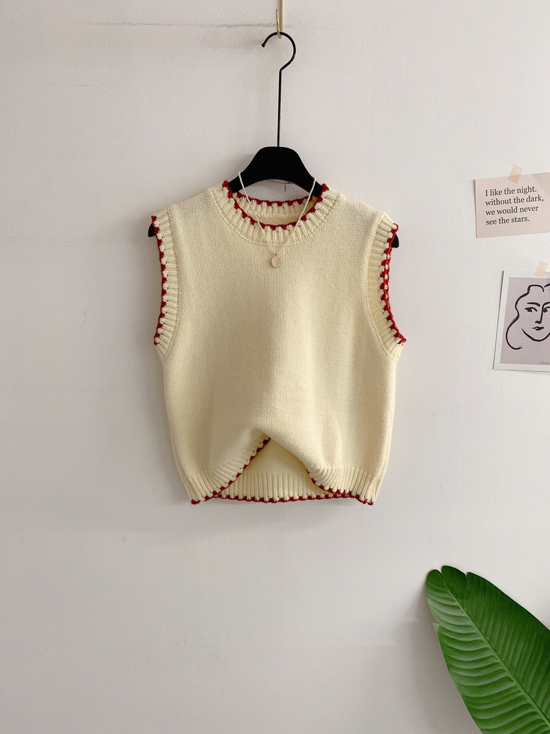 배색 라인 자체가 포인트가 되어주는 니트 조끼 보여드려요
