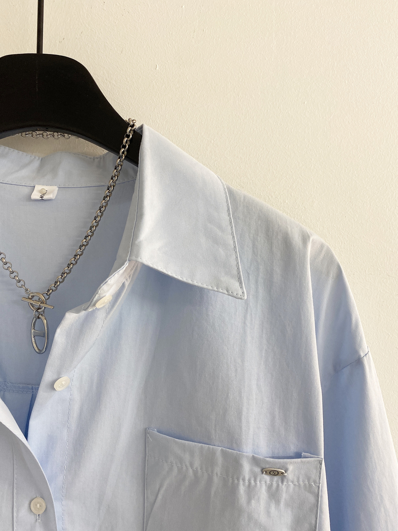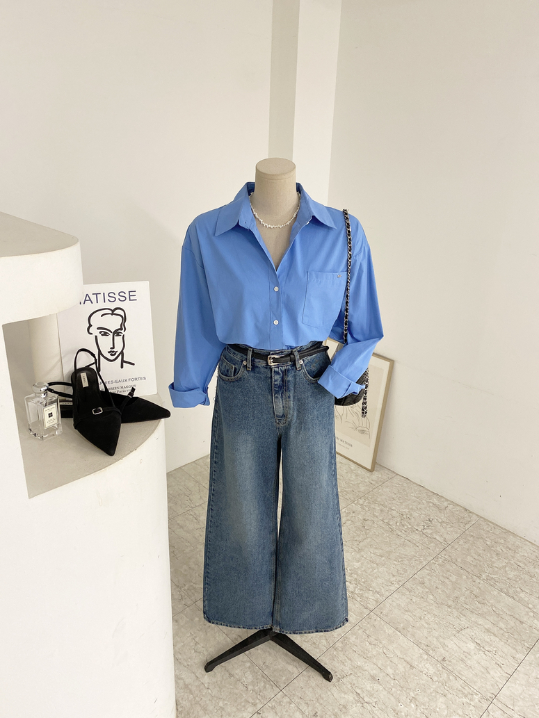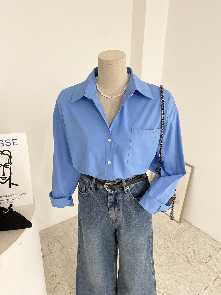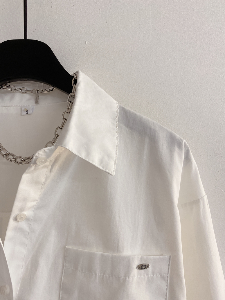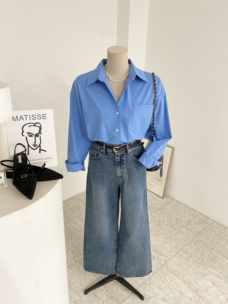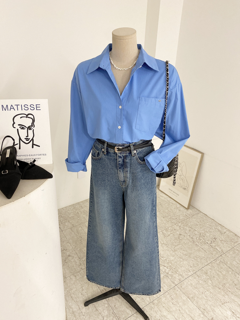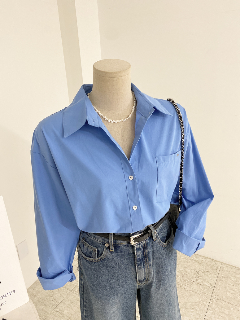 [브로매 루즈핏 포켓 실버장식 카라 셔츠] 보여드려요~