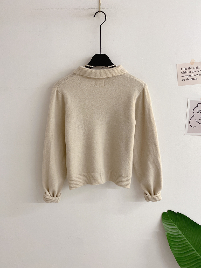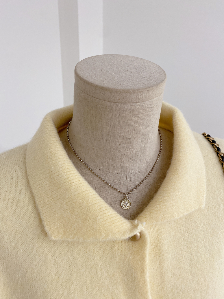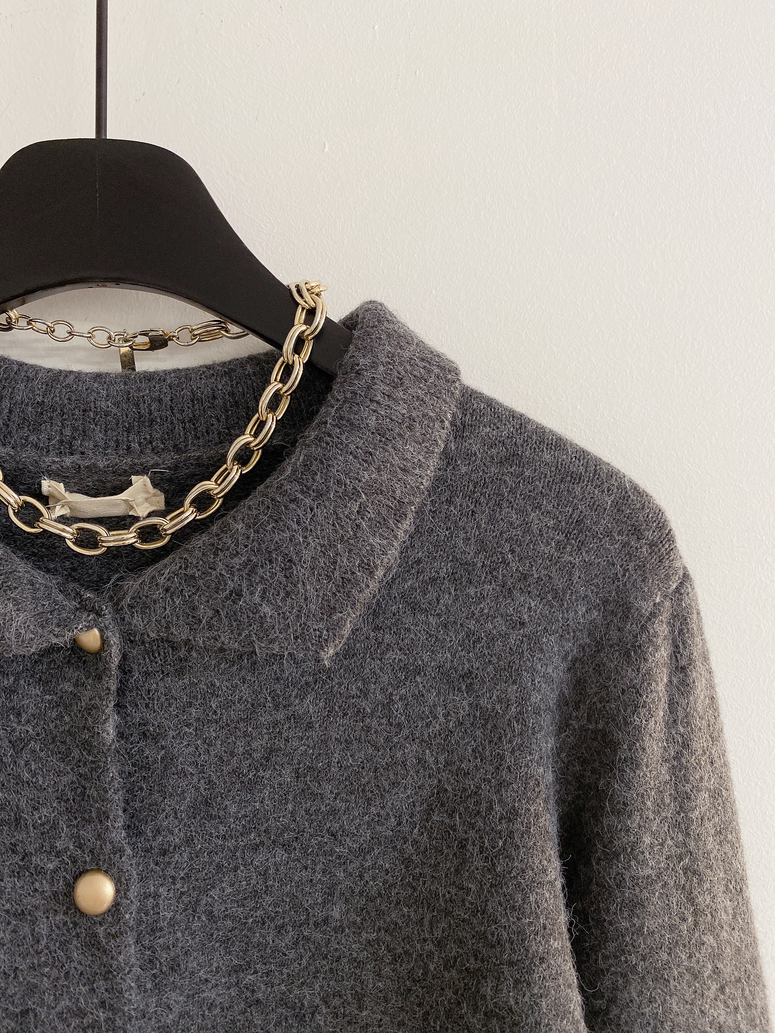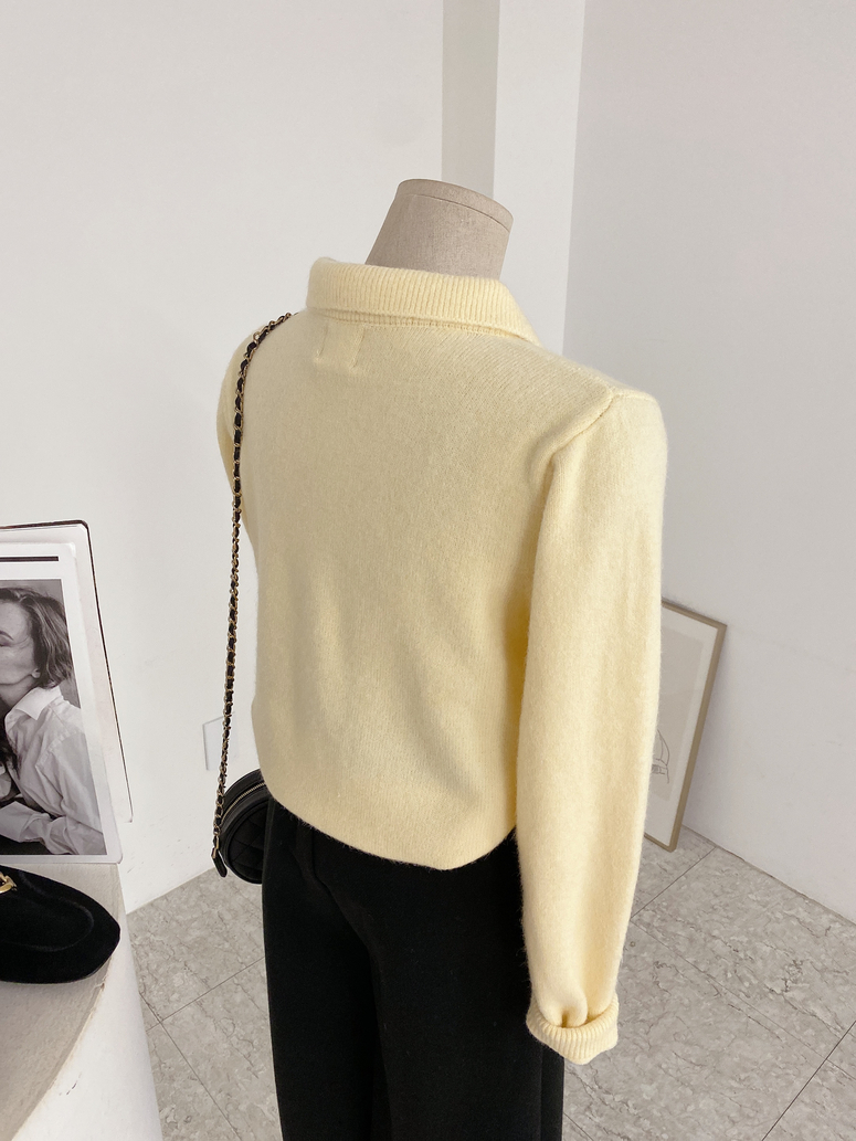 카라넥으로 깔끔한 아웃핏과 작은 페이스라인을 연출해주며