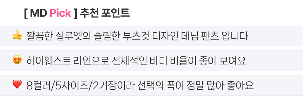 슬림한 부츠컷 디자인으로 다리가 길어보이며