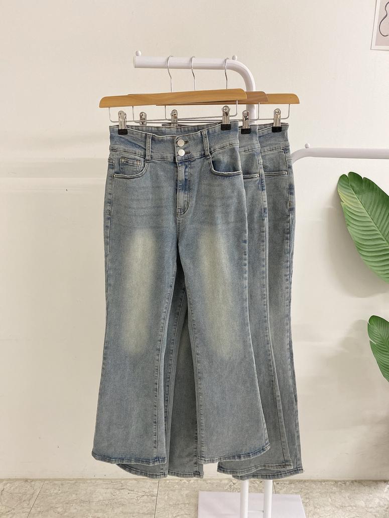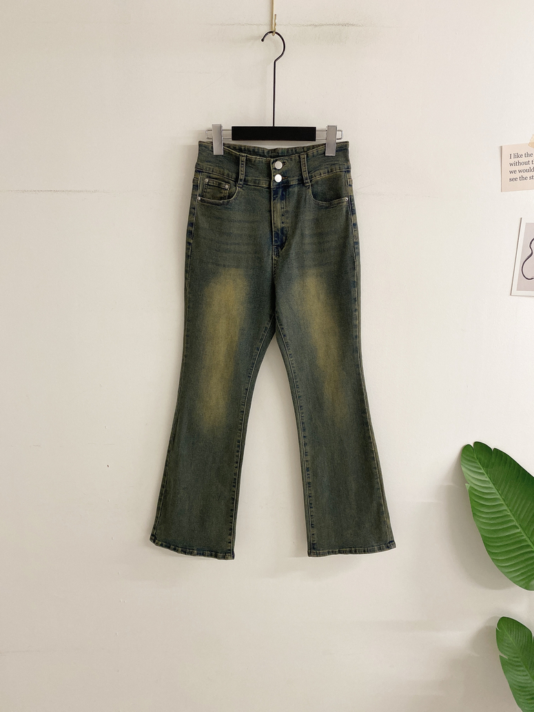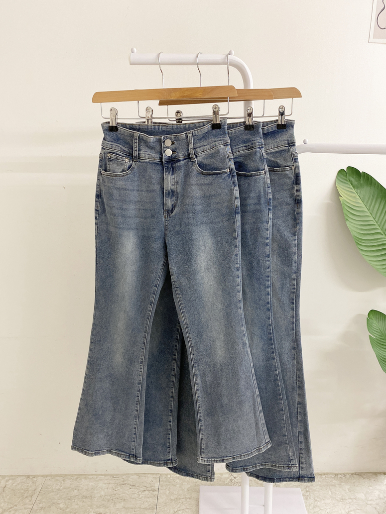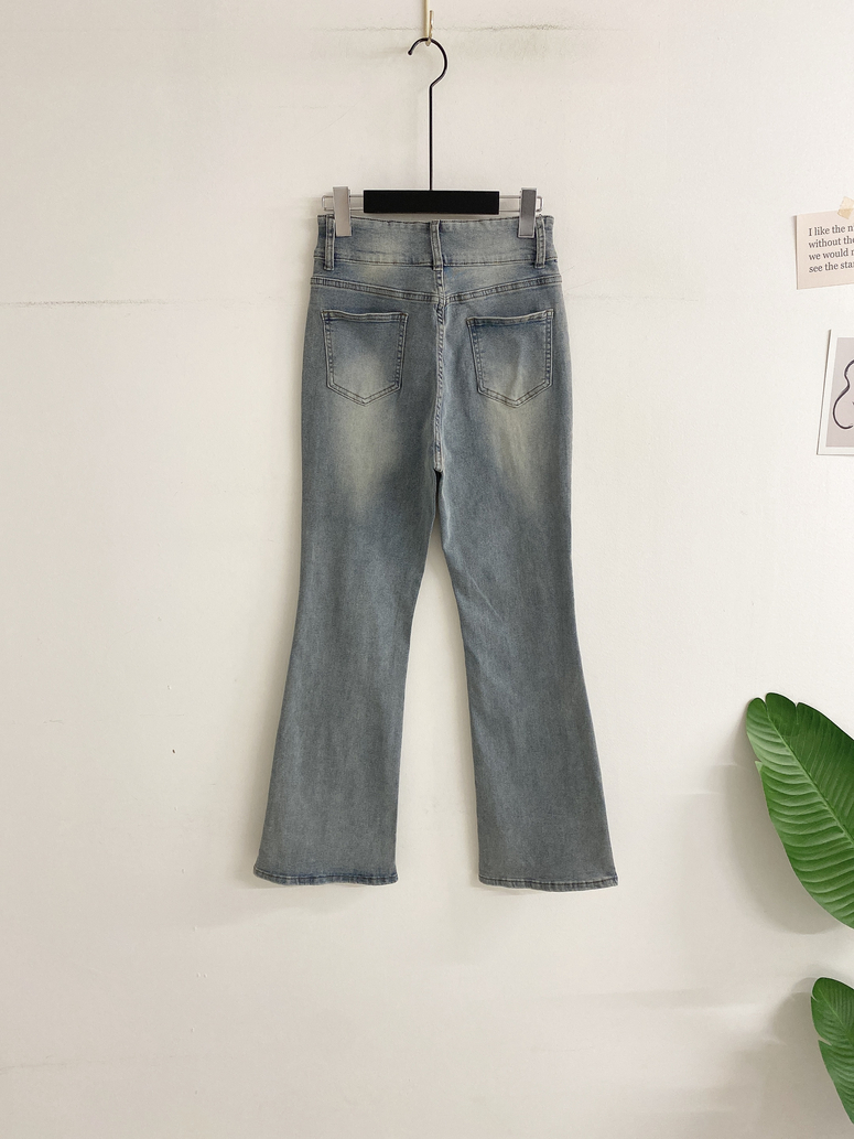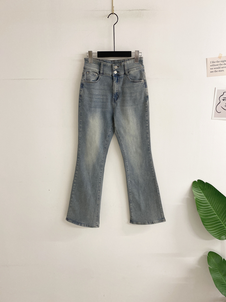 자연스럽게 퍼지는 부츠컷 라인이 날씬한 실루엣을 연출해주며