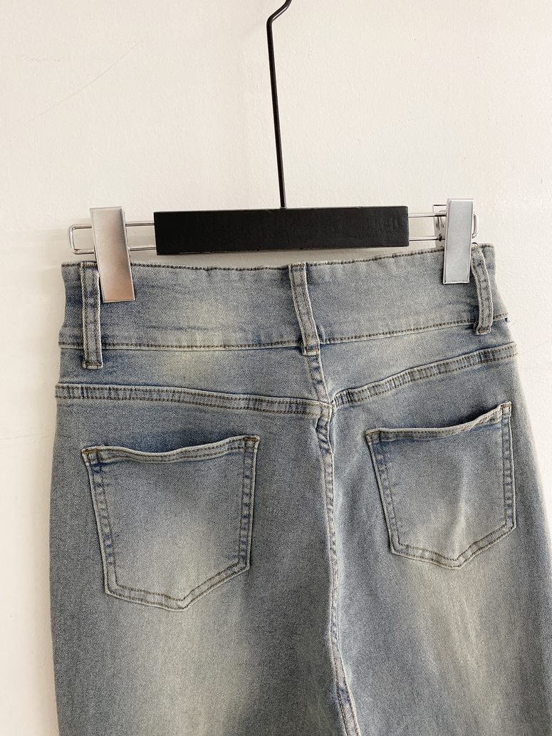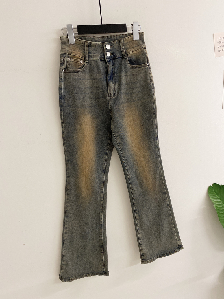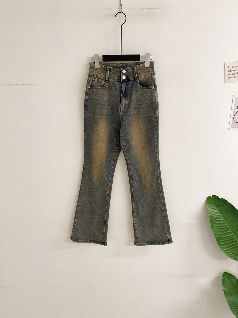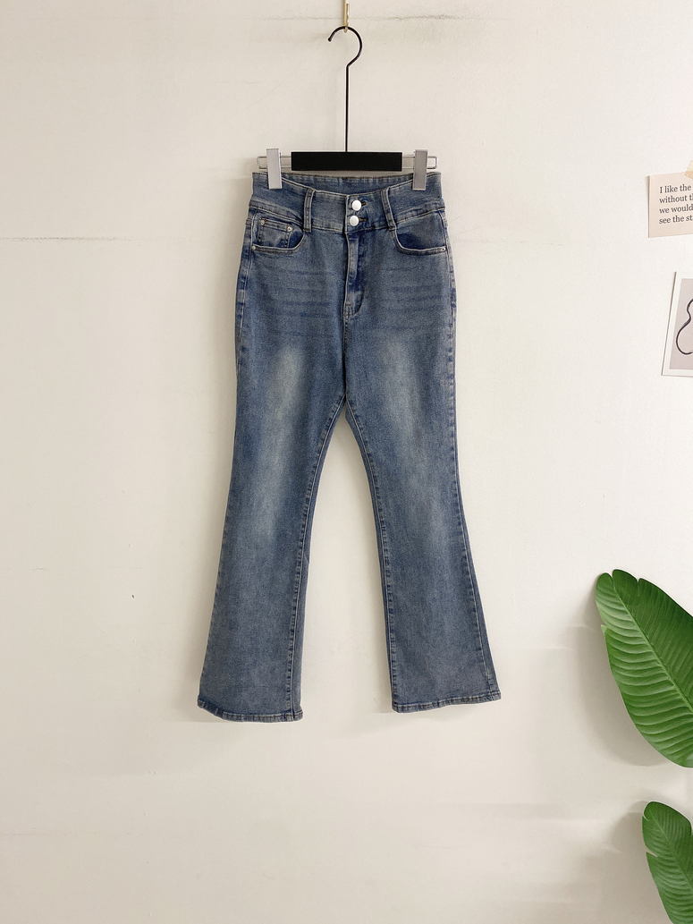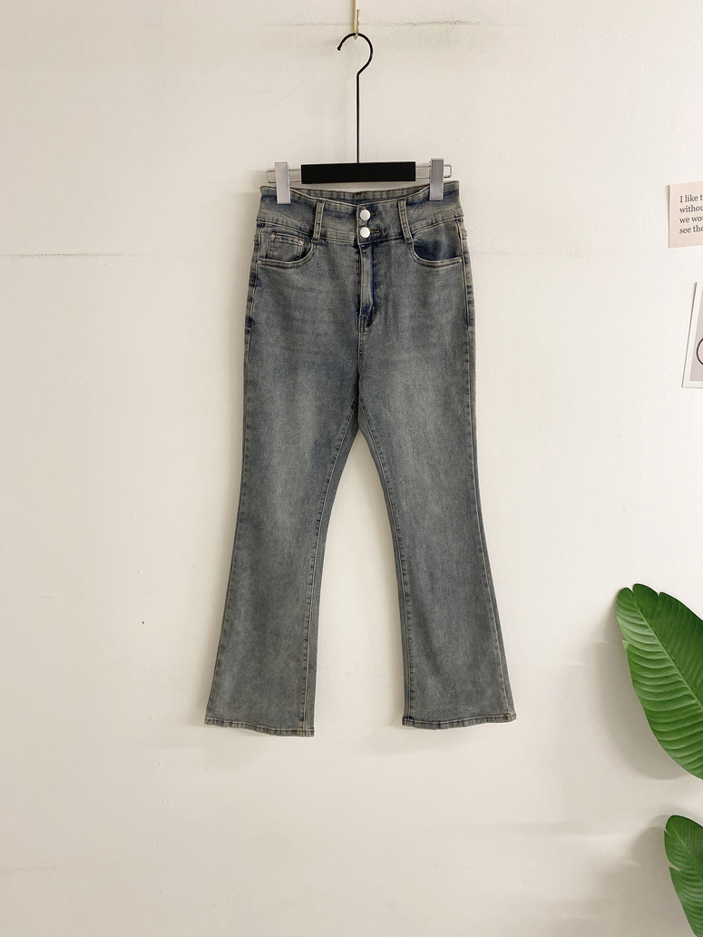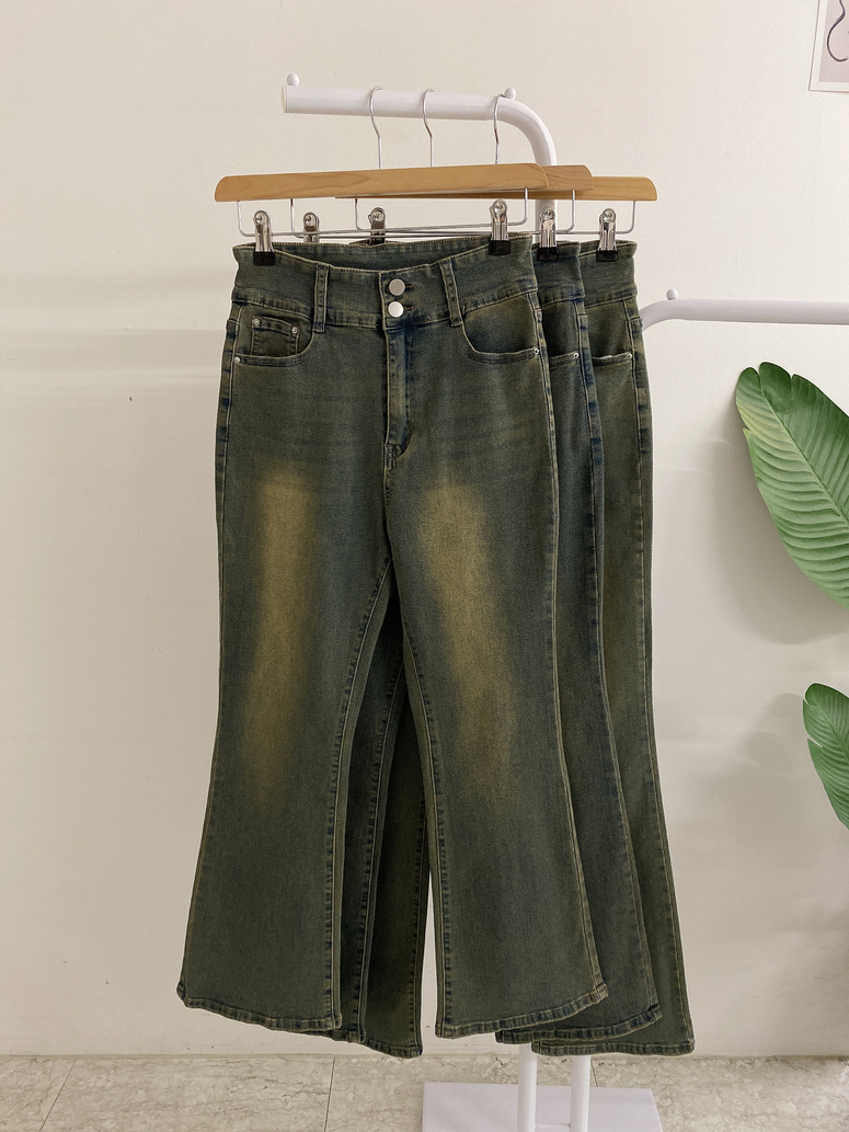 자연스럽게 퍼지는 부츠컷 라인이 날씬한 실루엣을 연출해주며
