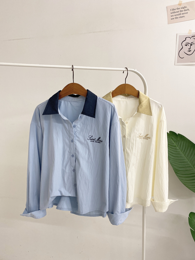 [레보니 카라 배색 자수 레터링 셔츠] 소개해드려요~