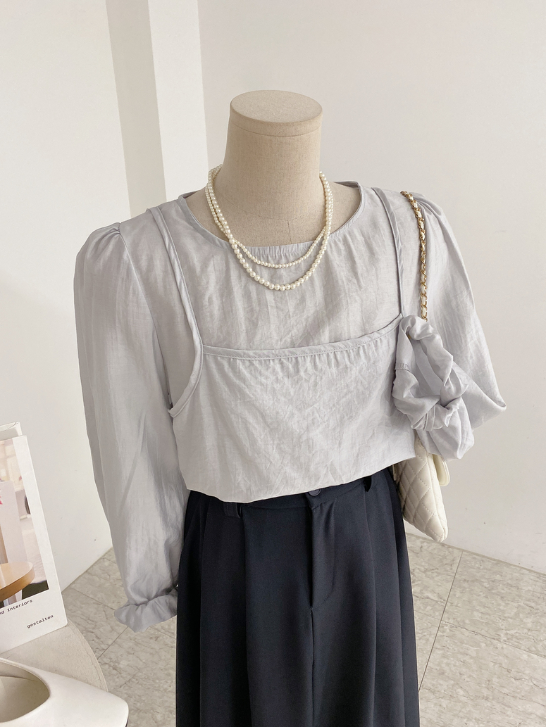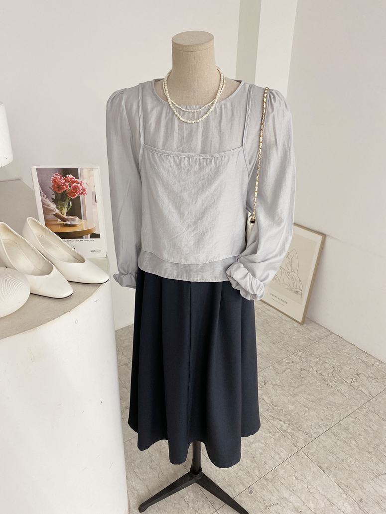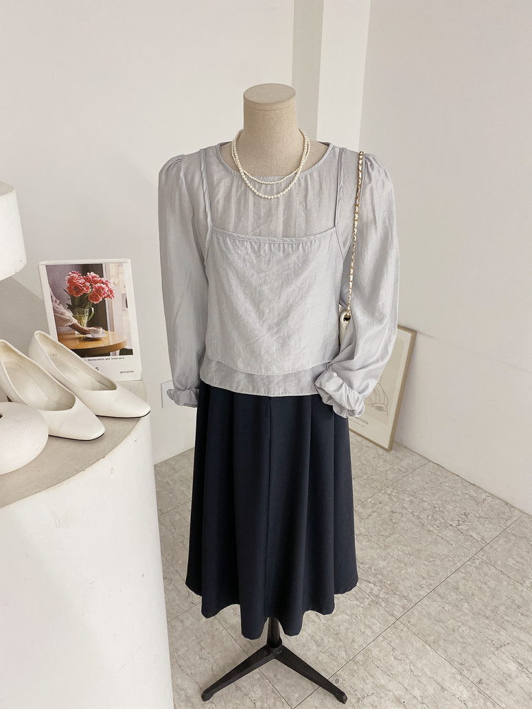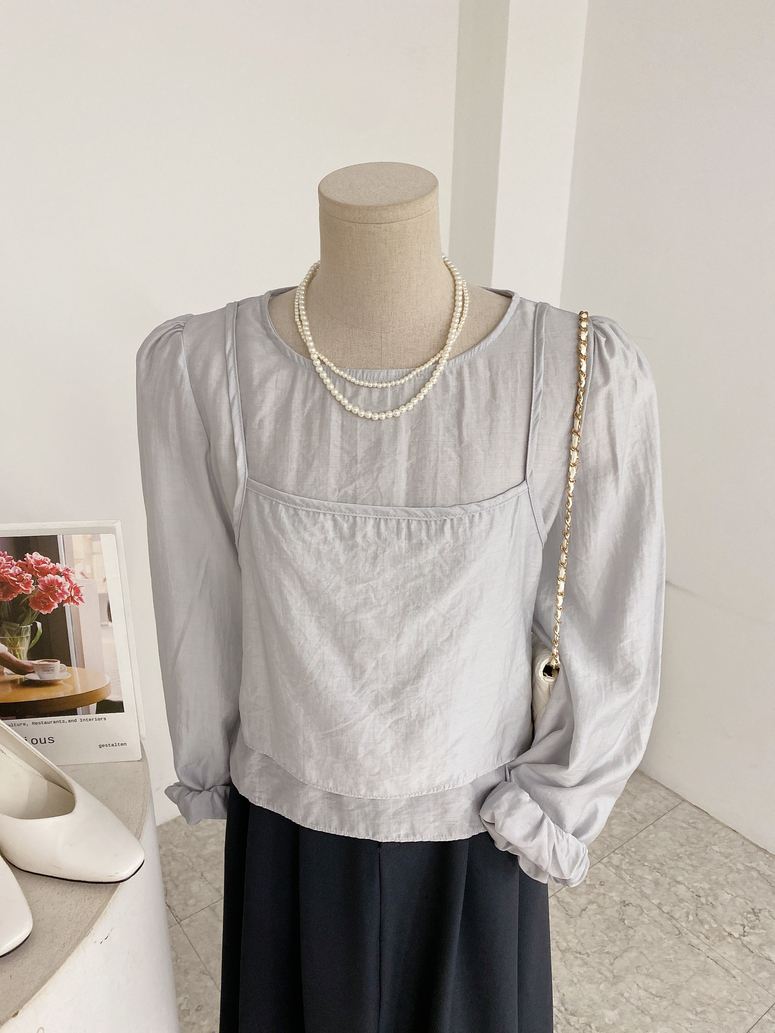 뷔스티에가 레이어드 되어있는 블라우스로