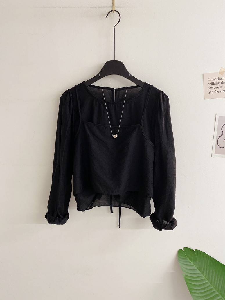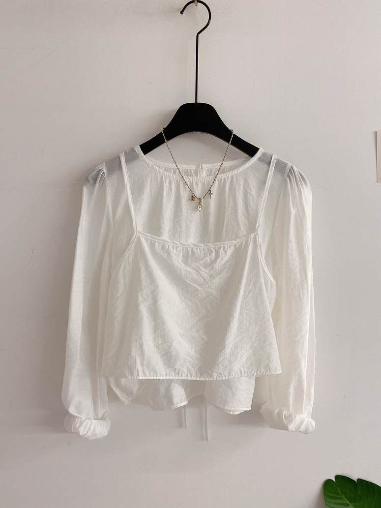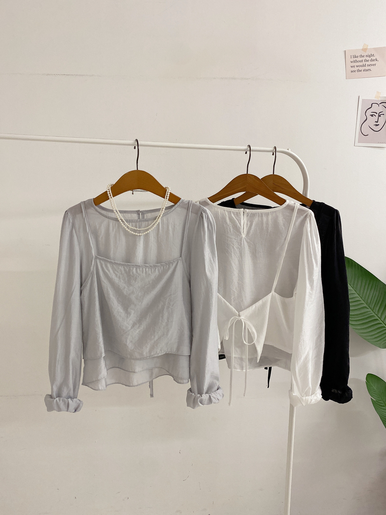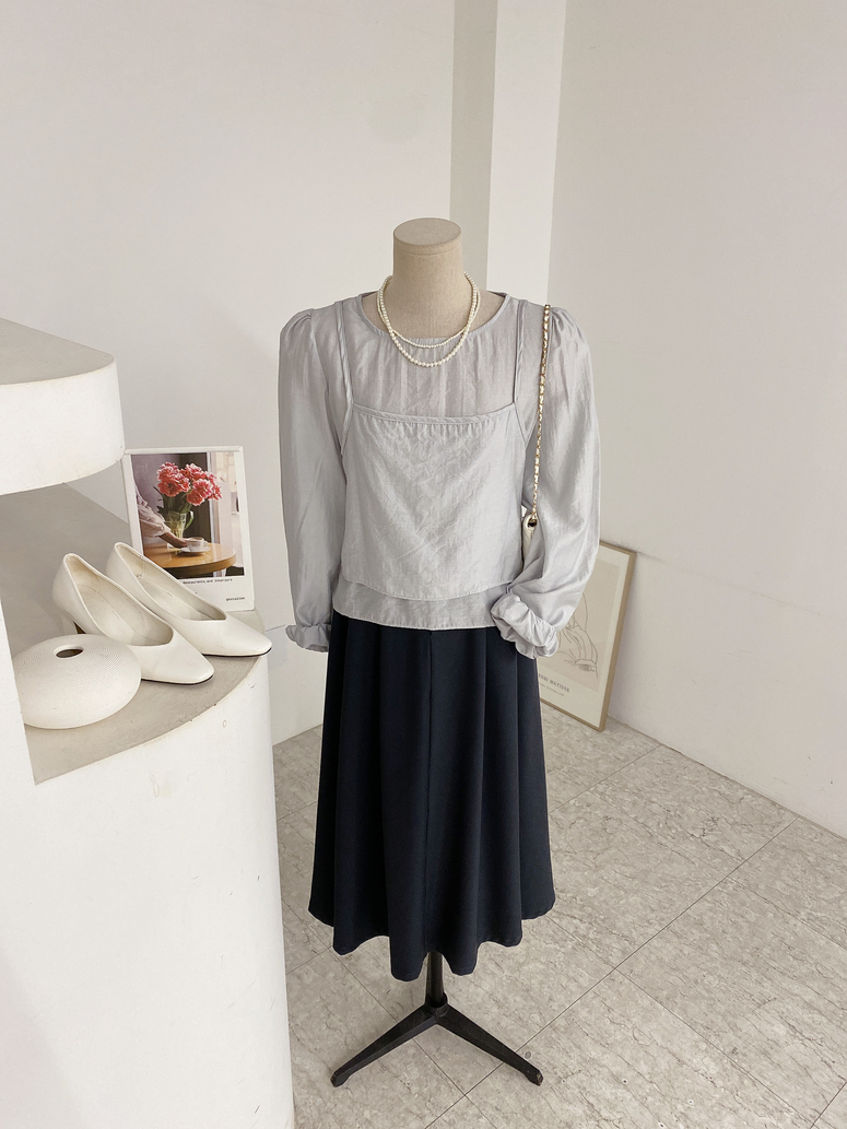 뷔스티에가 레이어드 되어있는 블라우스로