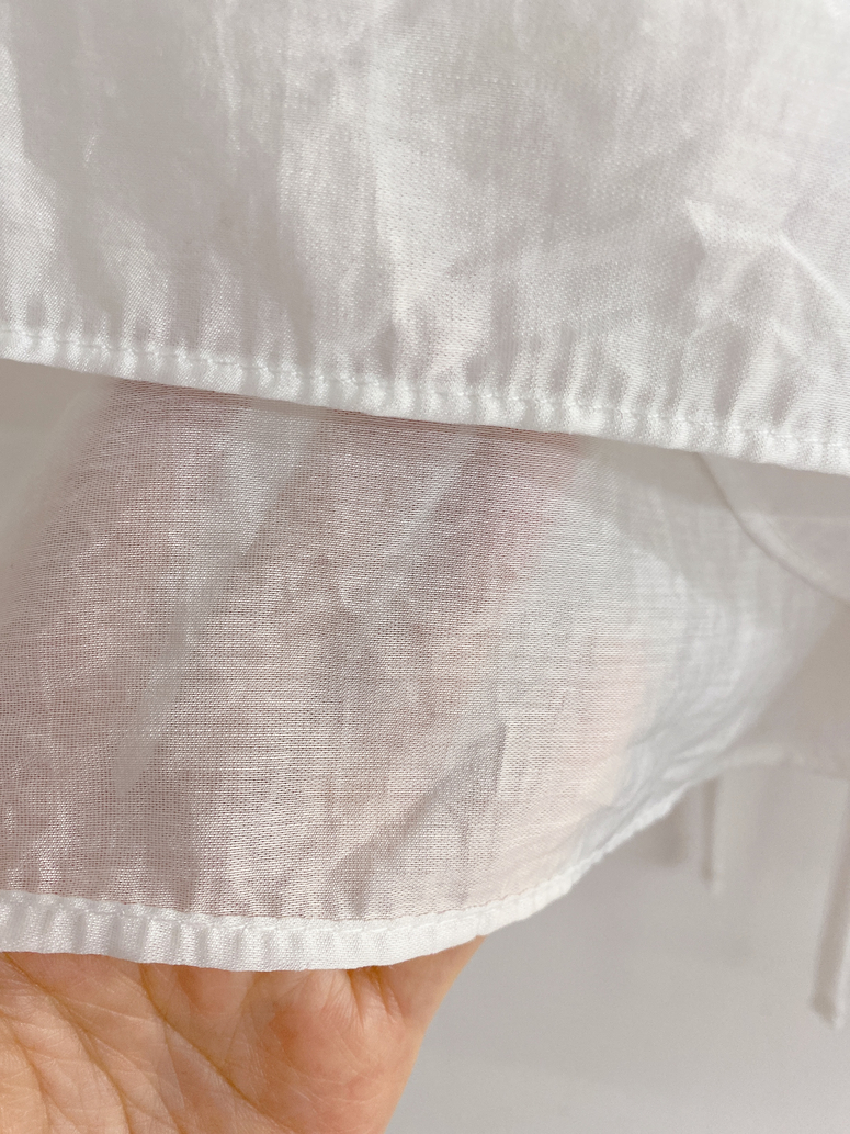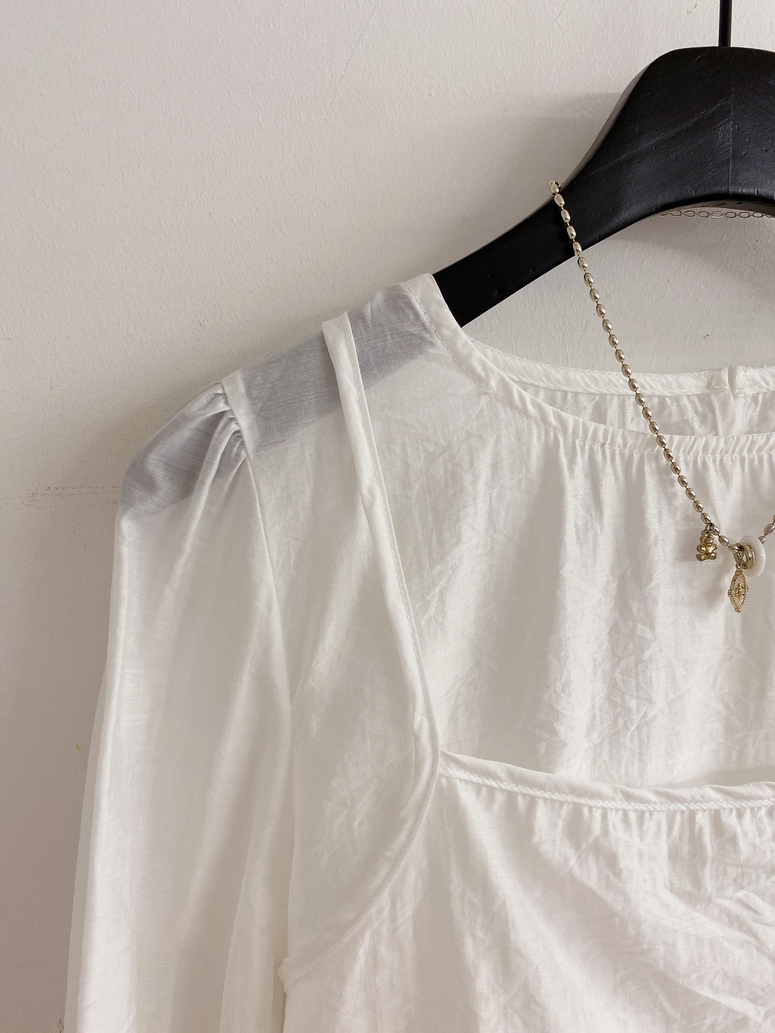 시스루 원단으로 더욱 여리한 실루엣을 만들어준답니다
