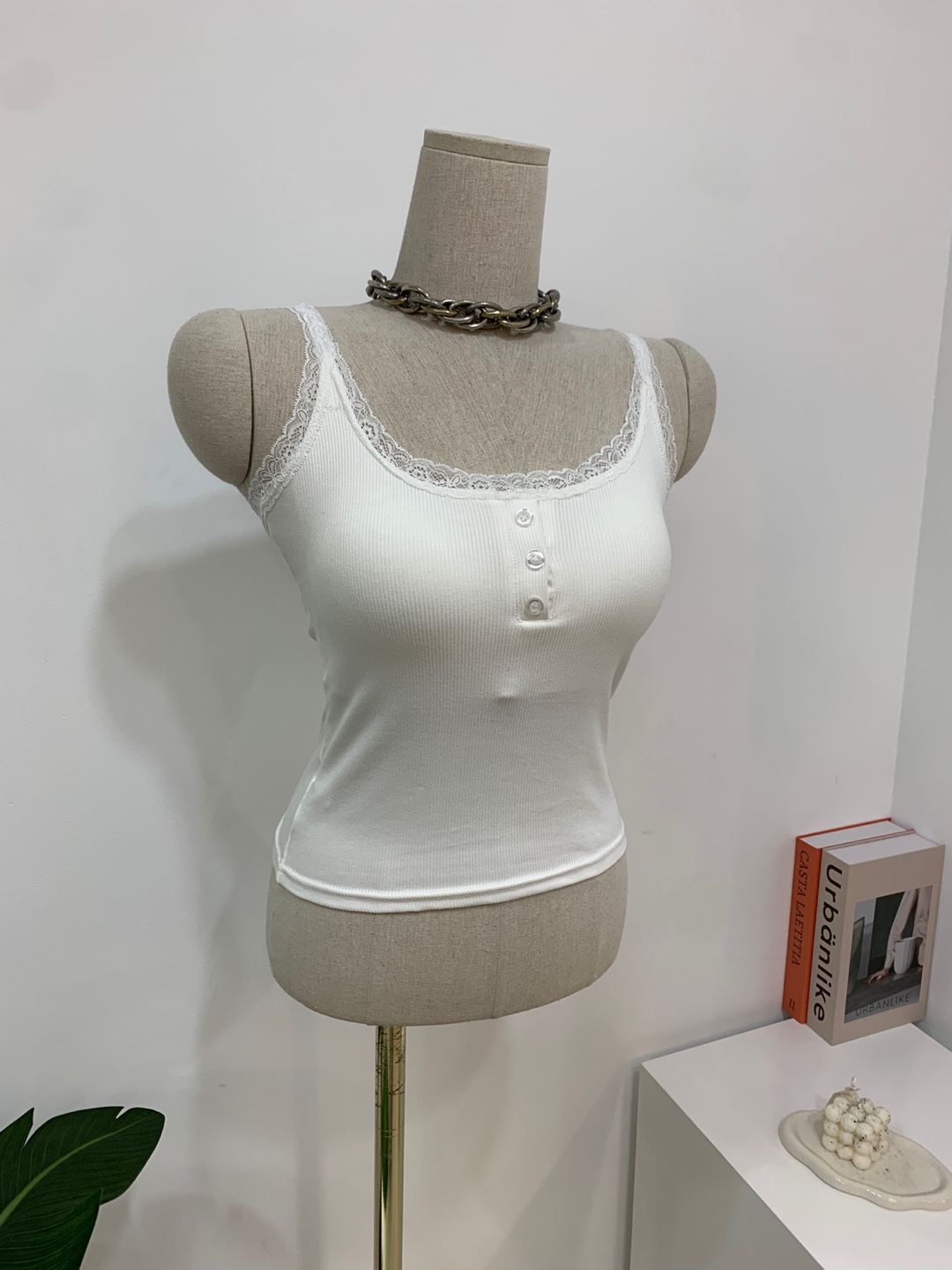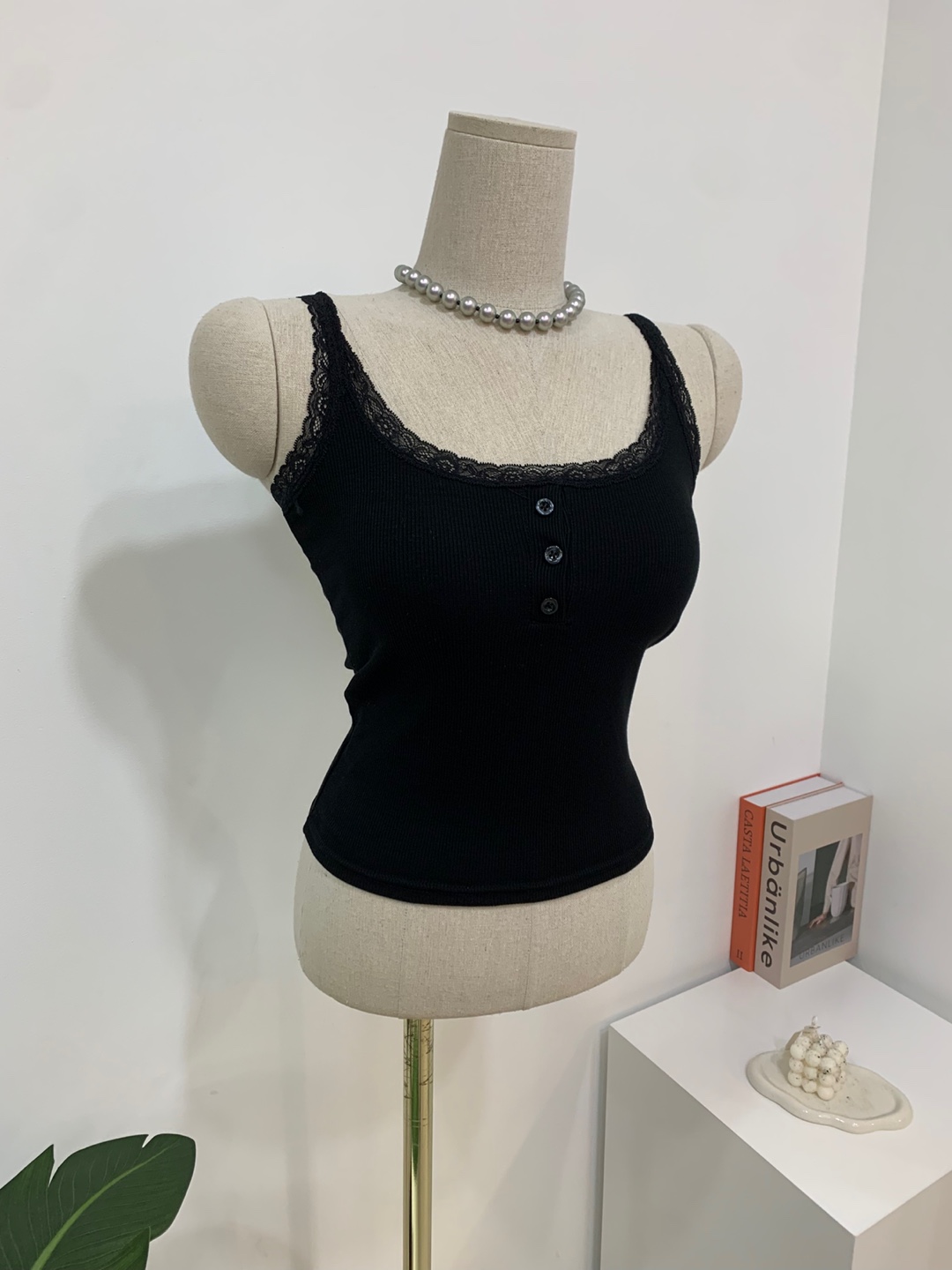 윗부분에 레이스로 덧대어주어