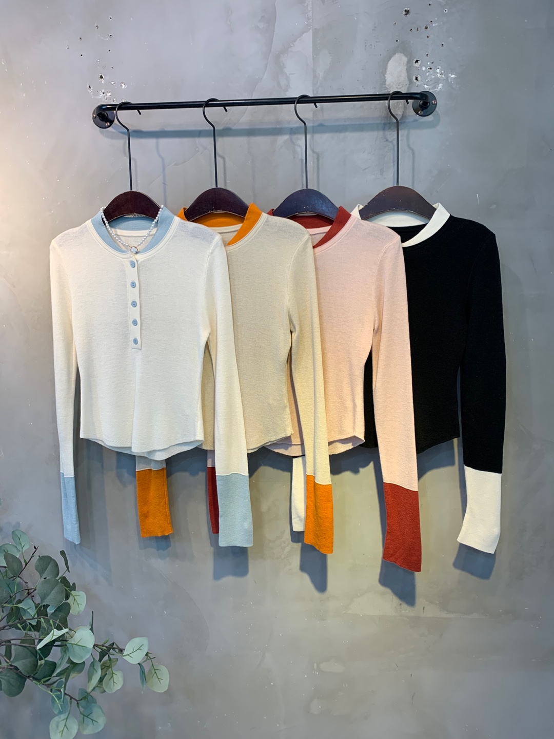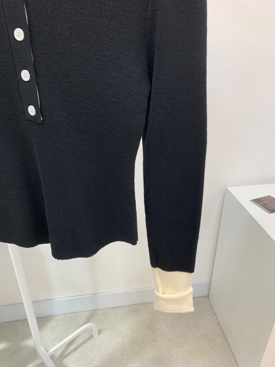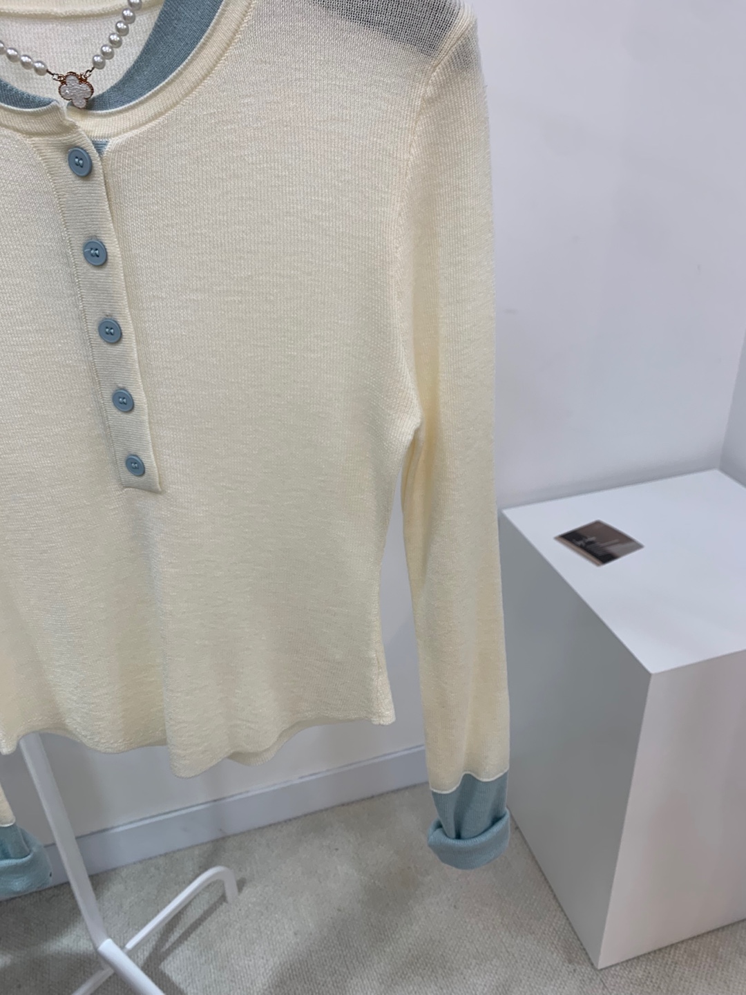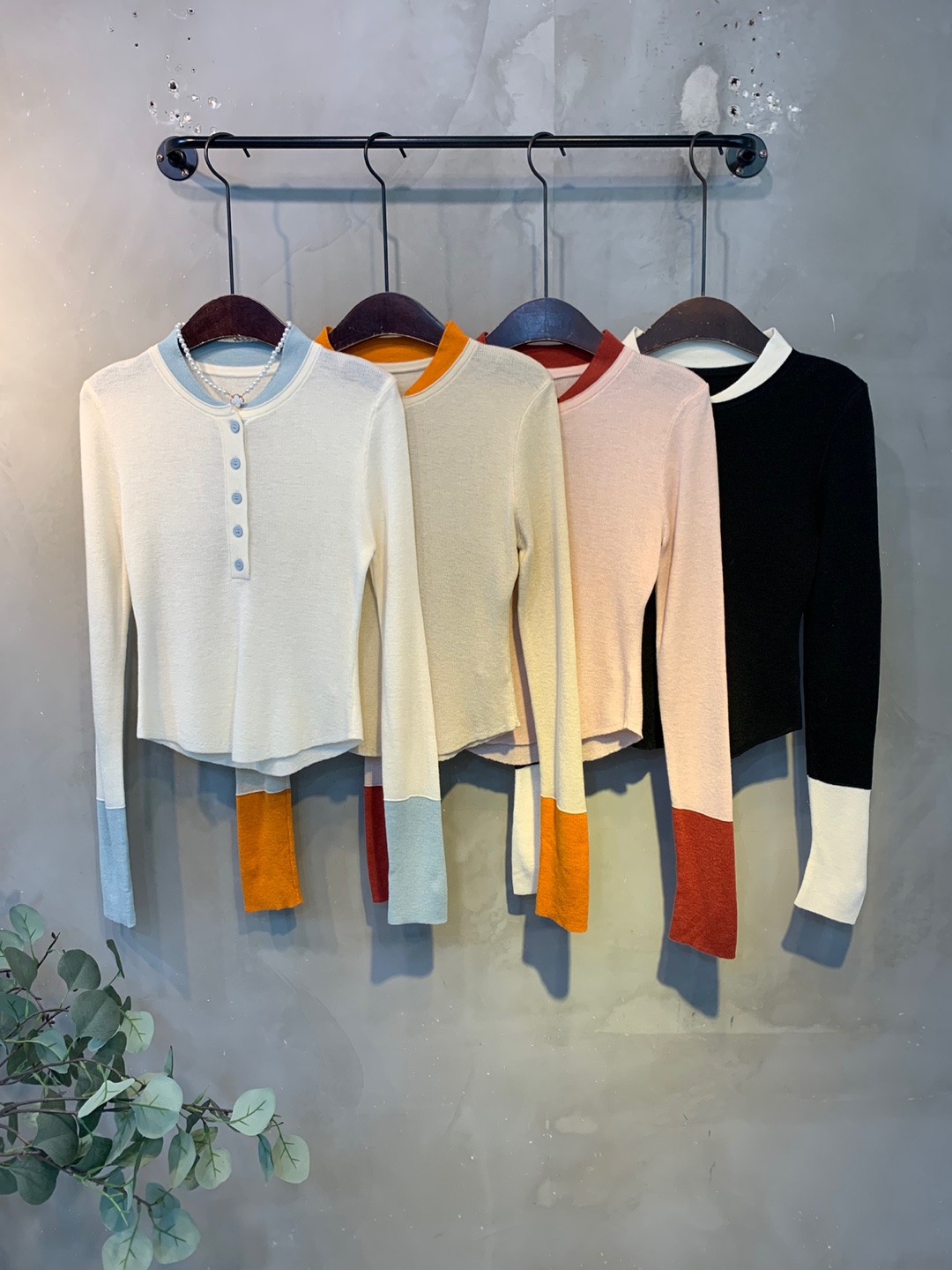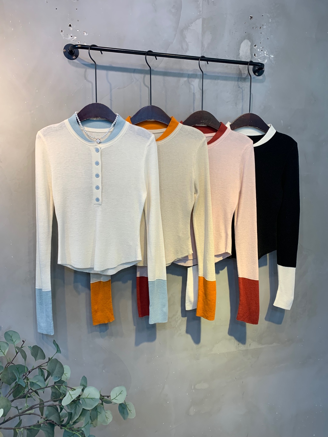 넥과 손목에 배색으로 레이어드