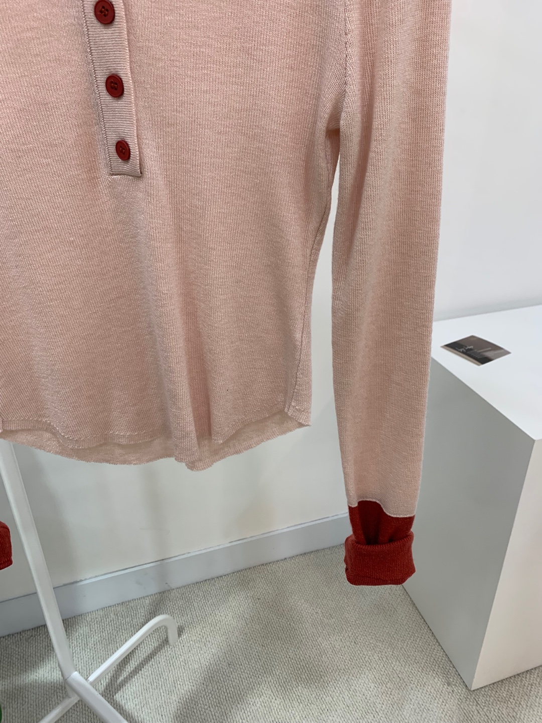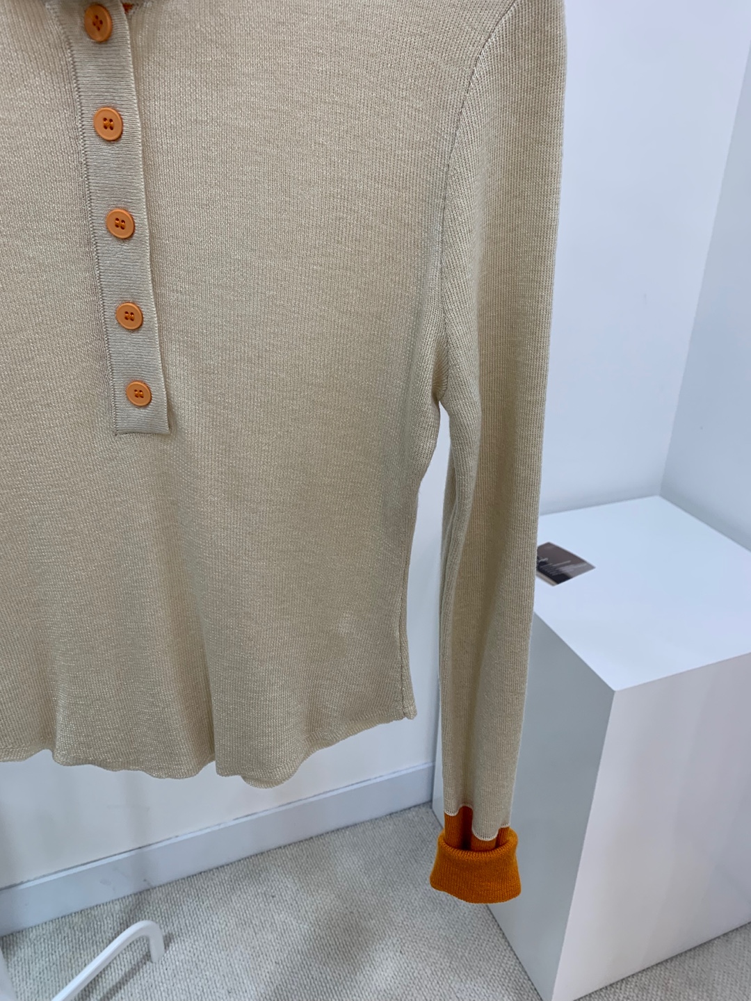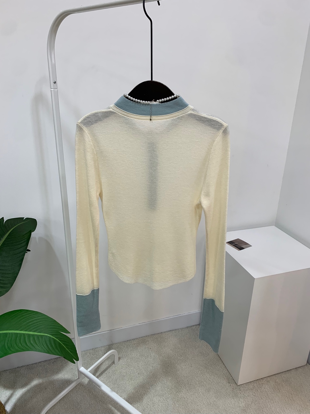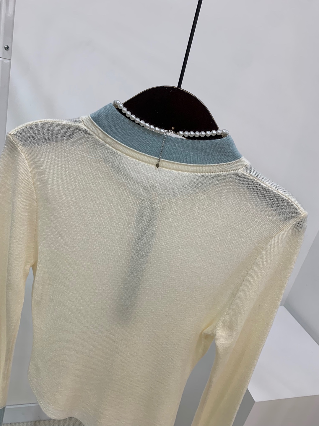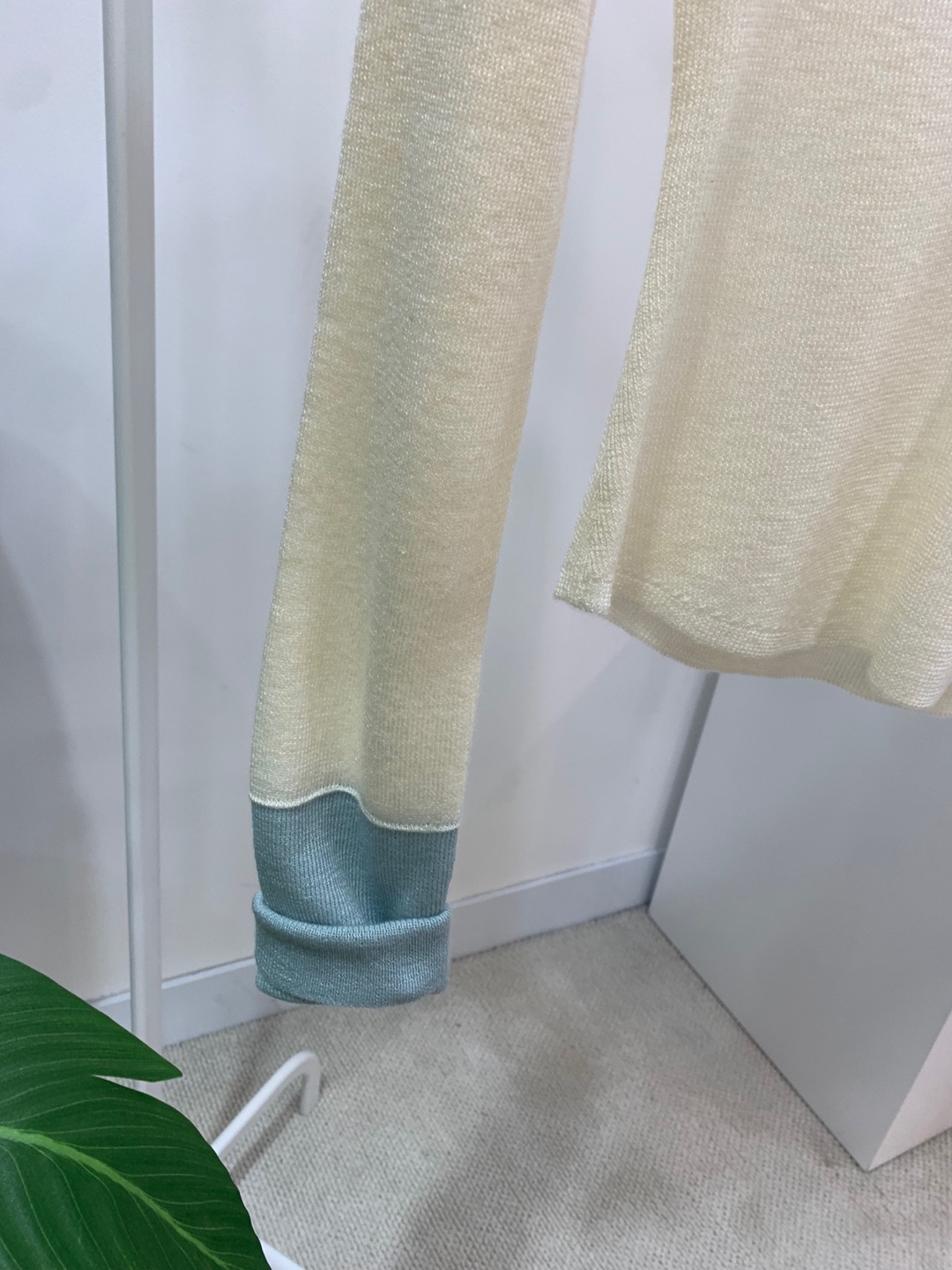 넥과 손목에 배색으로 레이어드