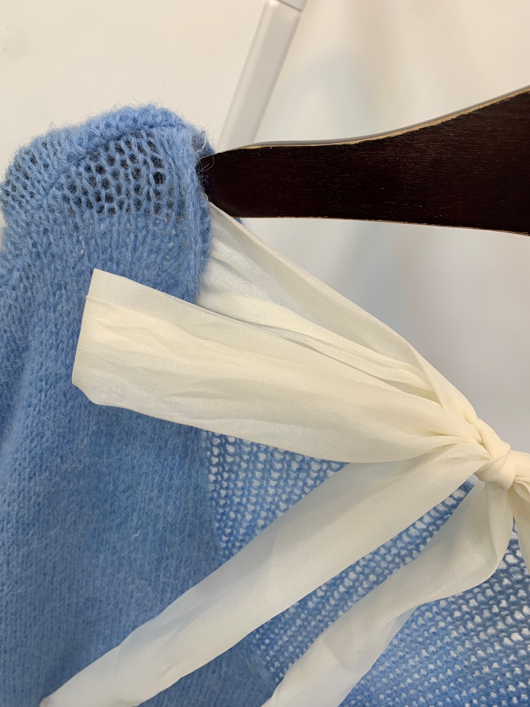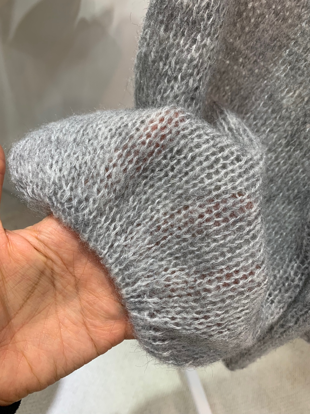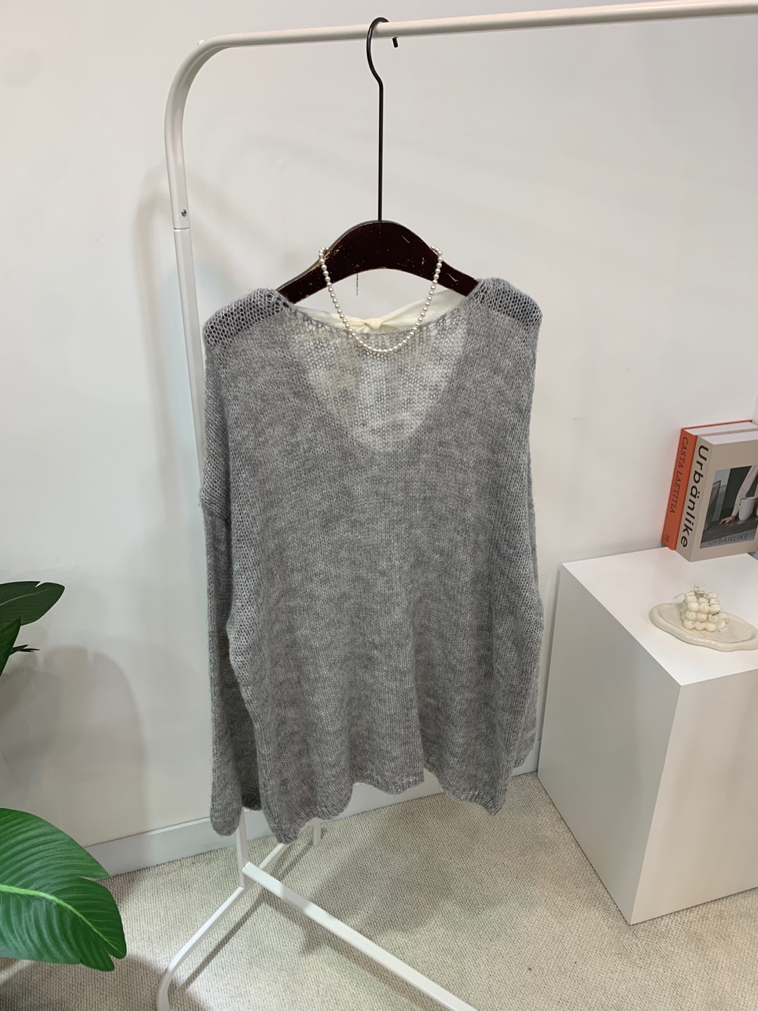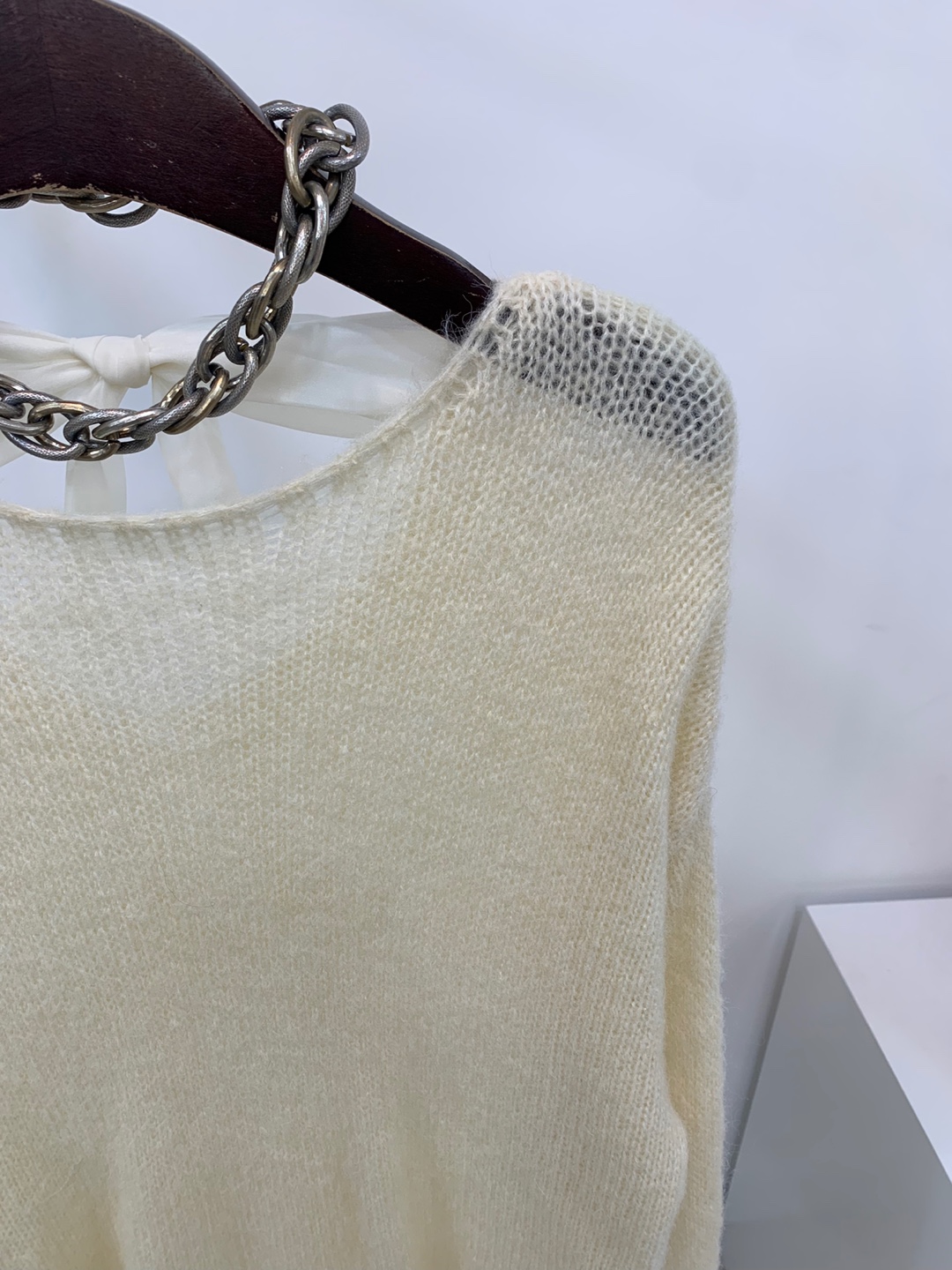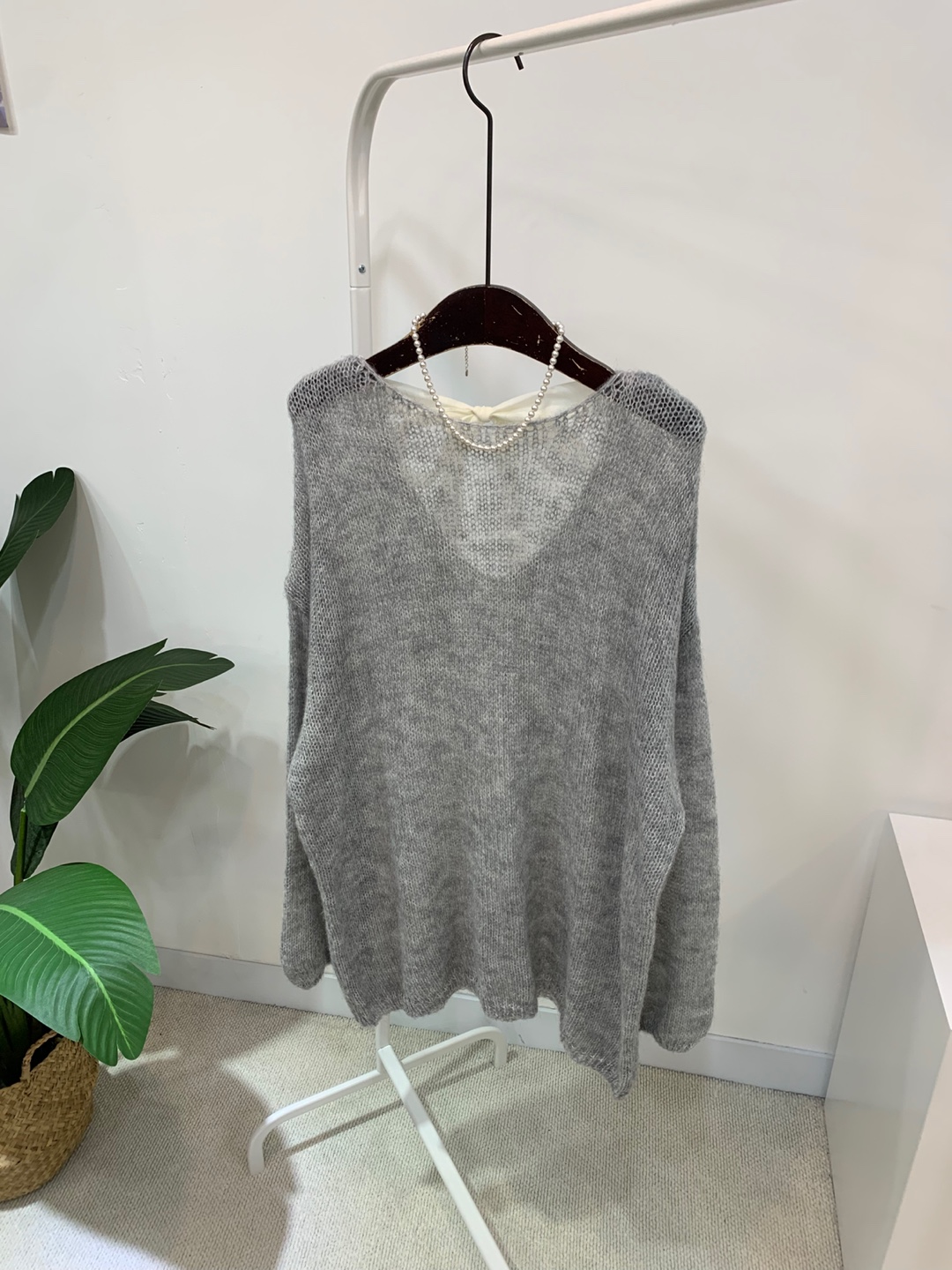 와이드 넥 라인에 촘촘한 그물 패턴의
