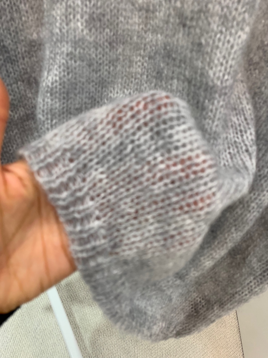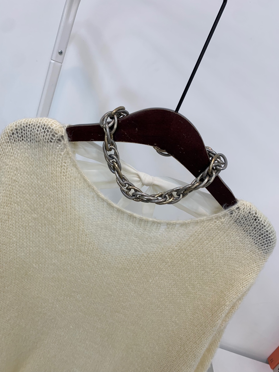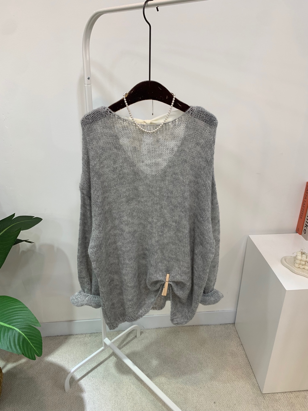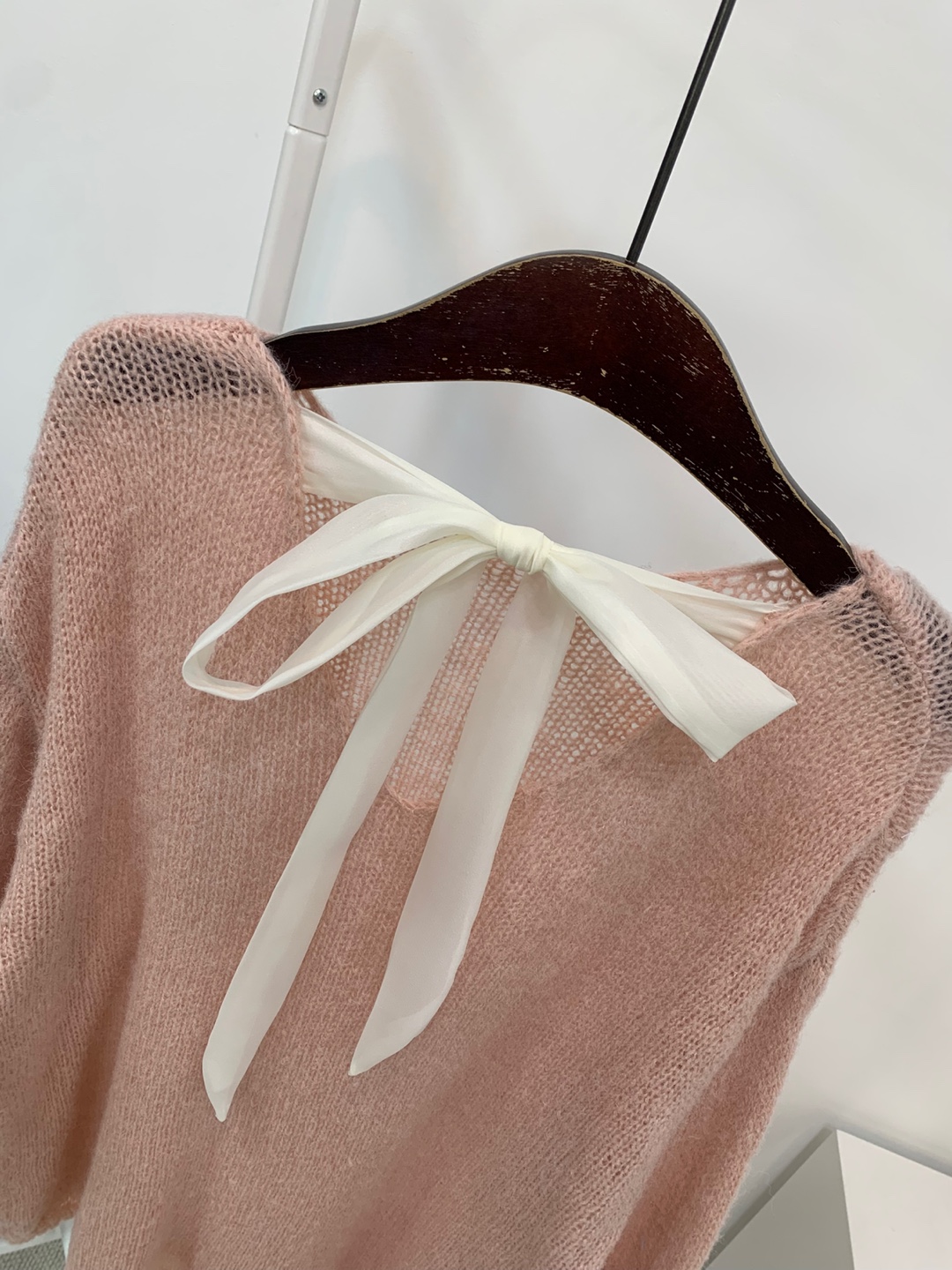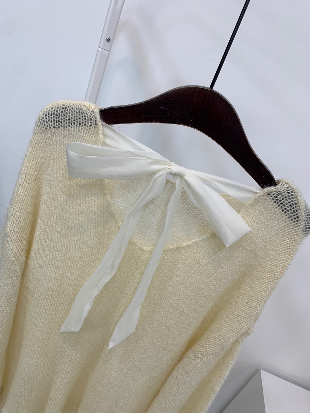 와이드 넥 라인에 촘촘한 그물 패턴의