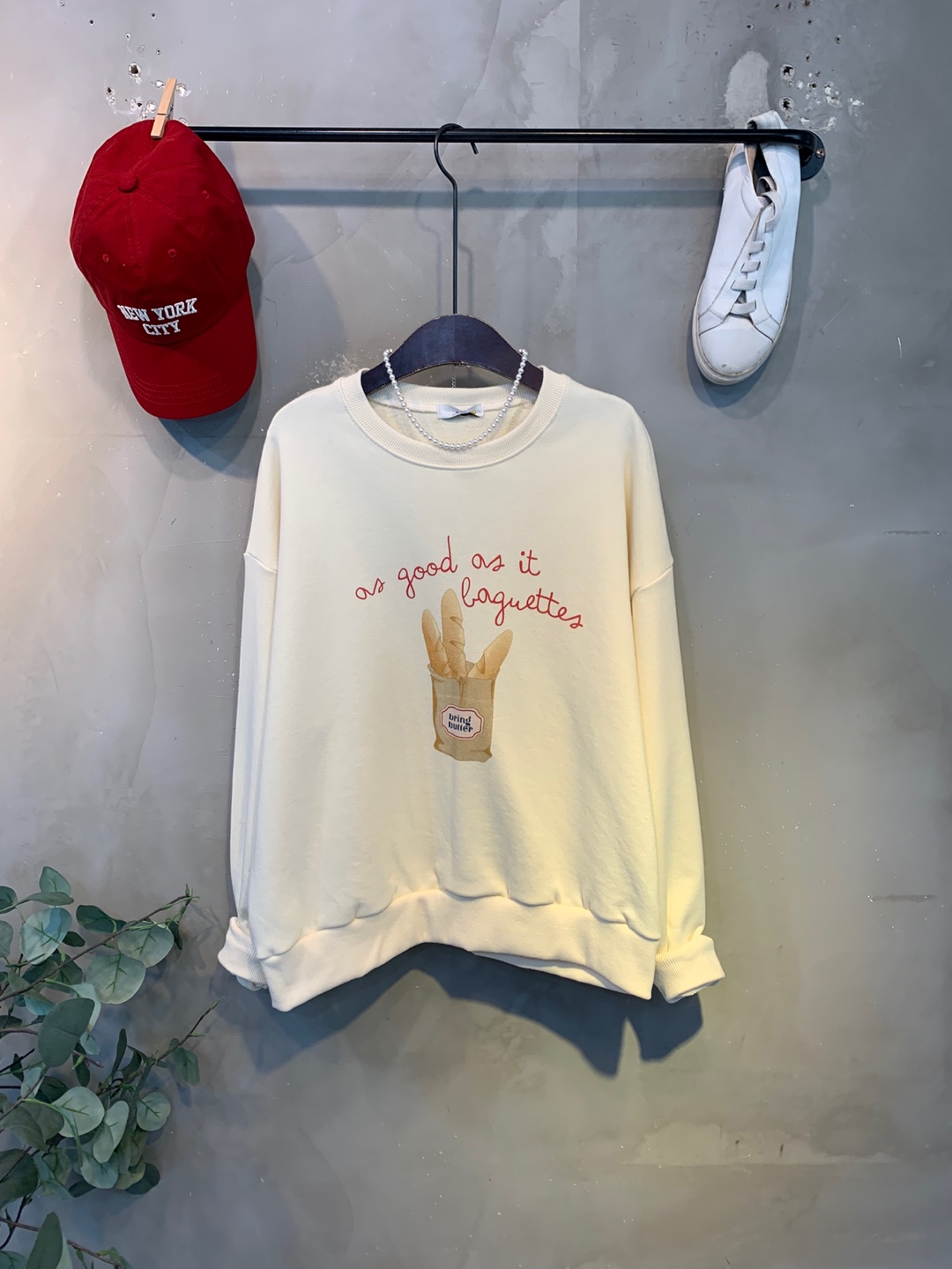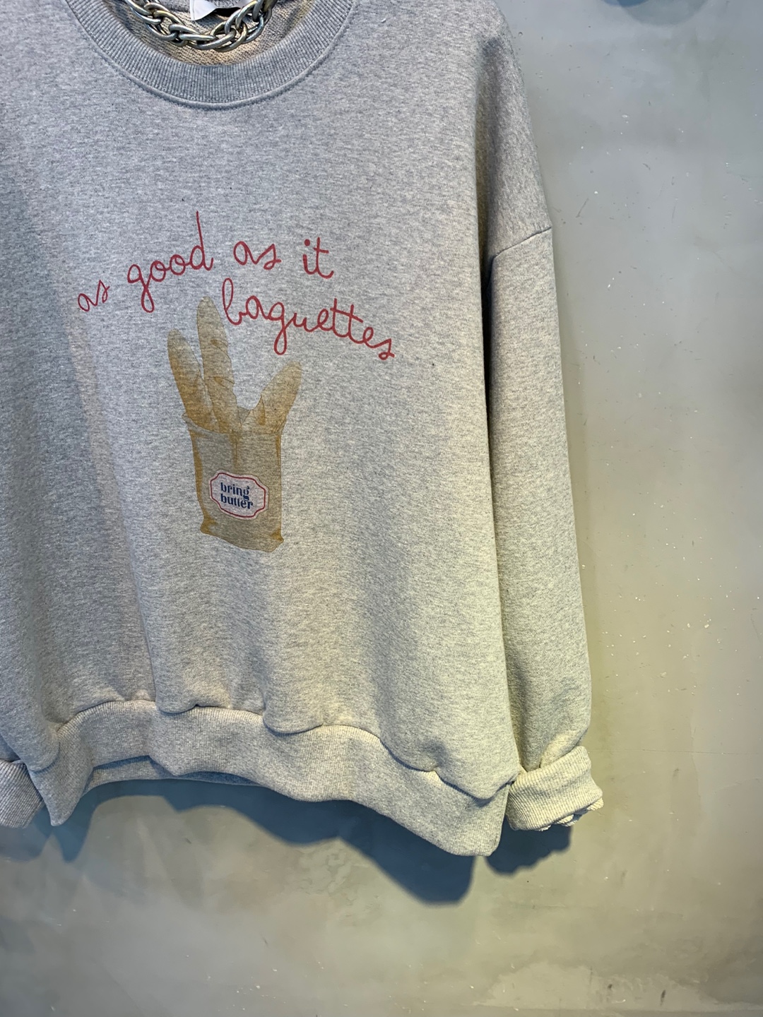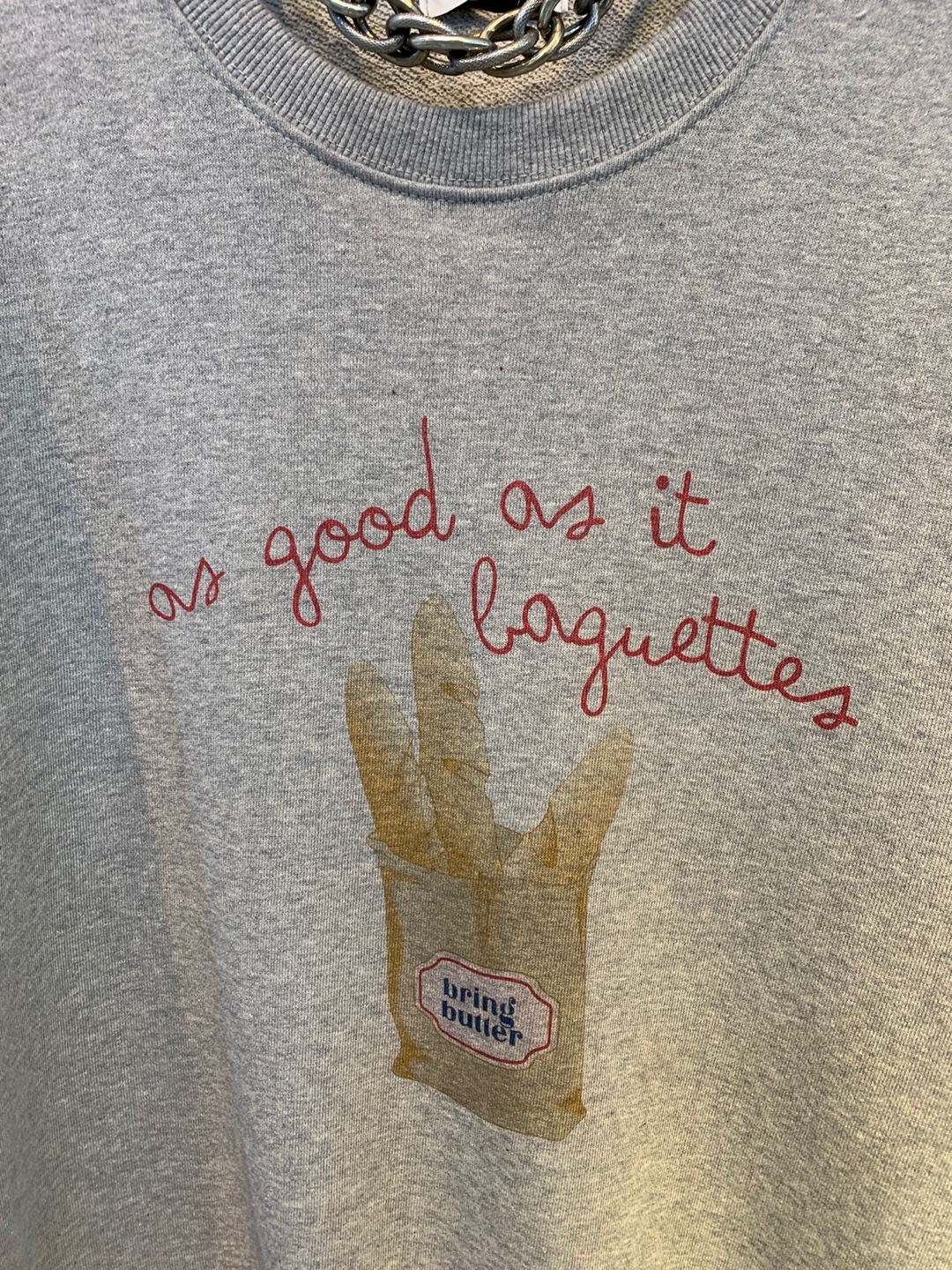 정면에 바게트빵 프린팅으로