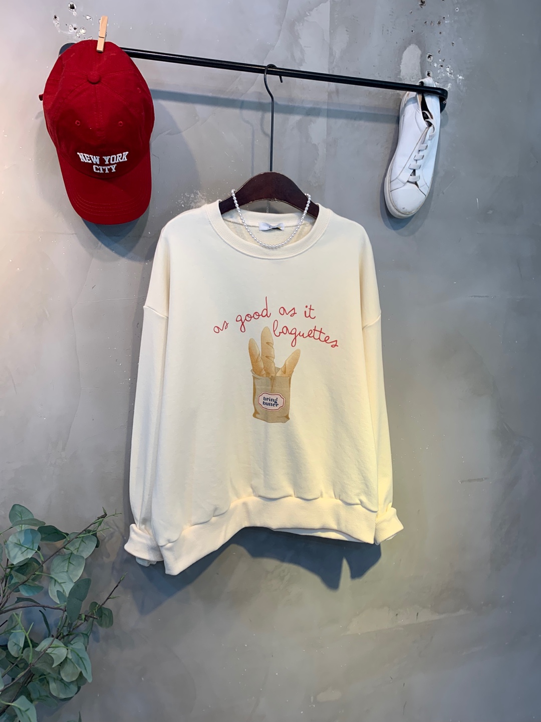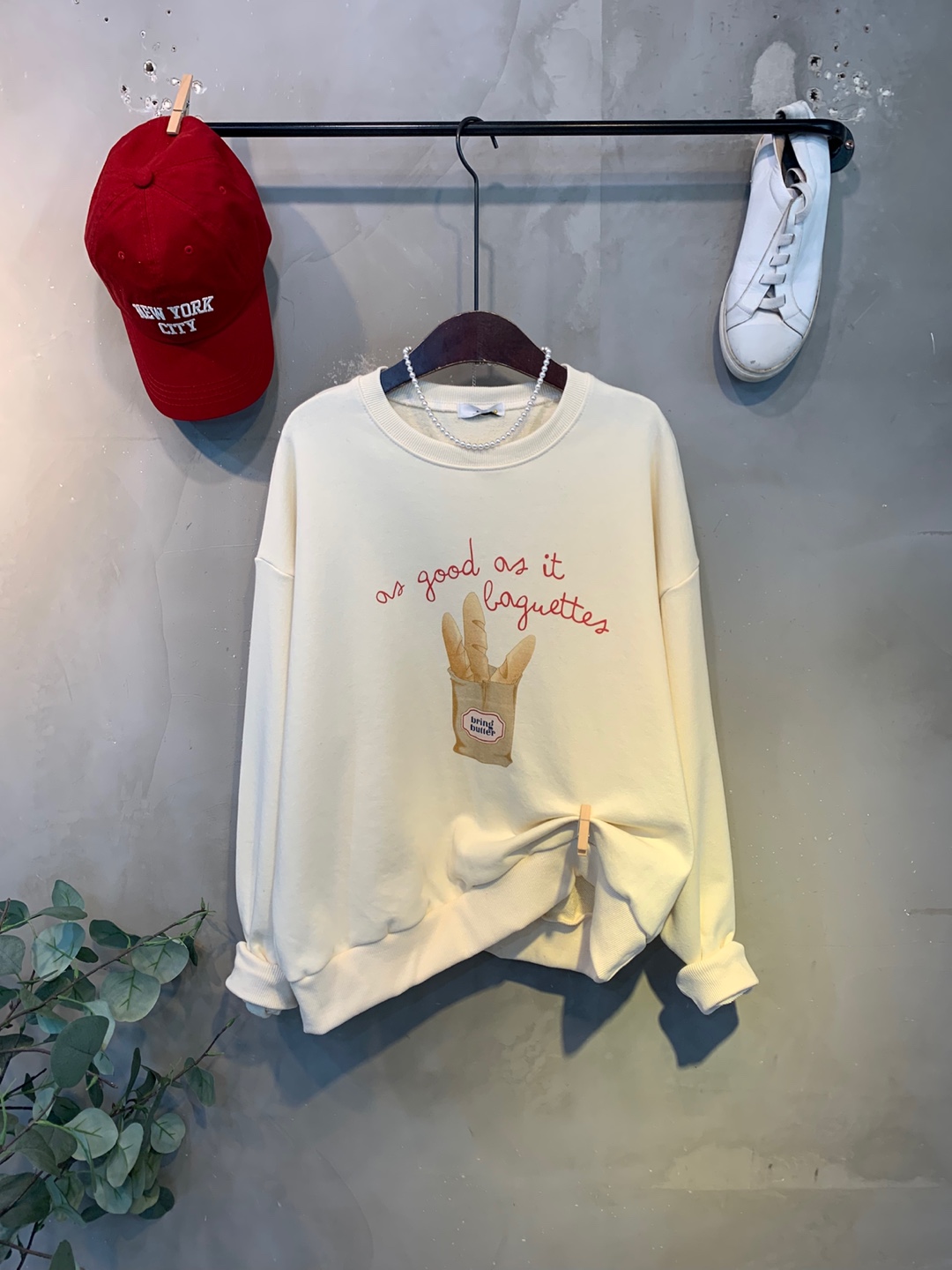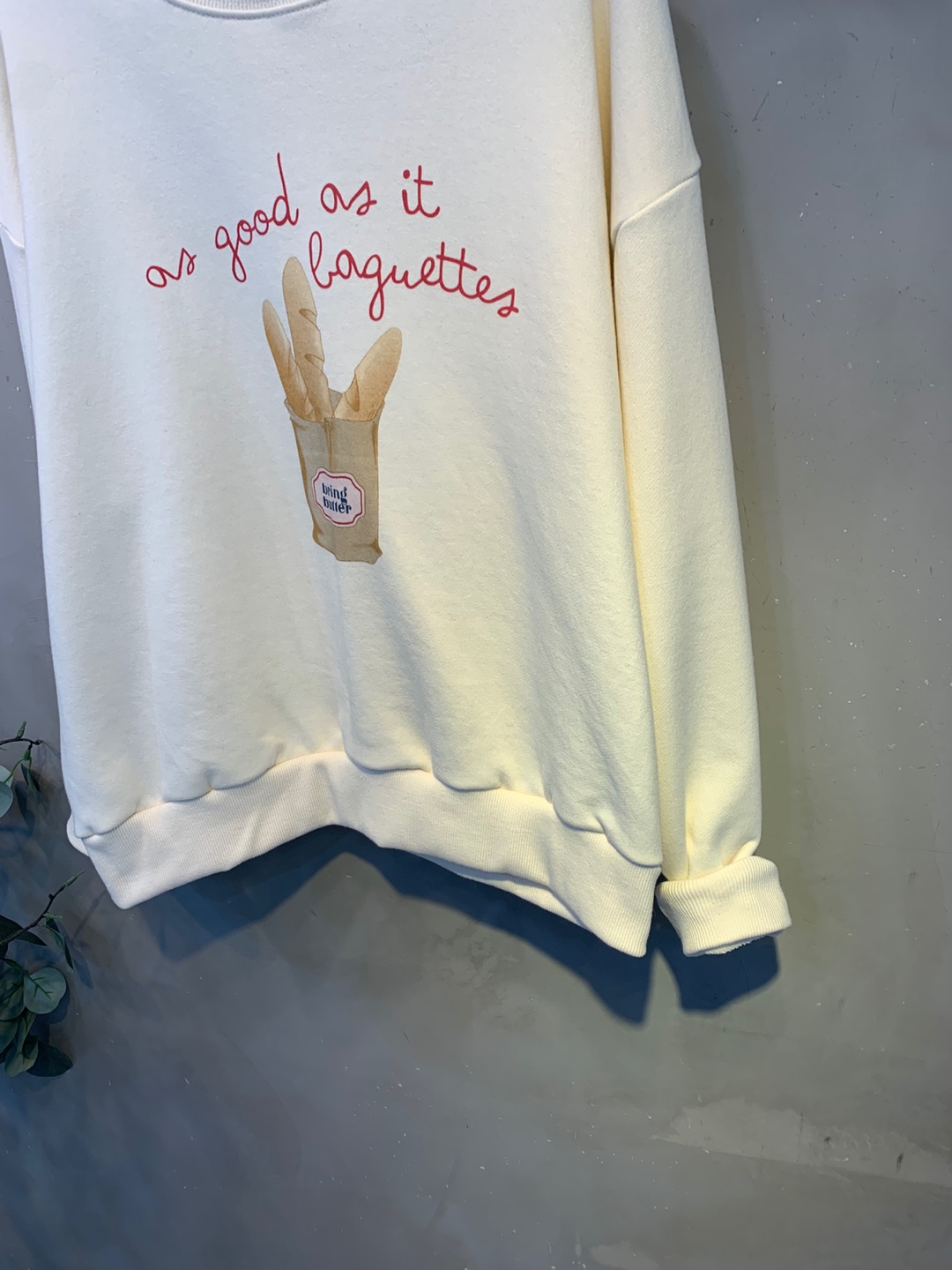 정면에 바게트빵 프린팅으로
