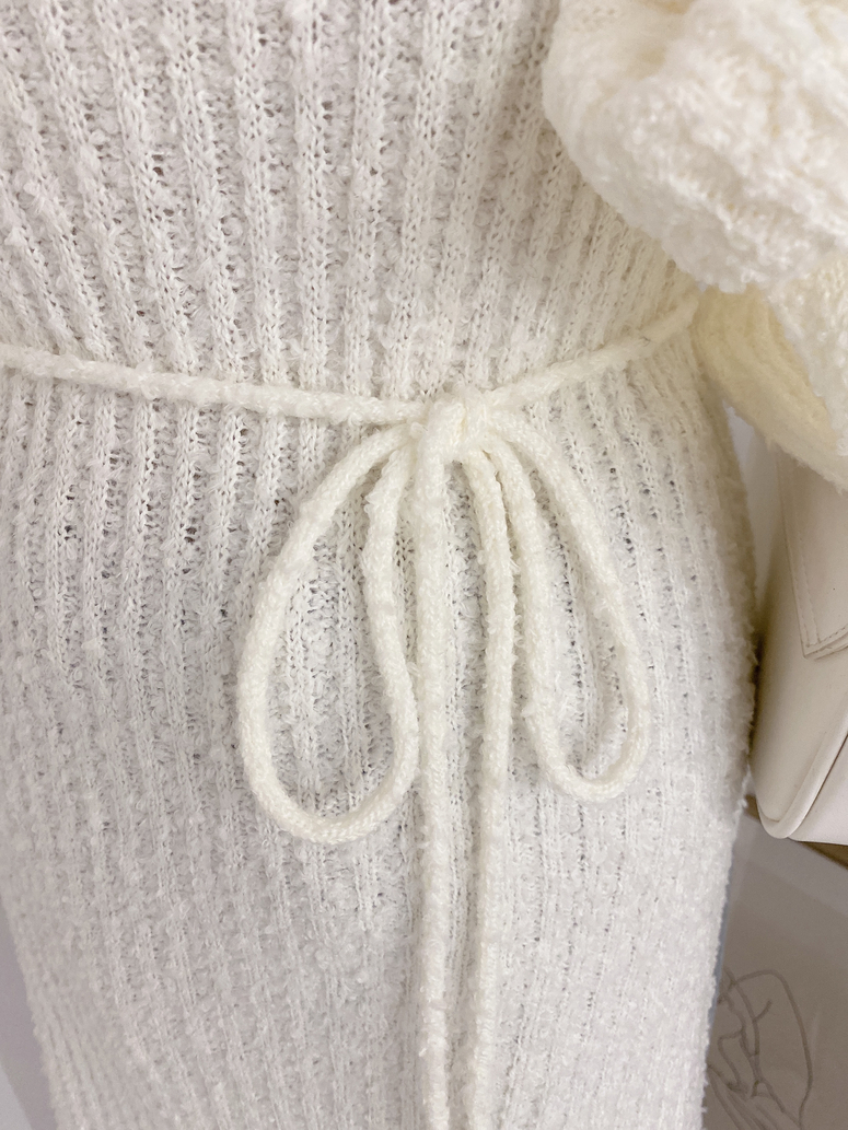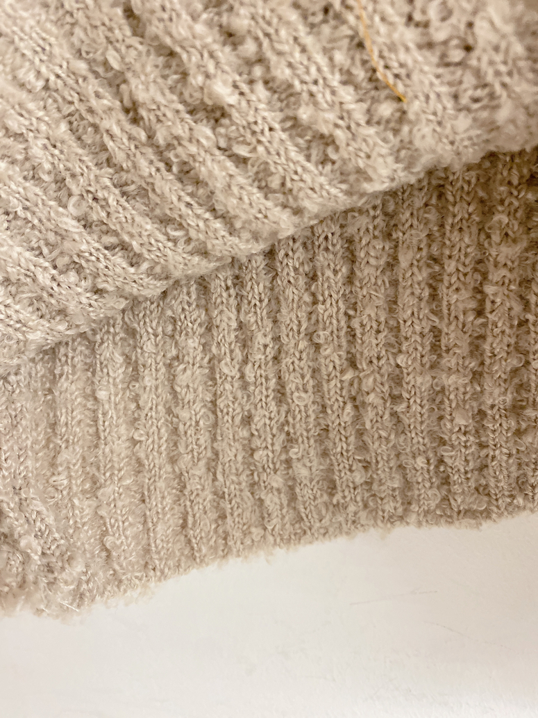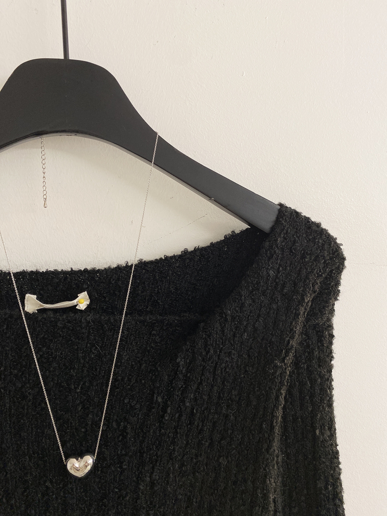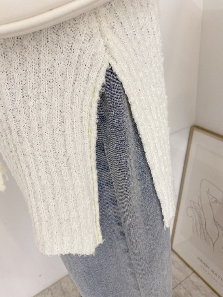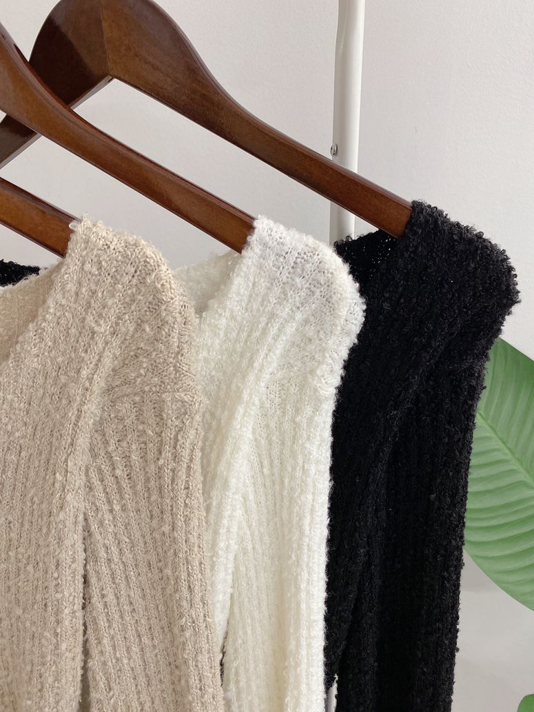 몽글몽글한 부클 소재가 포인트가 되어주는 니트에요