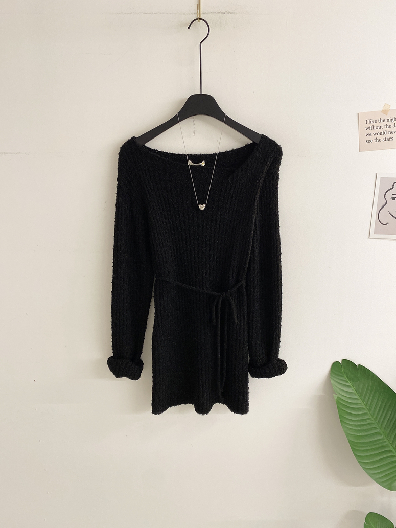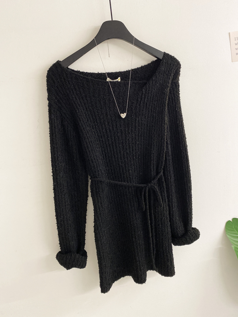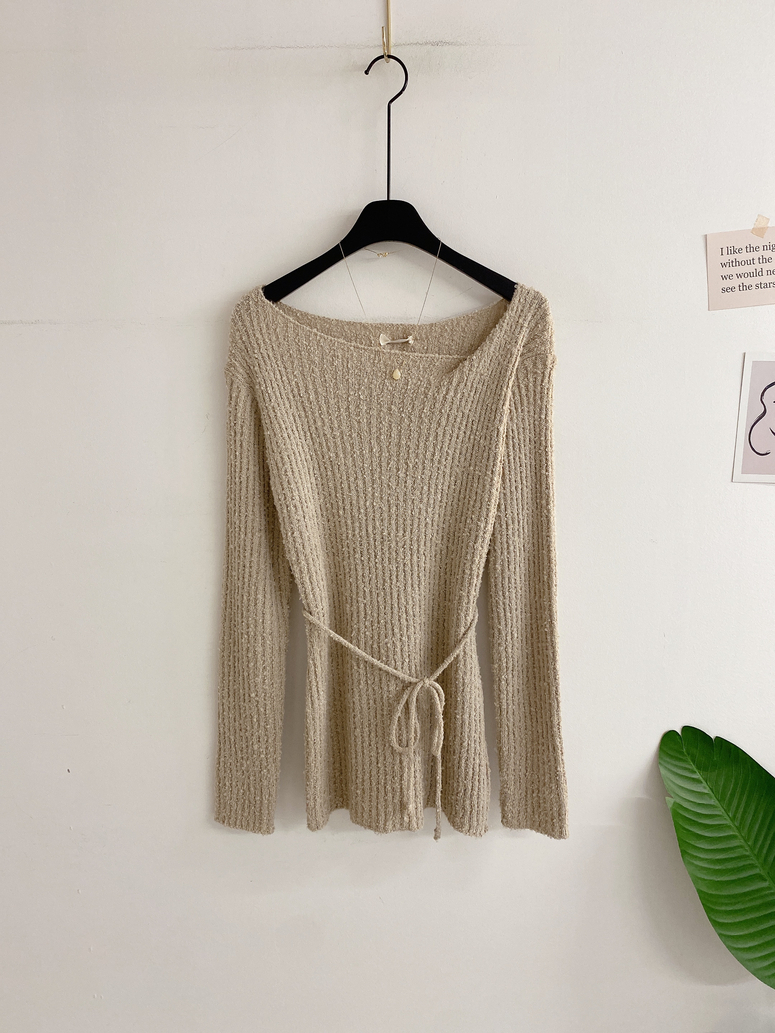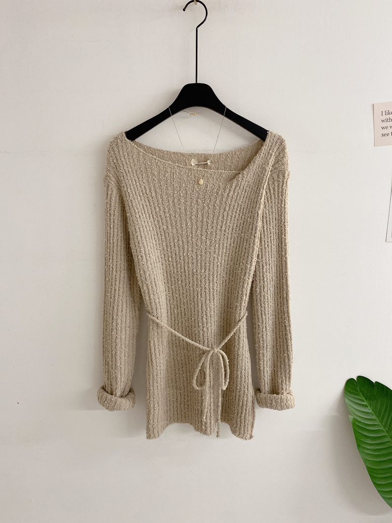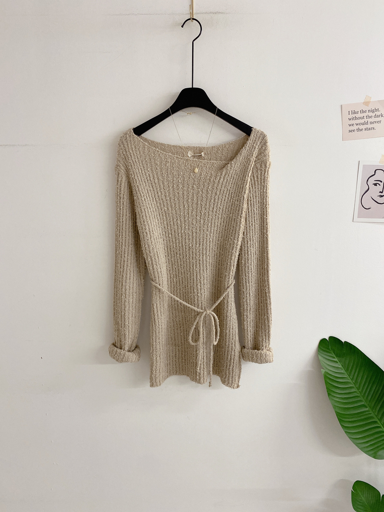 은은하게 쇄골이 보이는 보트넥 디자인으로 여성스러운 무드를 선사하며