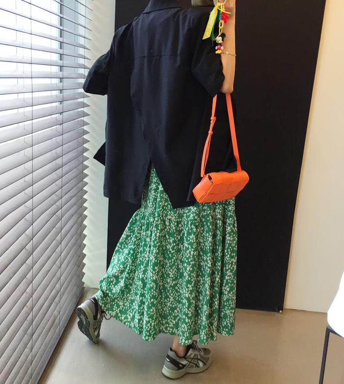 낙낙한 오버핏과 힙을 덮어주는 기장으로 자연스러운 체형커버를 도와주며