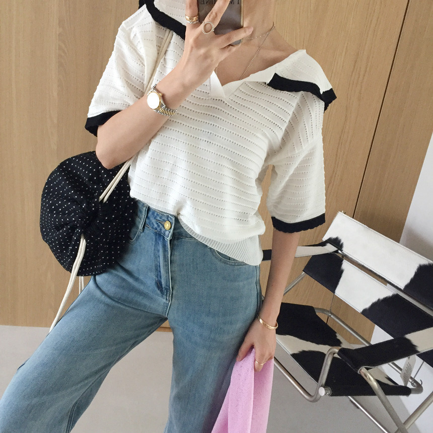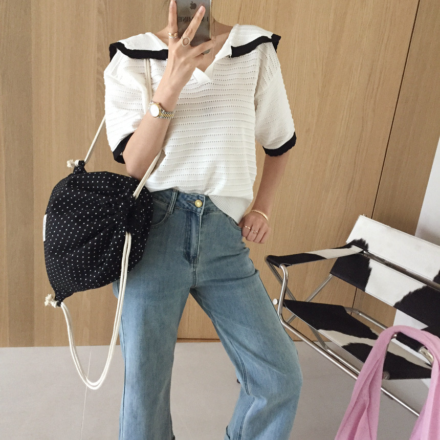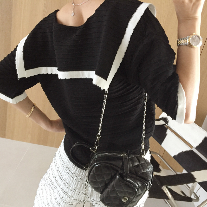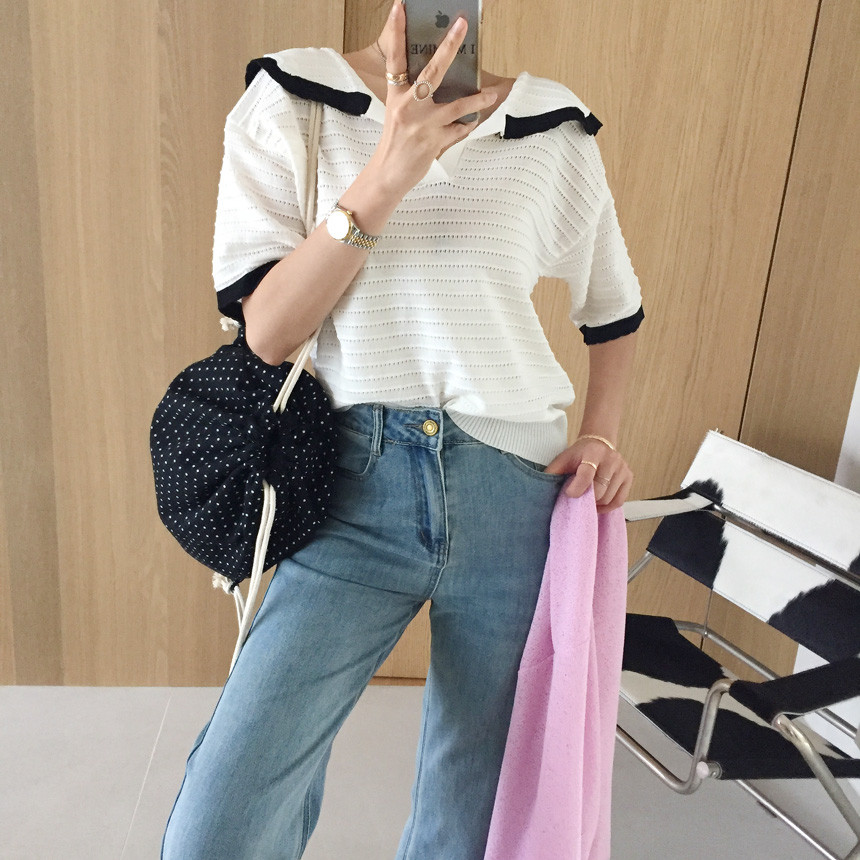 세일러 빅카라 배색 펀칭니트 보여드릴게용!
