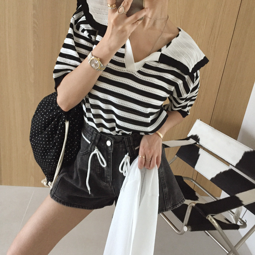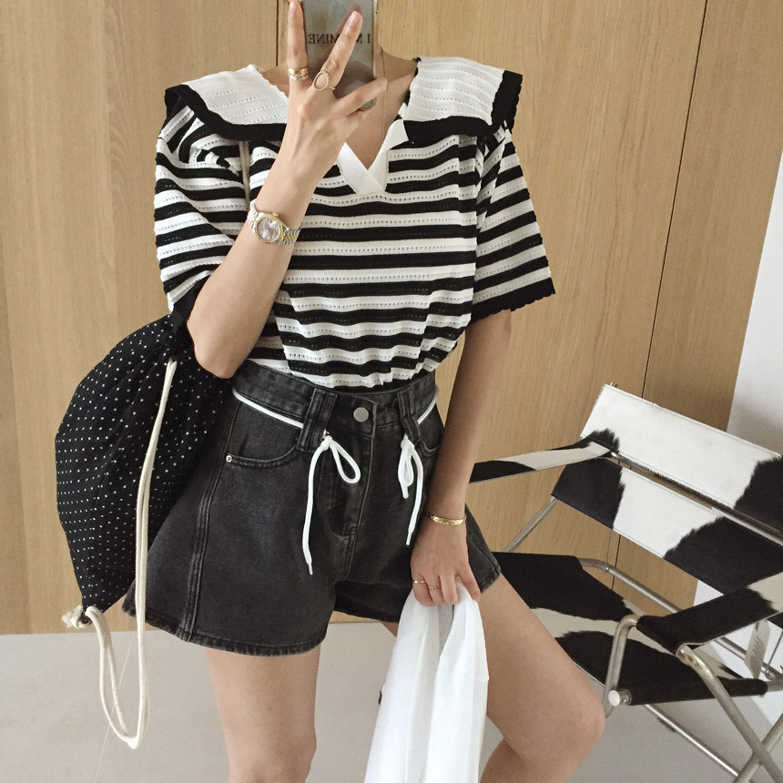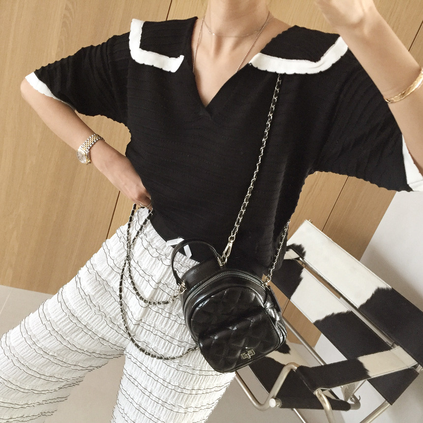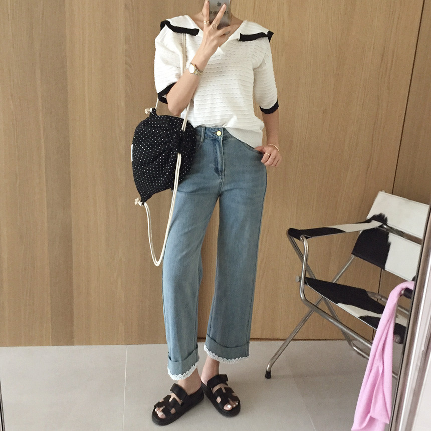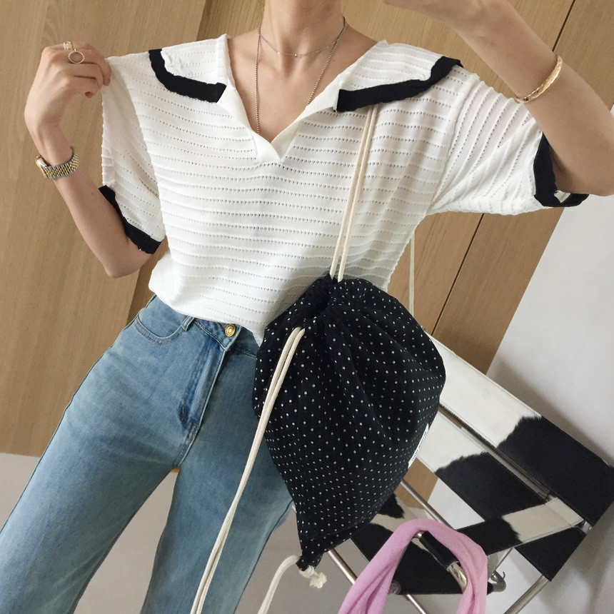세일러 빅카라 배색 펀칭니트 보여드릴게용!