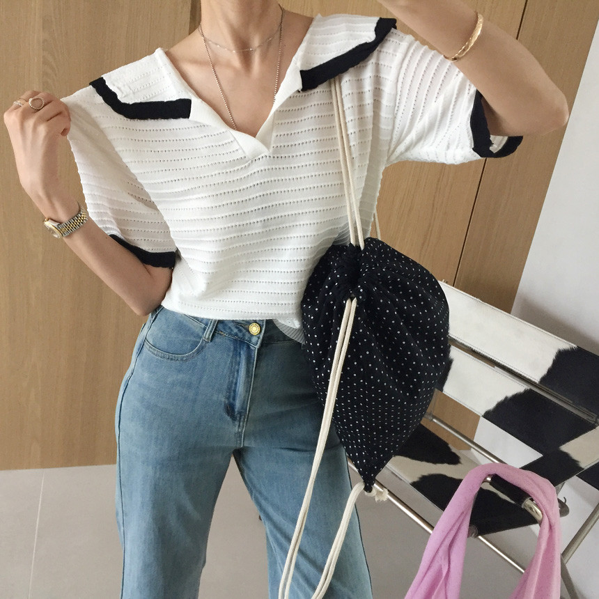 배색 카라가 발랄하면서 캐주얼한 무드를 연출해주어용