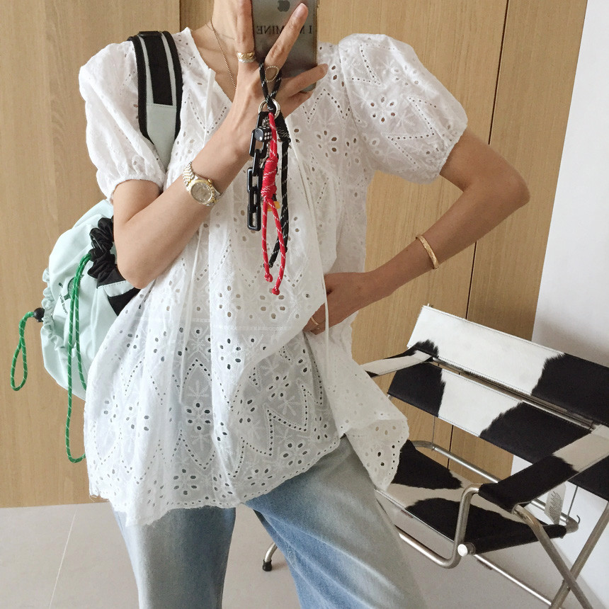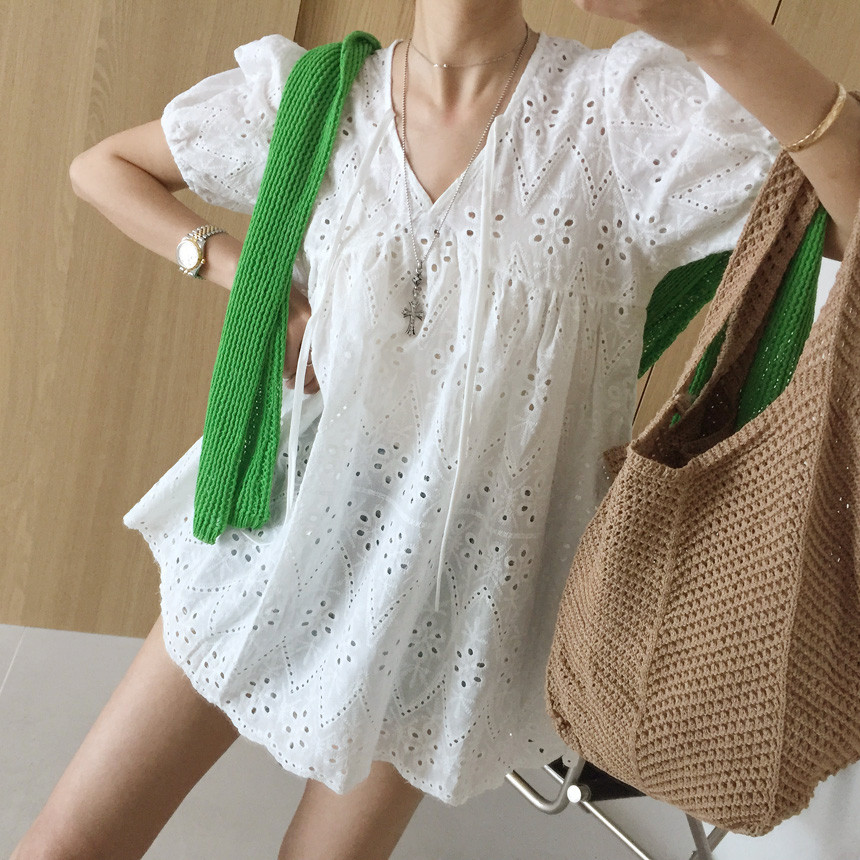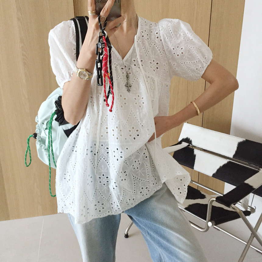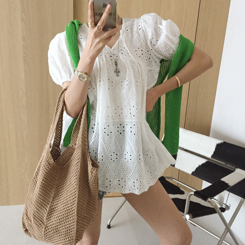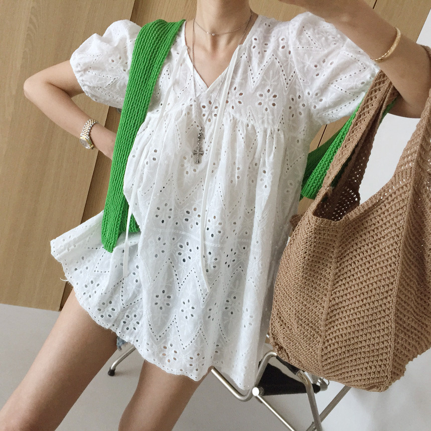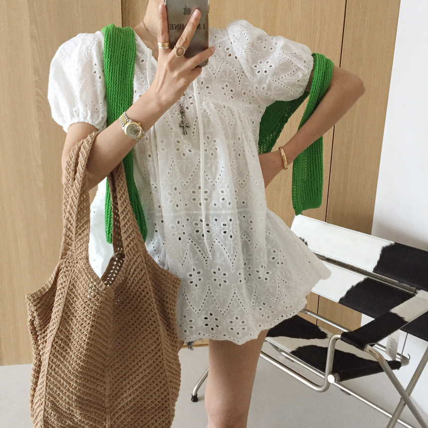 빈티지한 펀칭이 매력적인 원피스 겸 블라우스 연출가능한 제품이에요~!