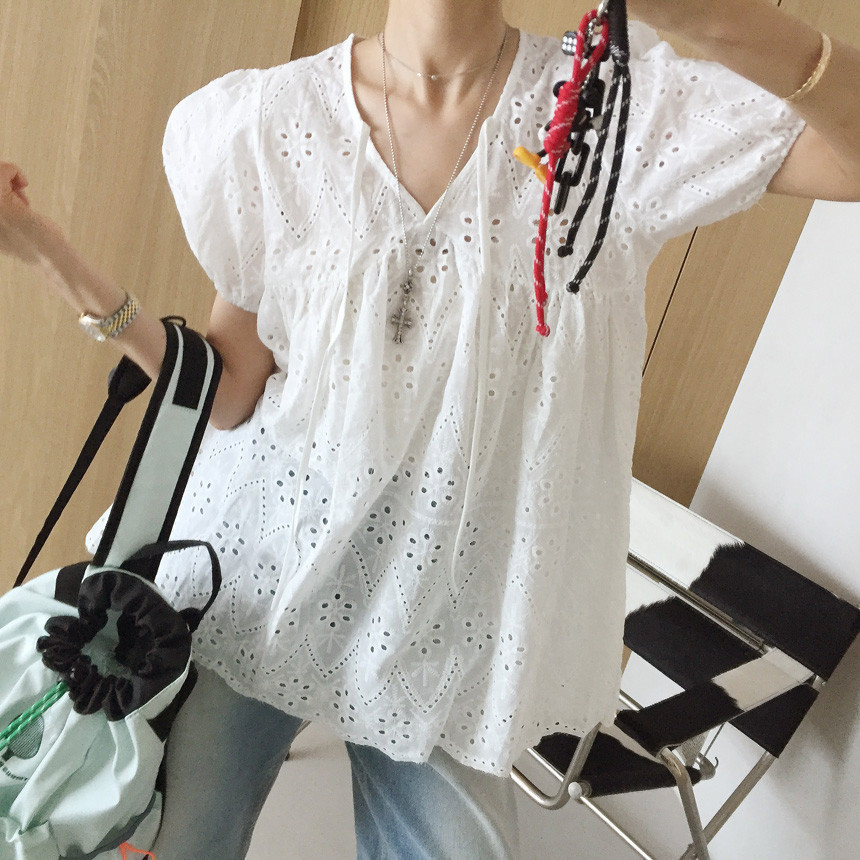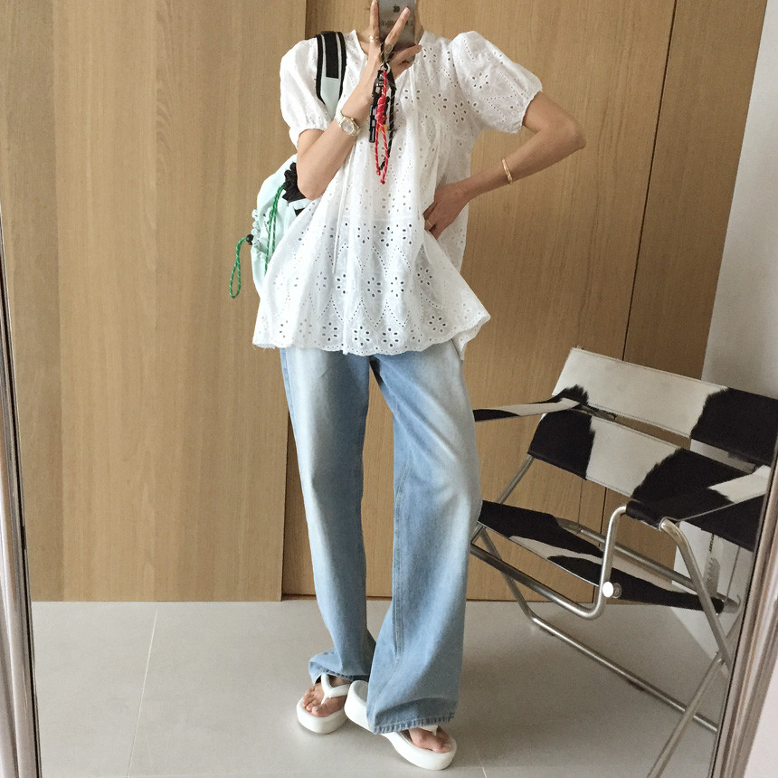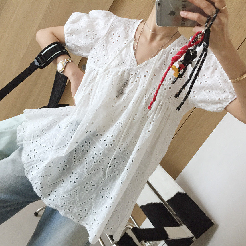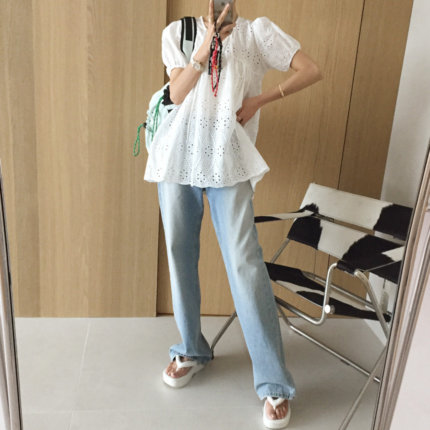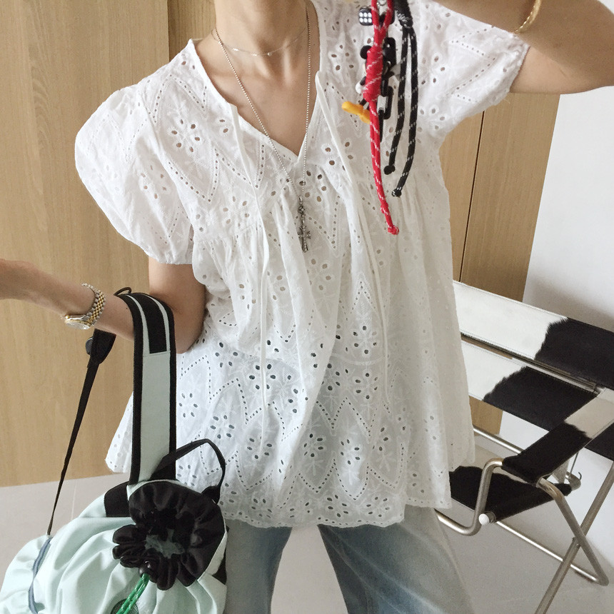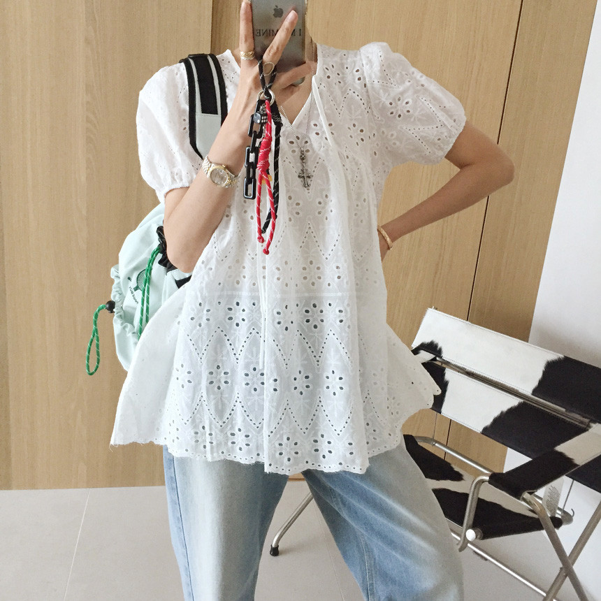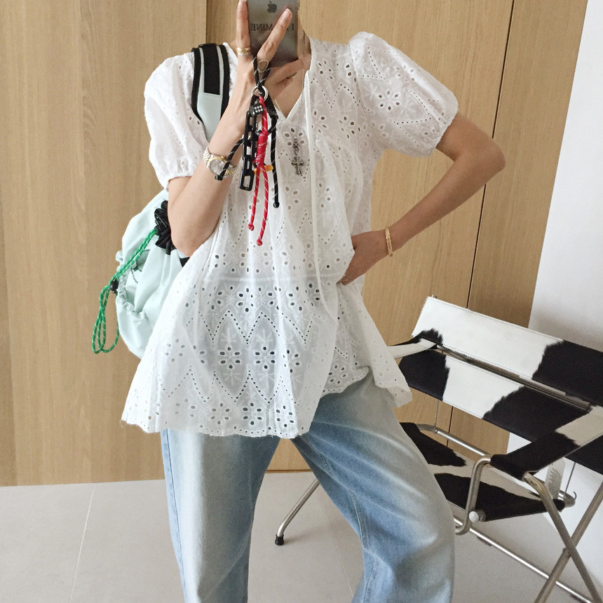 빈티지한 펀칭이 매력적인 원피스 겸 블라우스 연출가능한 제품이에요~!