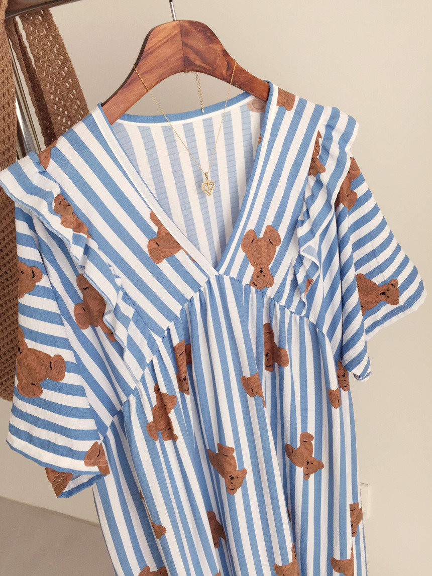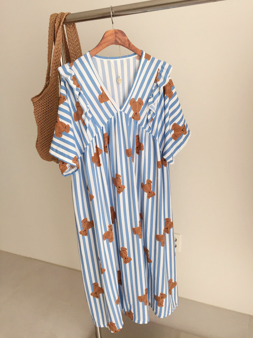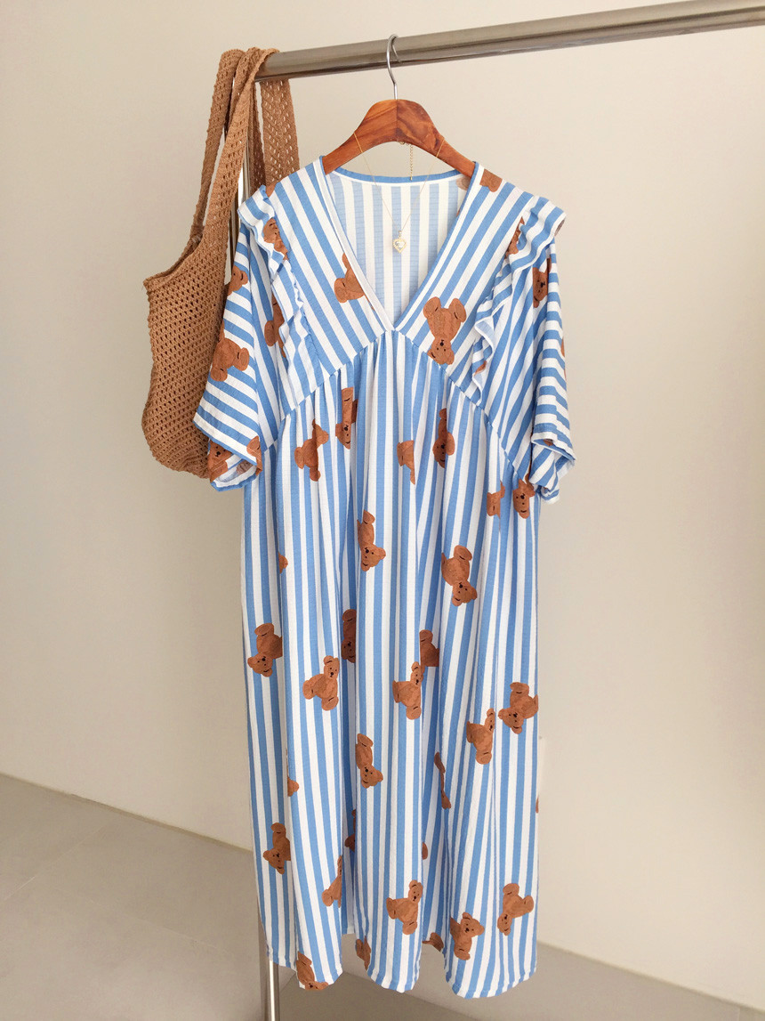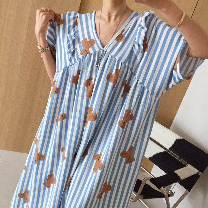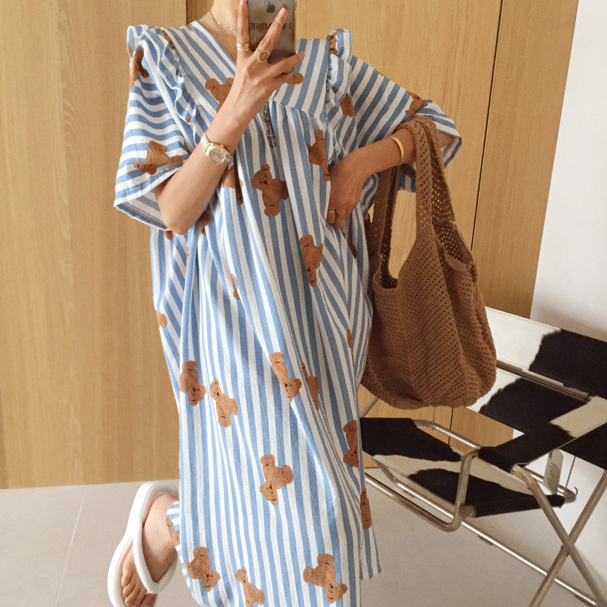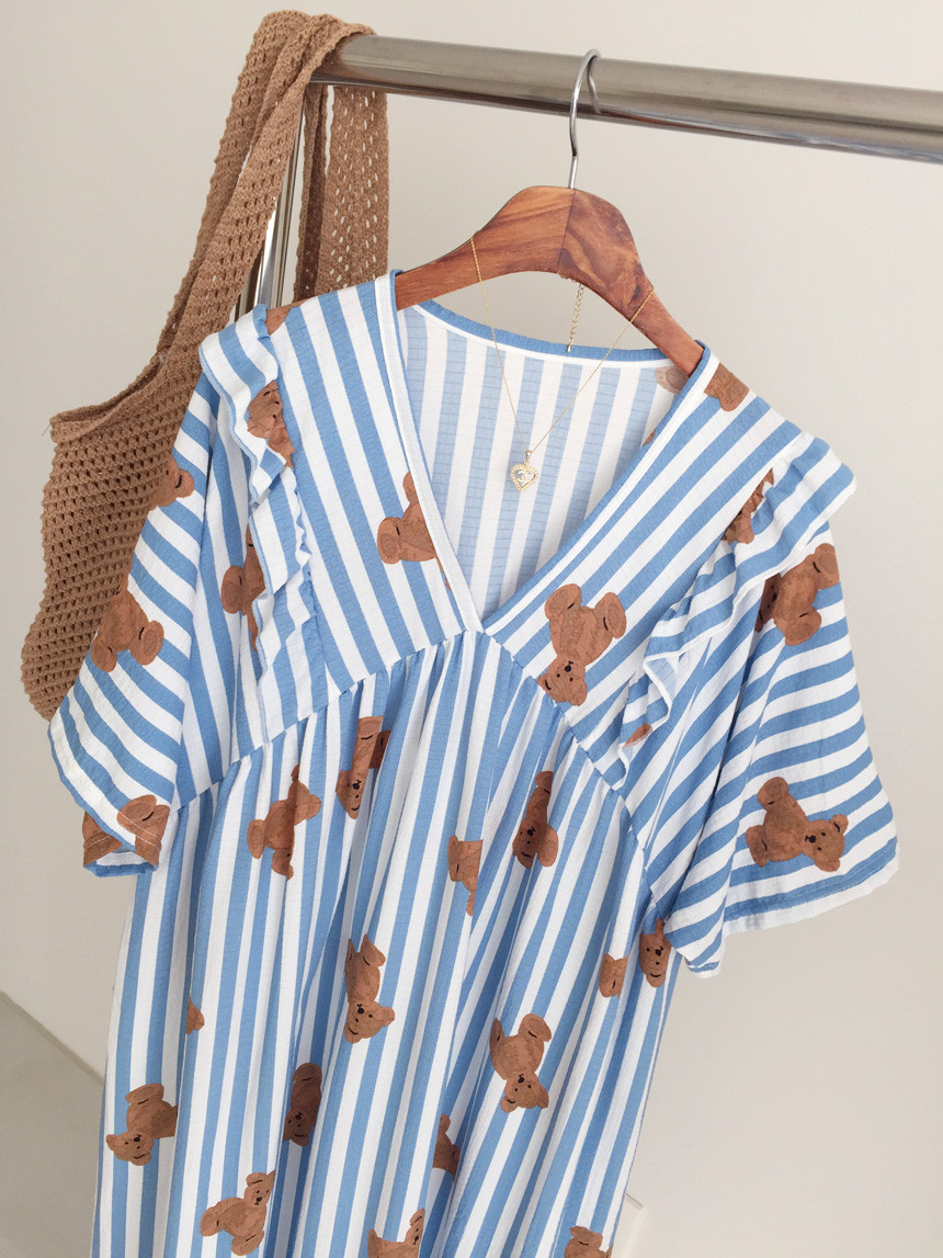 곰돌이 프린팅 프릴 루즈핏 롱 홈웨어 원피스 보여드릴게용!