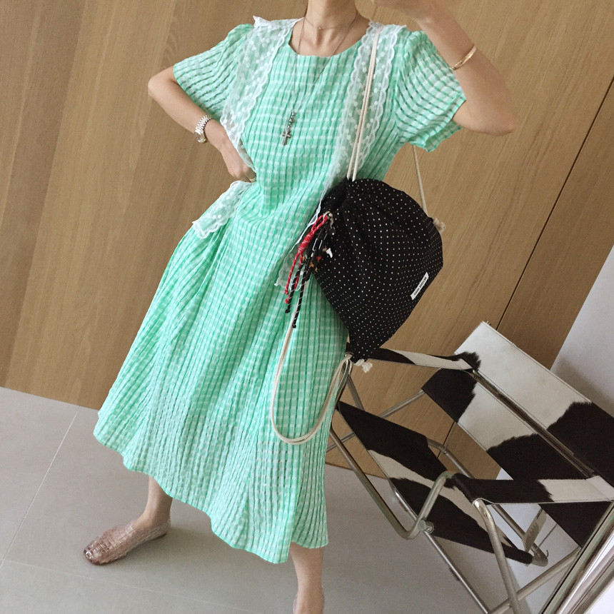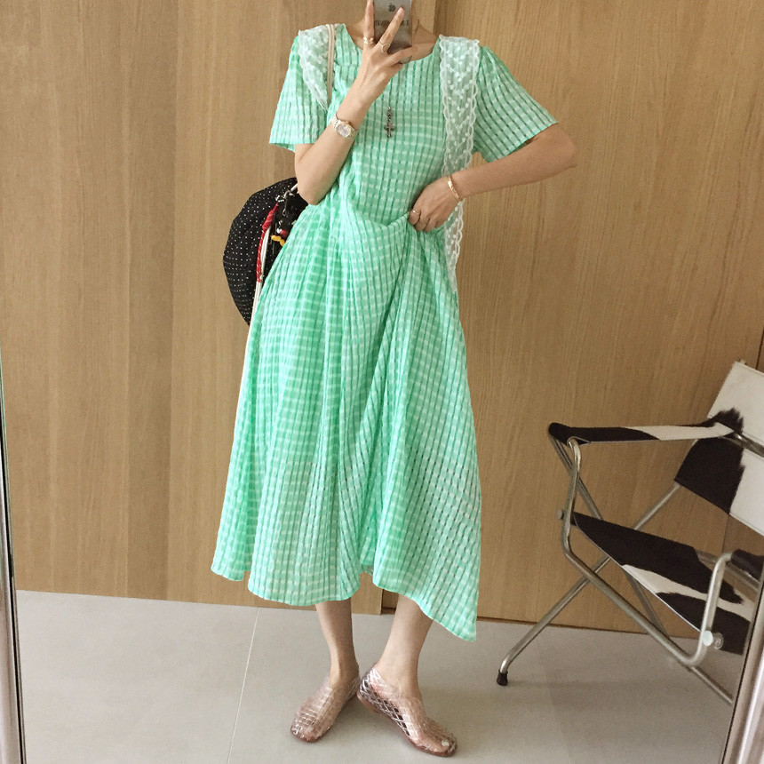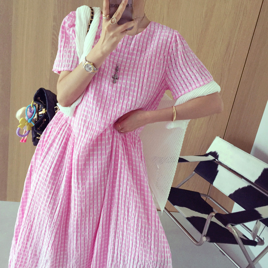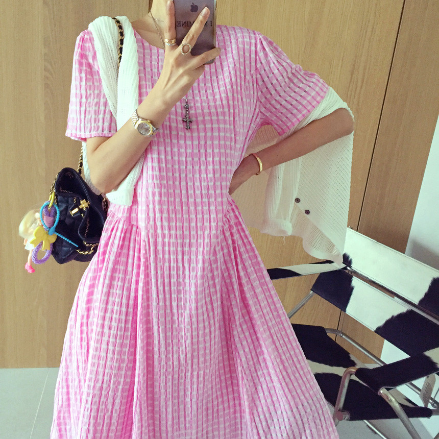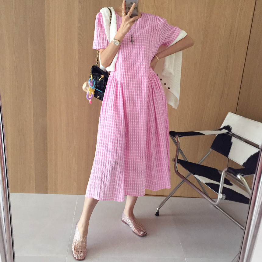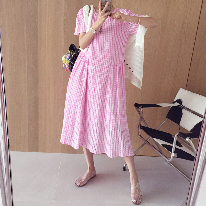 라운드 체크 지지미 롱 원피스 소개해드릴께요 :)