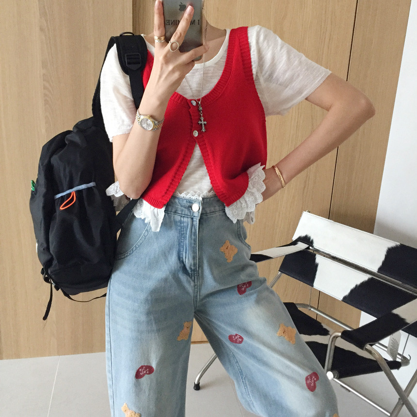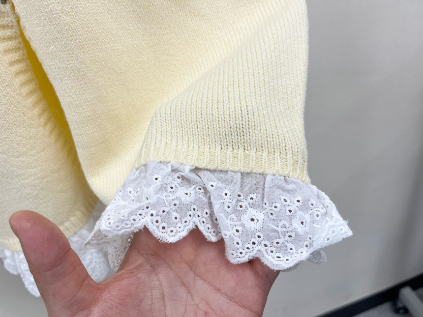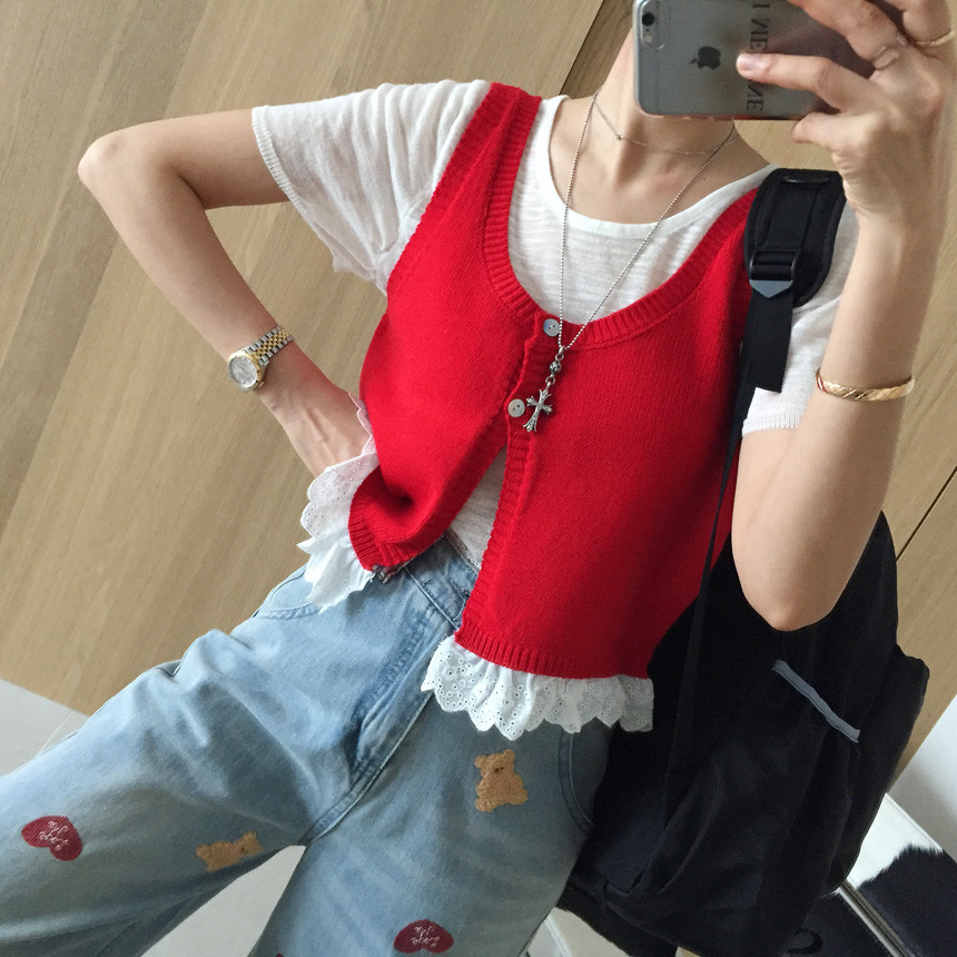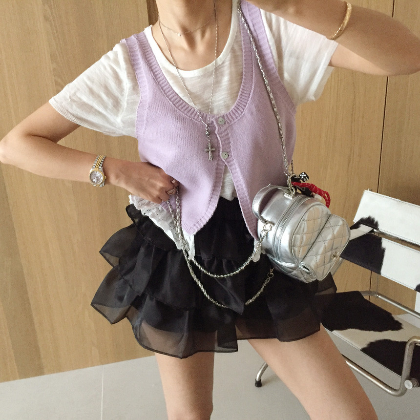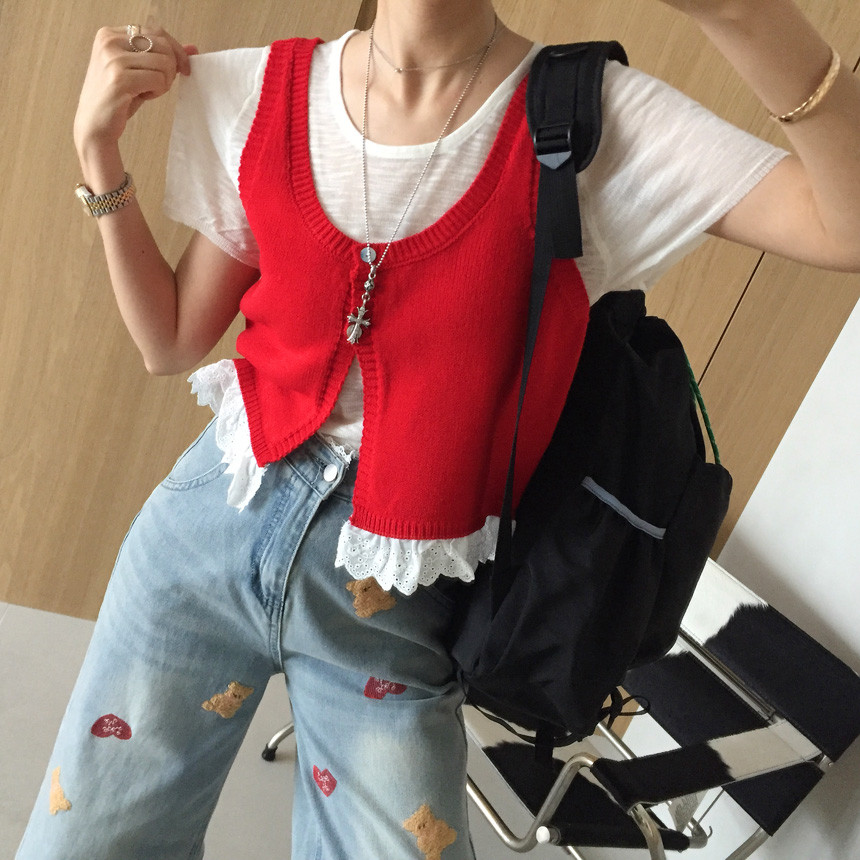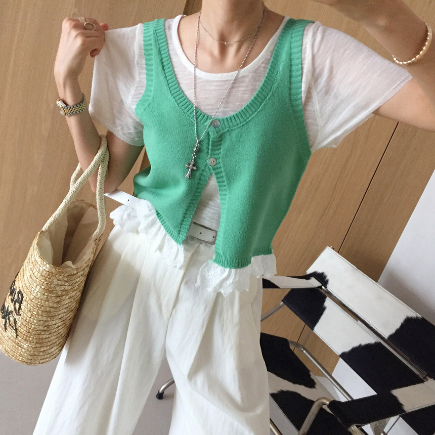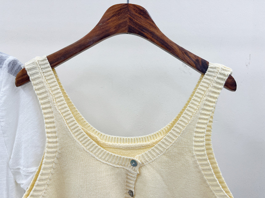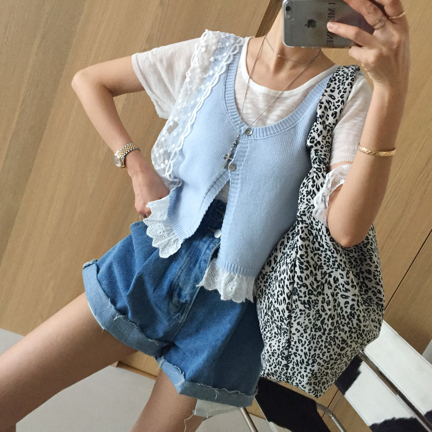 베스트는 크롭 기장에 밑단의 펀칭 레이스 포인트가 더해져