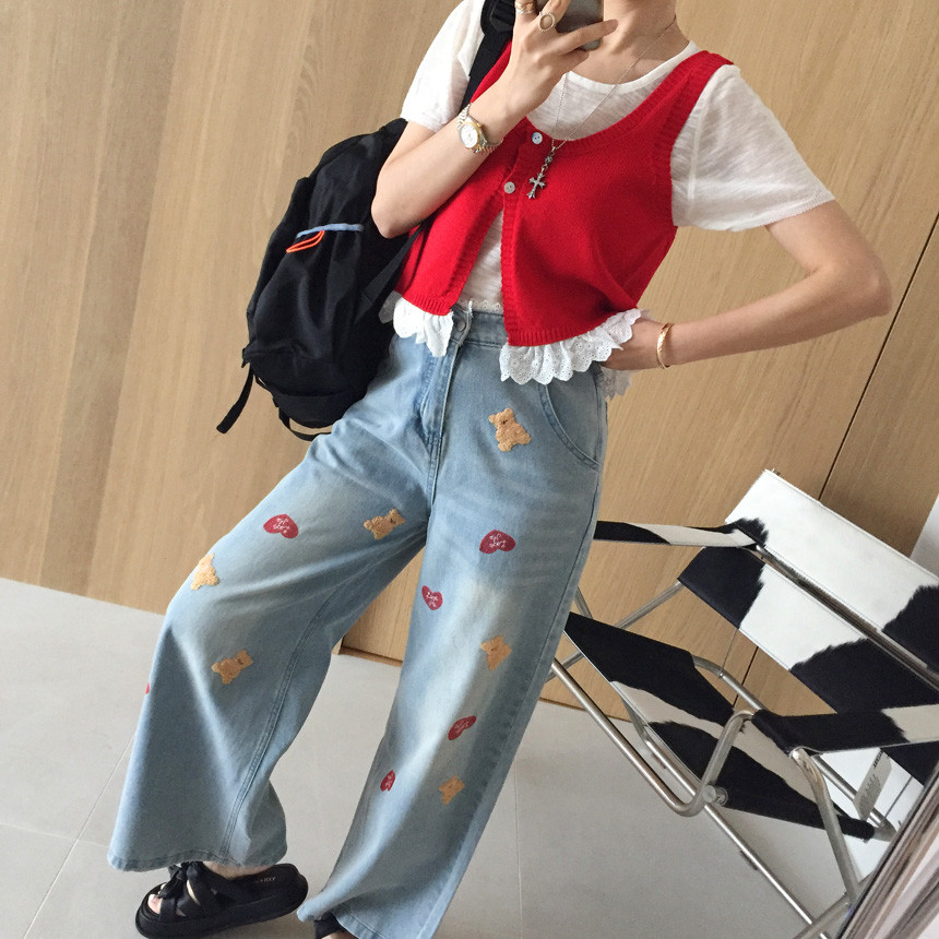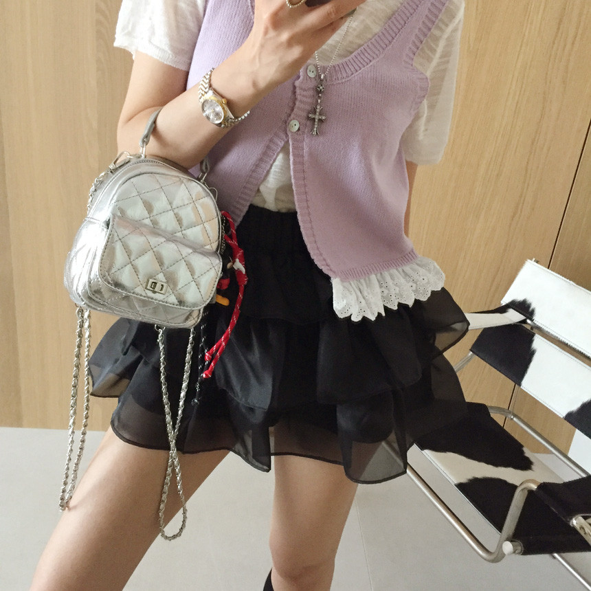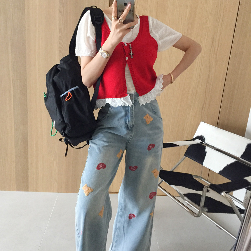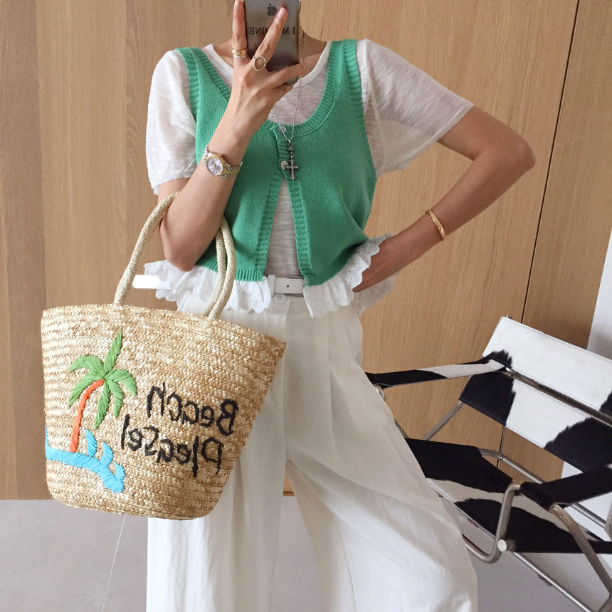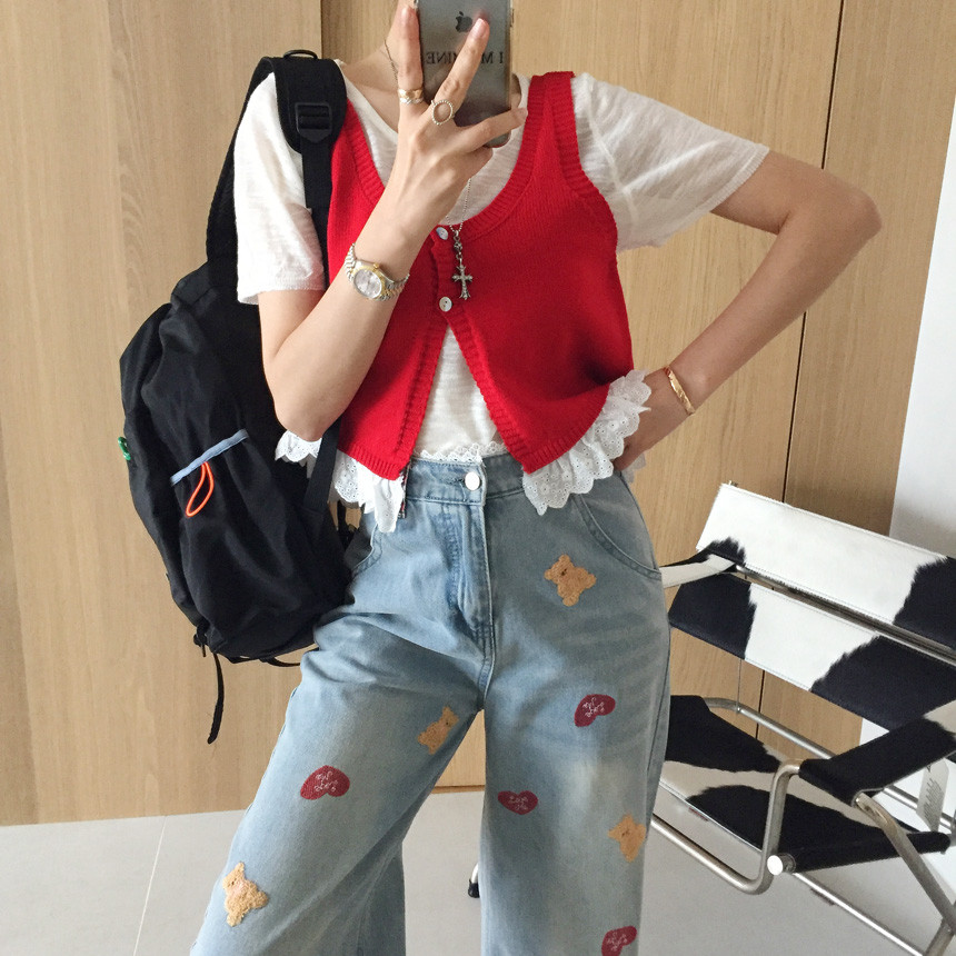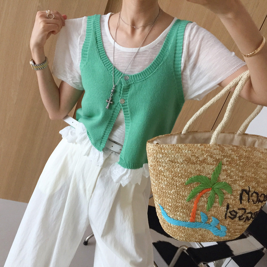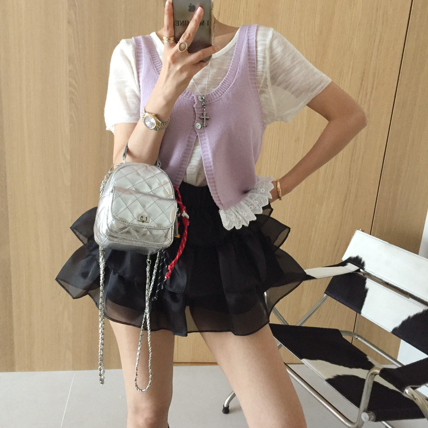 베스트는 크롭 기장에 밑단의 펀칭 레이스 포인트가 더해져