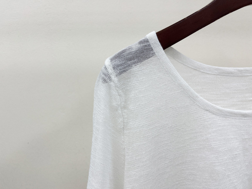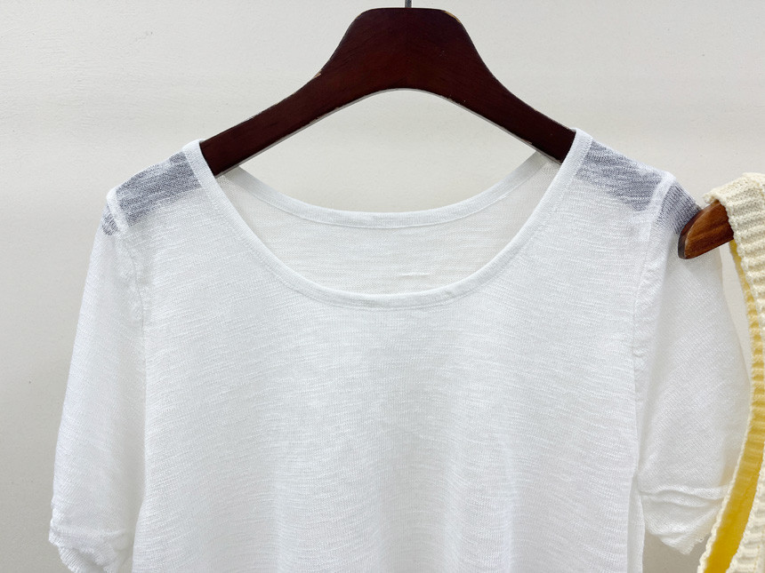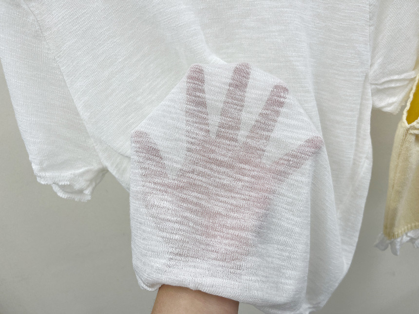 티셔츠는 실루엣이 비치는 시스루 타입으로