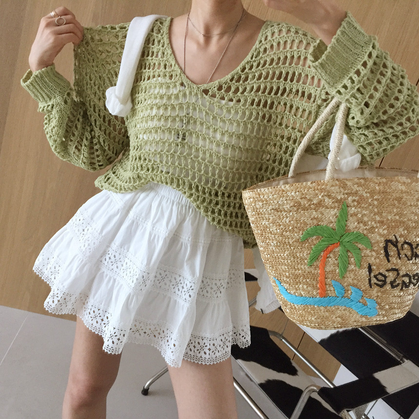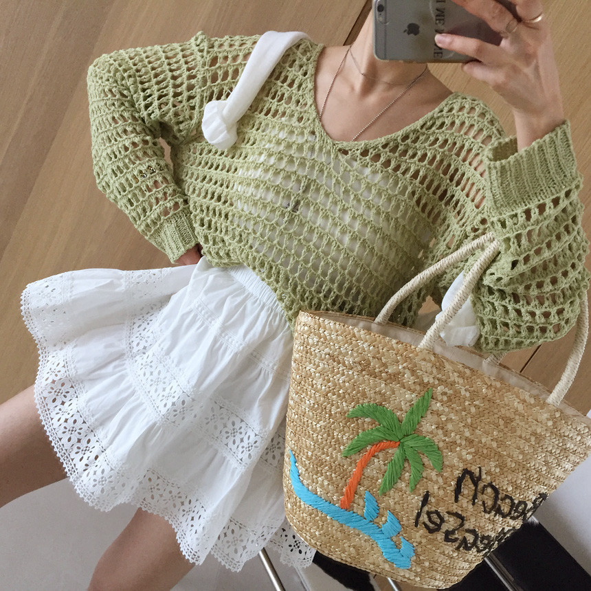 브이넥 코르셰 그물 여름니트 소개해드릴께요 :)