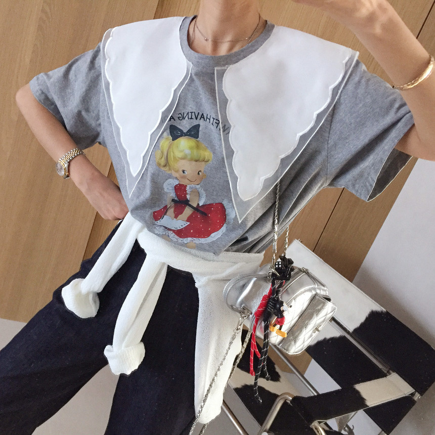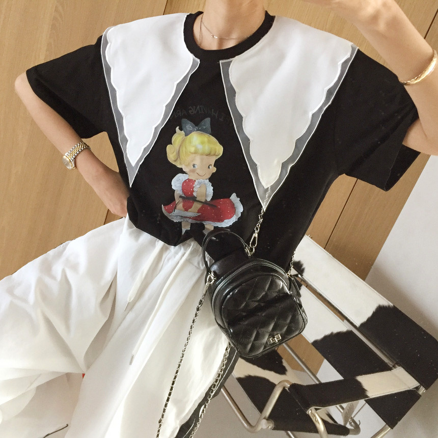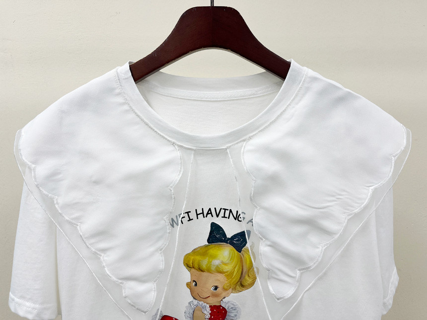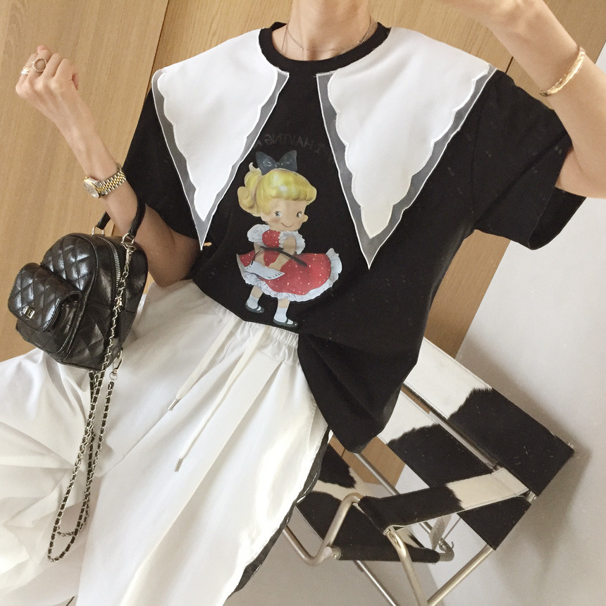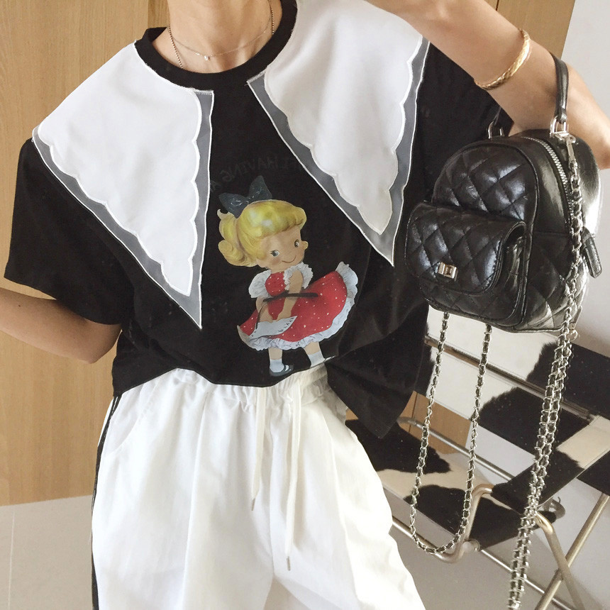 배색 물결 카라 프린팅 반팔티셔츠 보여드릴게용!
