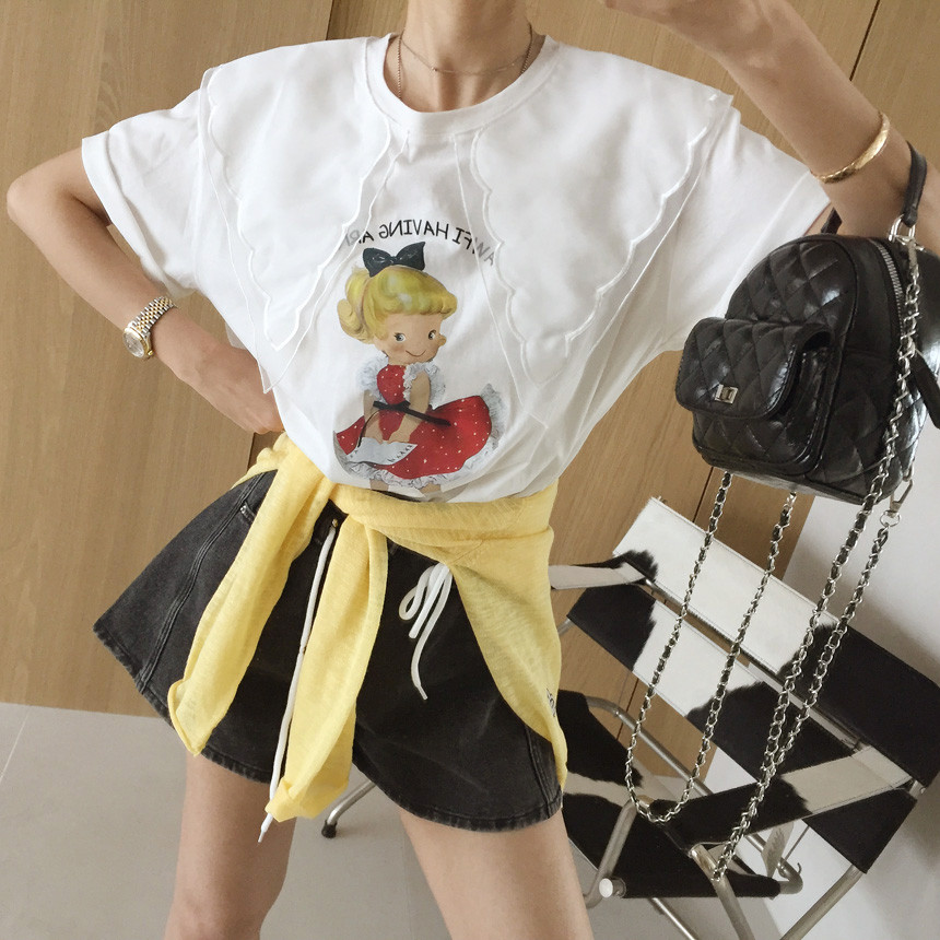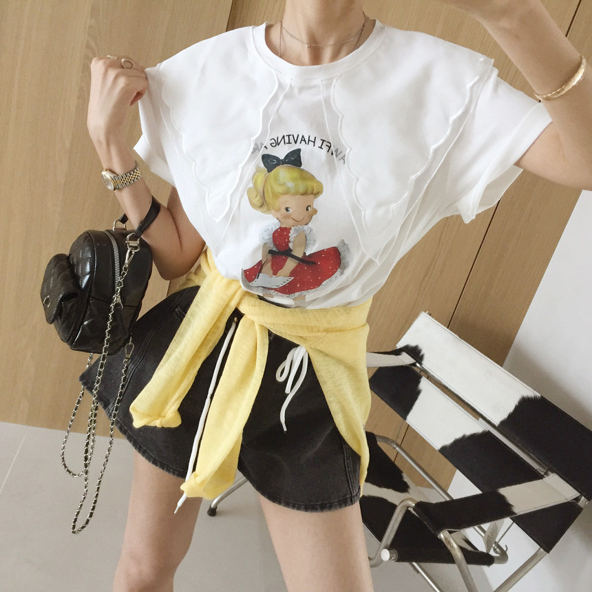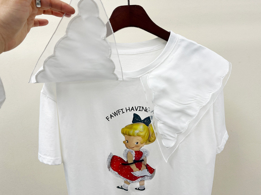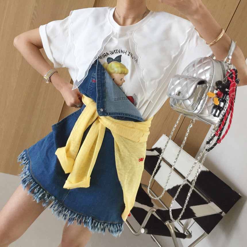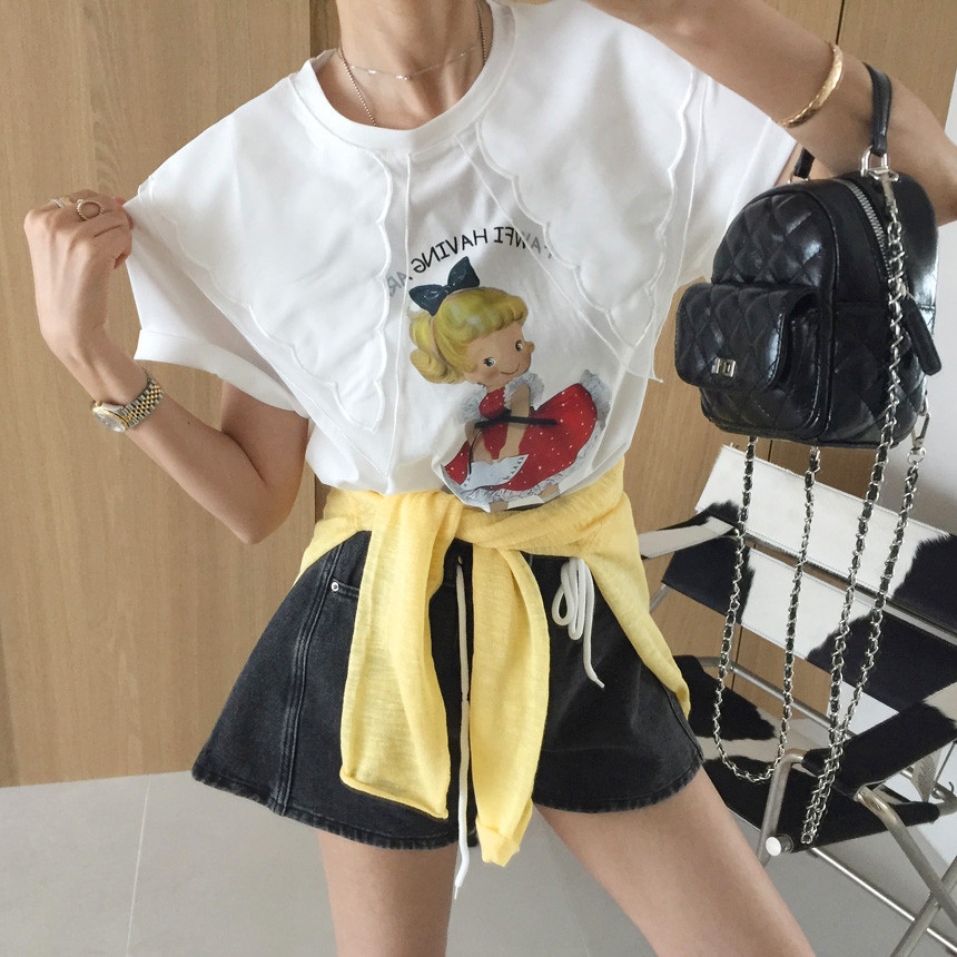 기본 티셔츠 하나만으로도 사랑스러운 포인트룩 연출 가능!