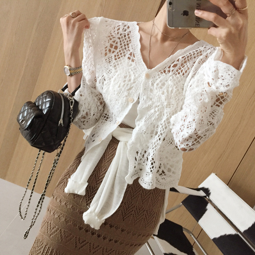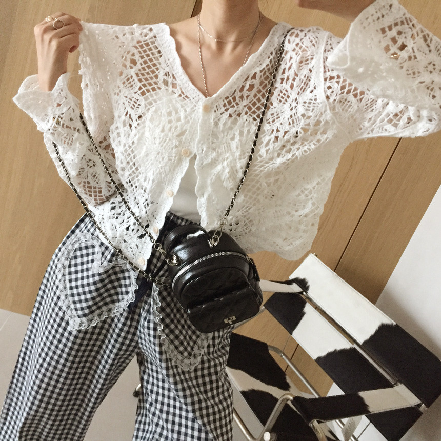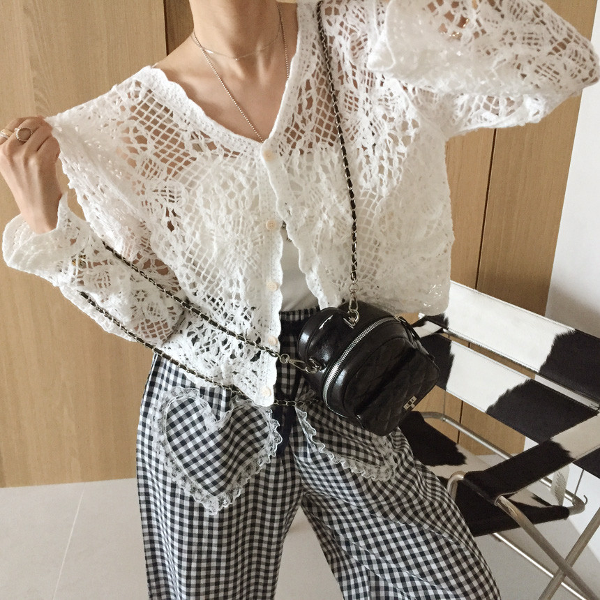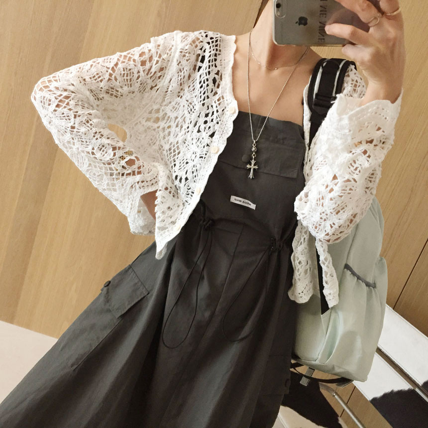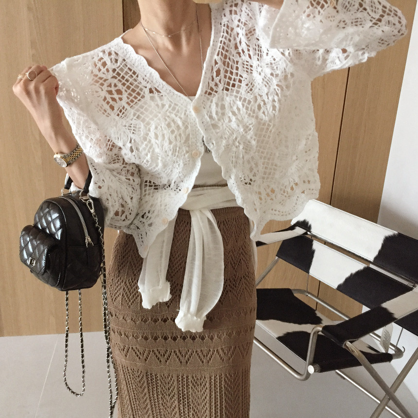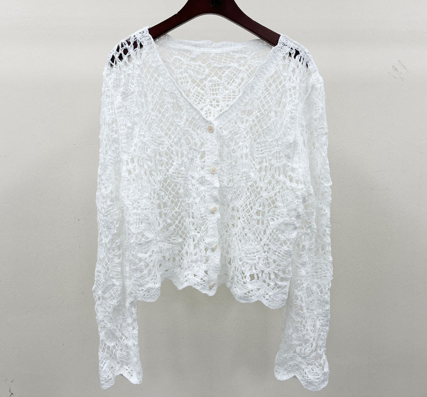 펀칭 뜨개 브이넥 세미크롭 니트가디건 보여드릴게용^^