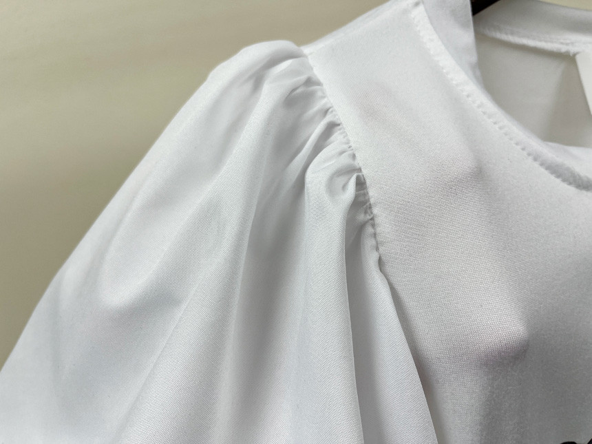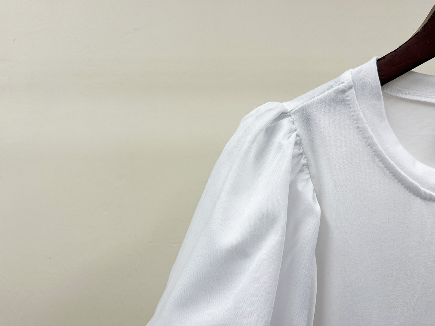 자연스럽게 셔링이 잡힌 벌룬 소매디자인으로