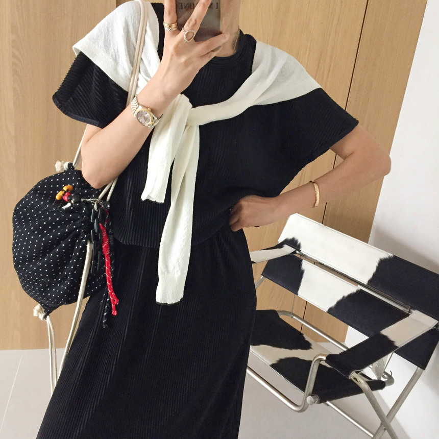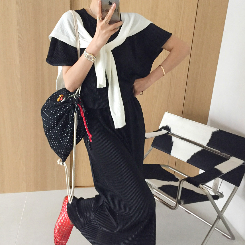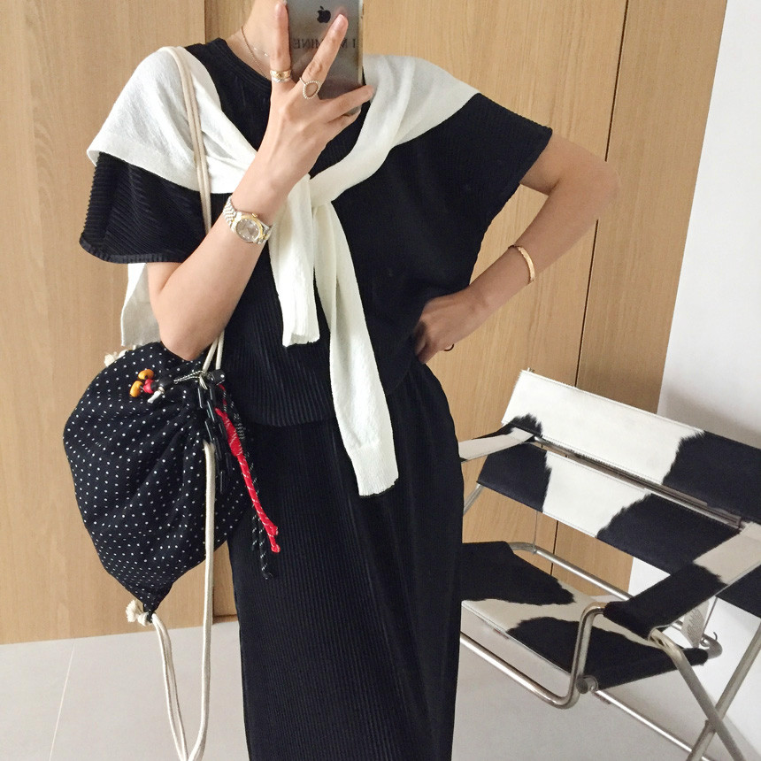 플리츠 스트링 밴딩 스커트 세트 보고가세용~