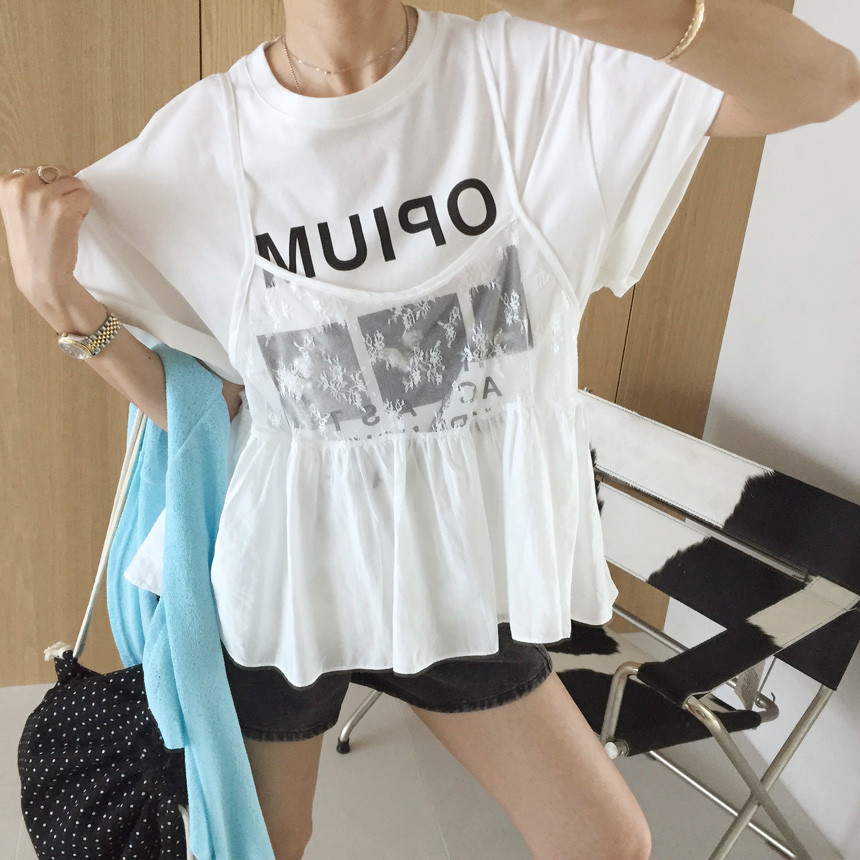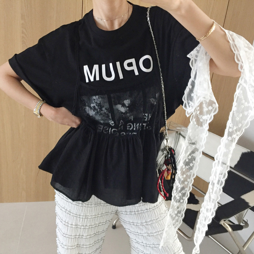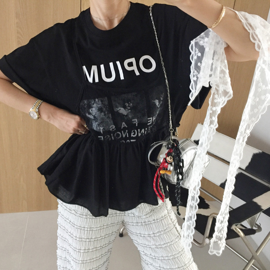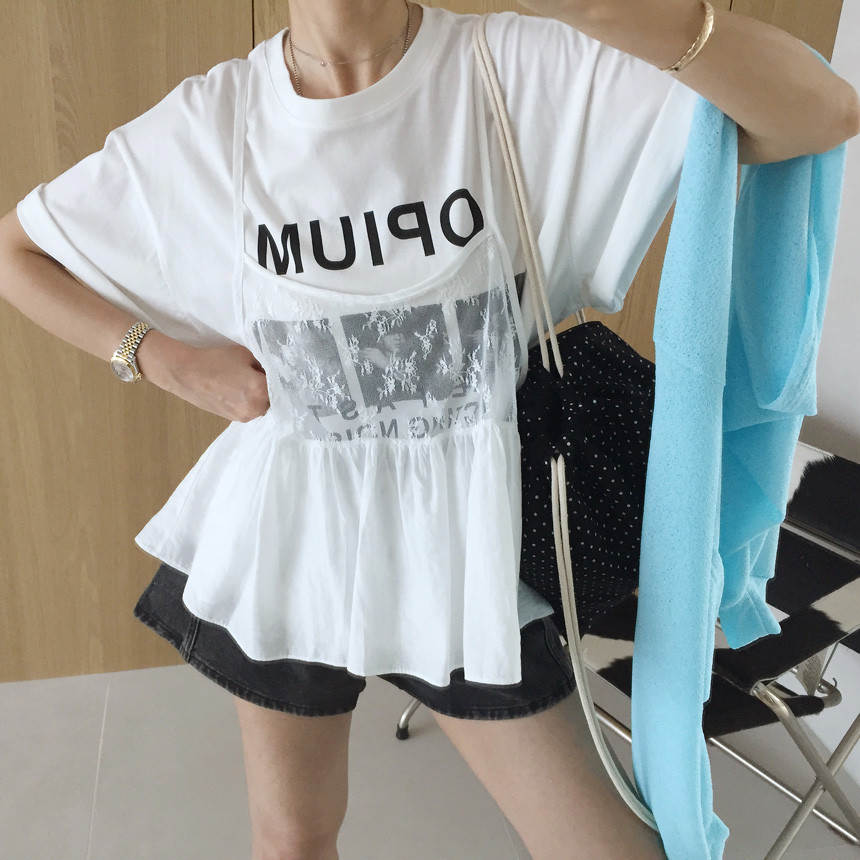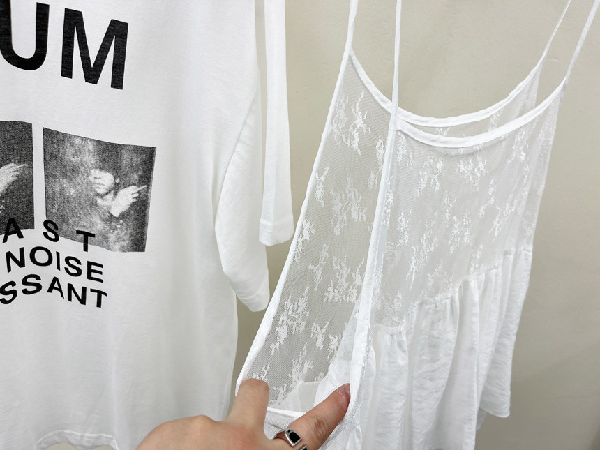 시스루 뷔스티에 + 프린팅 반팔티셔츠 세트 보여드릴게용~!
