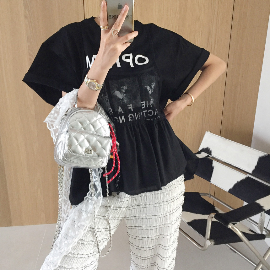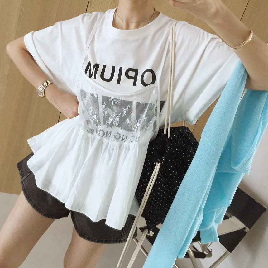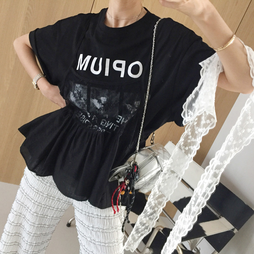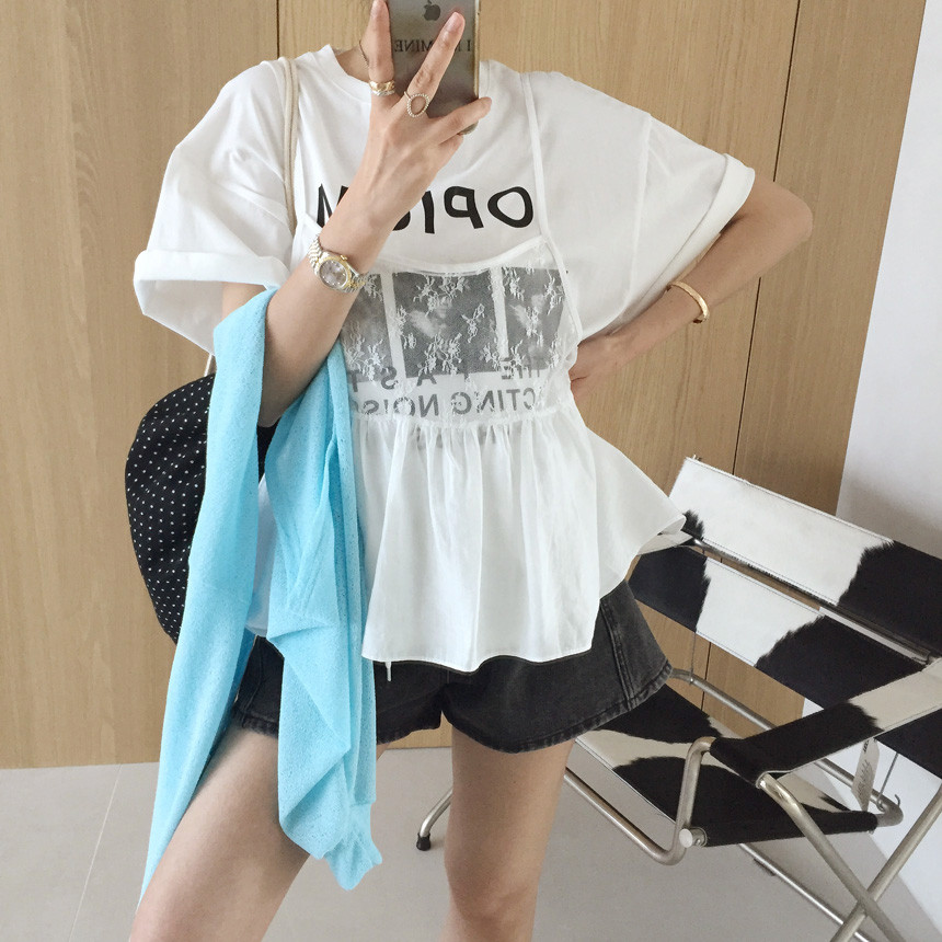 시스루 뷔스티에 + 프린팅 반팔티셔츠 세트 보여드릴게용~!