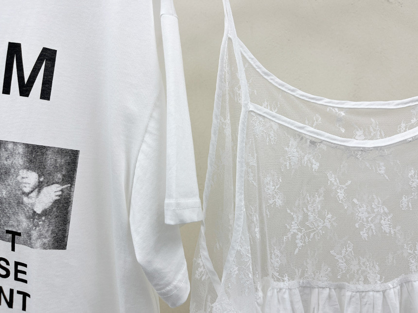 시스루에 자수 포인트로 여리여리한 느낌을 주면서